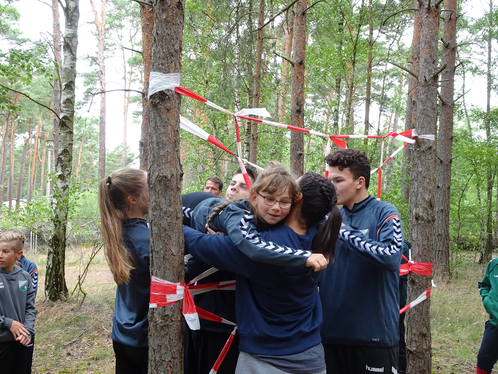 4 Stationen ihre Geschicklichkeit und ihre Teamfähigkeit beweisen. Groß hilft Klein, Stark hebt Leicht durch das Spinnenetz, gemeinsam wird um die beste Zeit gerungen.