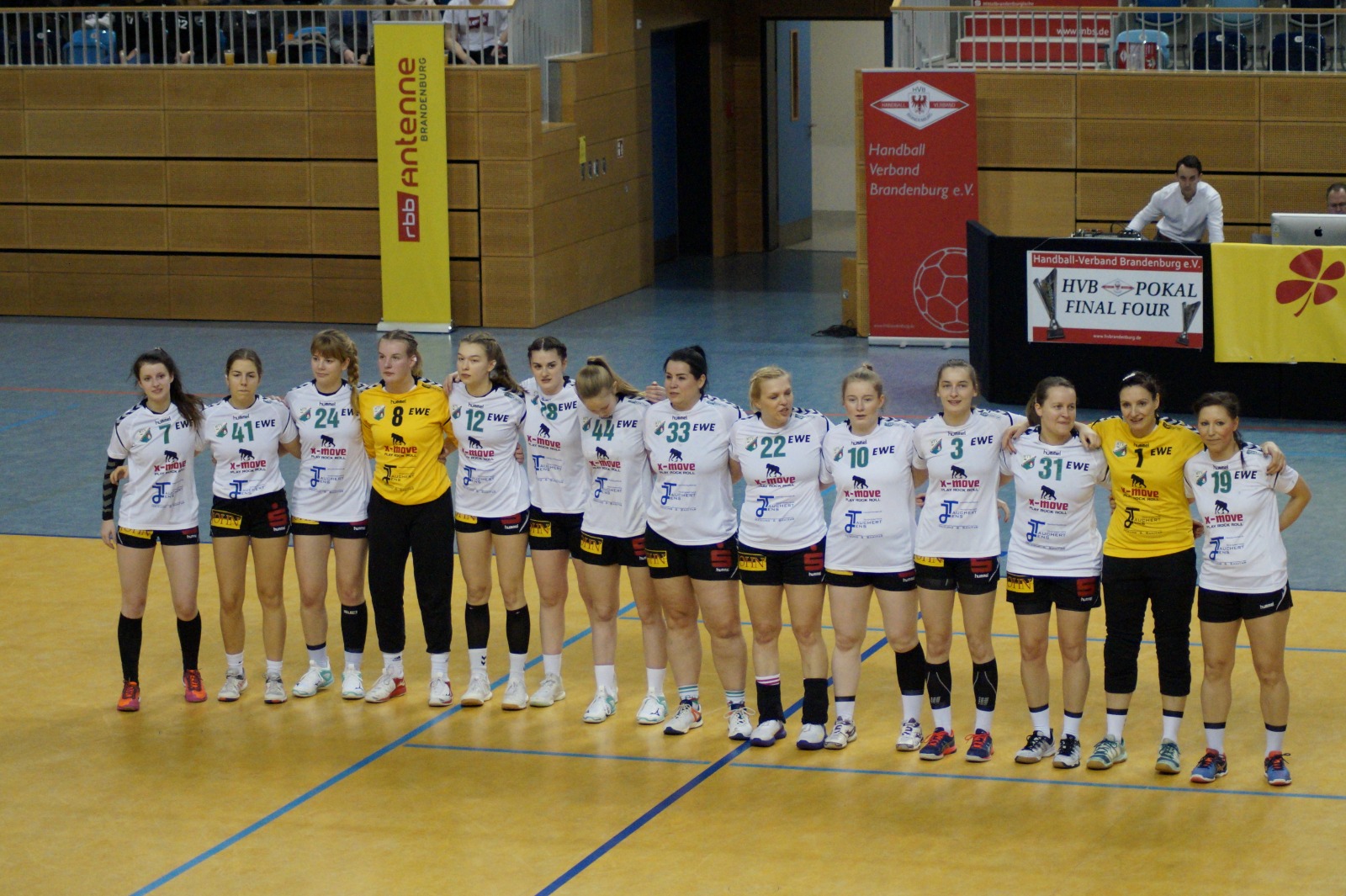 Am Sonntag hieß es dann für alle früh aufstehen, denn bereits um 11 stand das Spiel um Platz 3 gegen den HSC 2000 Frankfurt Oder an. Für dieses Spiel malte man sich bessere Chancen aus, mehr sogar, es war ein Pflichtziel den 3. Platz zu holen. Trotz den müden Knochen vom Vortag, die natürlich auch die Damen des HSC belasteten, starteten die Altlandsberger motiviert und mit viel Freude in das Spiel. Zu Beginn schien es den Grün-Weißen jedoch schwer zu fallen ins Spiel zu kommen. Das schnelle und 1:1-lastige Spiel des HSC konnte nicht unterbunden werden. Bis zur Halbzeit sieht man ein durch Zeitstrafen und 7-Meter geprägtes Spiel auf beiden Seiten. Zum Stand 17:14 geht es in die Halbzeitpause, es war noch nichts gewonnen und nichts verloren, doch das Trainerteam schien in der Kabine genau die richtigen Worte gefunden zu haben. Nach dem Anpfiff zur zweiten Halbzeit legen die Altlandsbergerinnen trotz einiger fragwürdiger Zeitstrafen und einer roten Karte für unsere Anni ein 5:0 Tore Lauf hin und gehen mit 22:14 in Führung. Ab diesem Punkt konnte man eine Wesensveränderung im Spiel der Altlandsbergerinnen erkennen. Man hatte plötzlich Spaß am Handball, auf der Platte stand eine Einheit, in der jedes Rädchen funktionierte und in das nächste griff. Letztendlich gewann man mit 32:21 nicht nur das Spiel, sondern auch eine wertvolle Erfahrung und endlich mal wieder Freude und Spaß am Zusammenspiel und dem Sport selbst.
