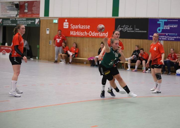 Umso erstaunter und begeisterter erschien die gesamte Halle, als wir die schnellen Rangsdorferinnen mit einem 4:0 Lauf zu Beginn schockten. Nach einer Auszeit der Gäste verbesserte sich nicht nur deren Angriff sondern verschlechterte sich leider auch unsere Abwehr. Nach ungefähr 15 Minuten auf Augenhöhe, gelang es uns durch gute Einzelaktionen, wie zum Beispiel von Maja Paape aus der 2. Reihe oder von Mirjam Scholz im 1 gegen 1, einen kleinen Puffer zu erarbeiten. Mit einem Halbzeitstand von 12:8 ging es in die Kabine. Klar war: hier geht noch mehr, wenn wir unsere Chancen ausspielen und die Abwehr noch mehr festigen.