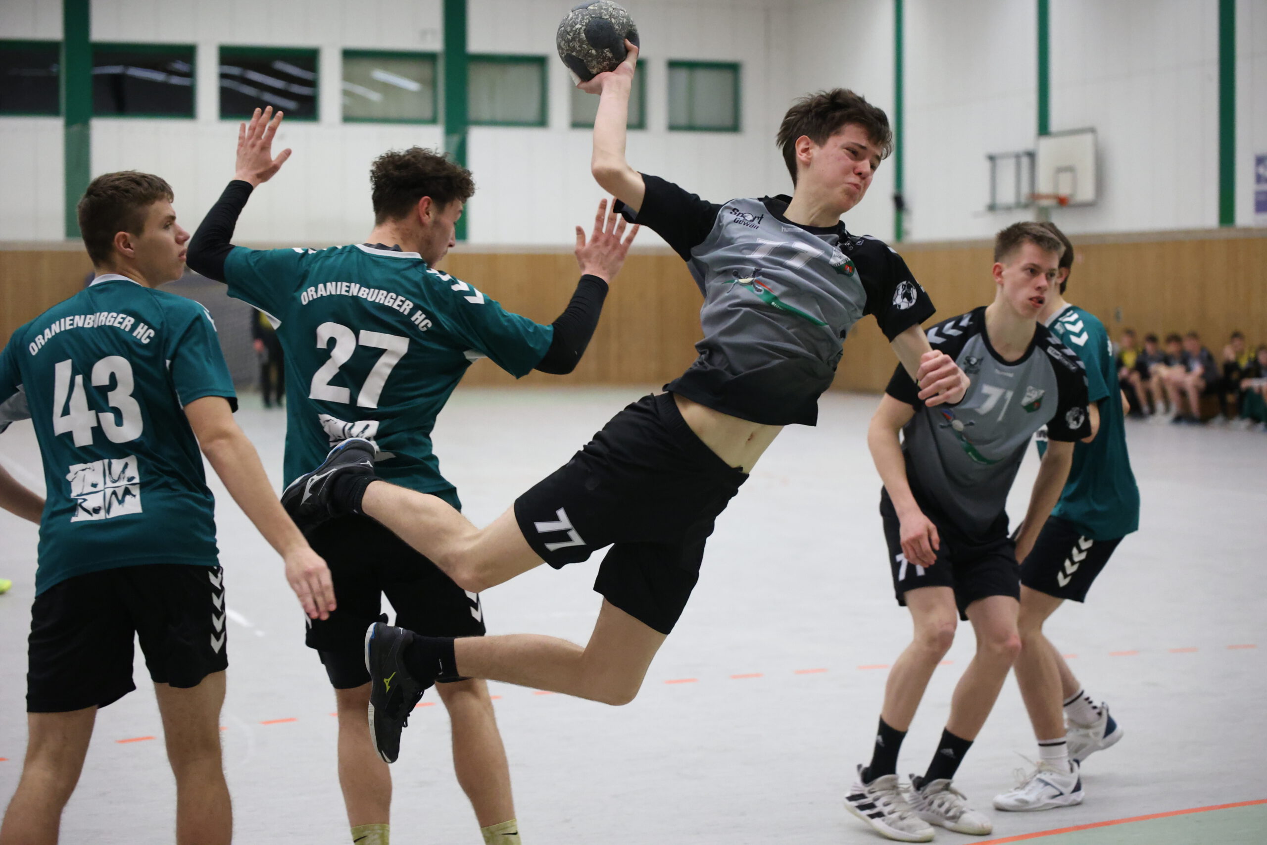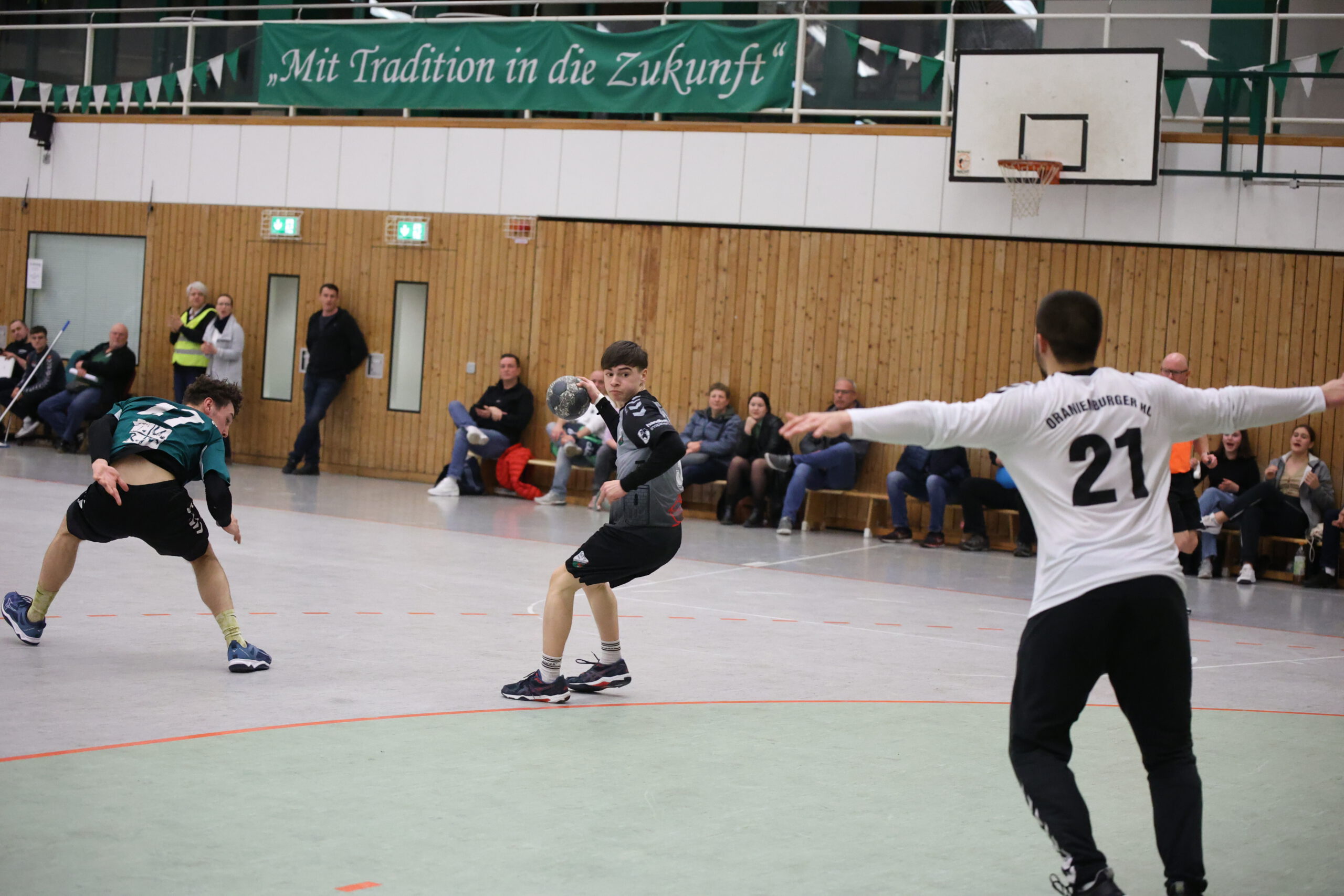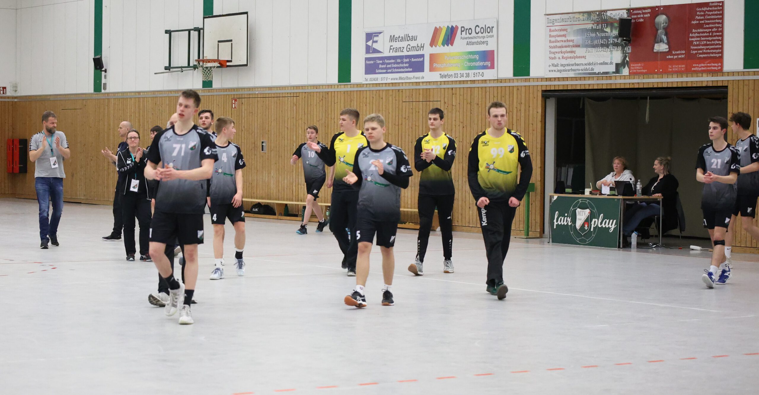 Die Gäste trugen Trikots in grün, was eigentlich für beruhigende Wirkung steht. Doch schon der Oranienburger Motivationsspruch erinnerte an Wikinger-Gebrüll und verhieß Aufregung. Der MTV dagegen trat im gewohnten Grau an, das in der Farbenbedeutung mit Erneuerung in Verbindung gebracht wird. Zunächst gab es allerdings wenig Neues aus heimischer Sicht: Yannick, Niklas, Scott, Leon, Noah und Nick sowie Torhüter Ben standen im Startaufgebot. Später unterstützten Jack und Chrissi die Abwehr, hielt Flo den Kasten sauber und punktete außen vor allem Arne. Nach überstandener Verletzung begeisterte er mit vier Toren und dem größten anwesenden Fanclub des Abends.