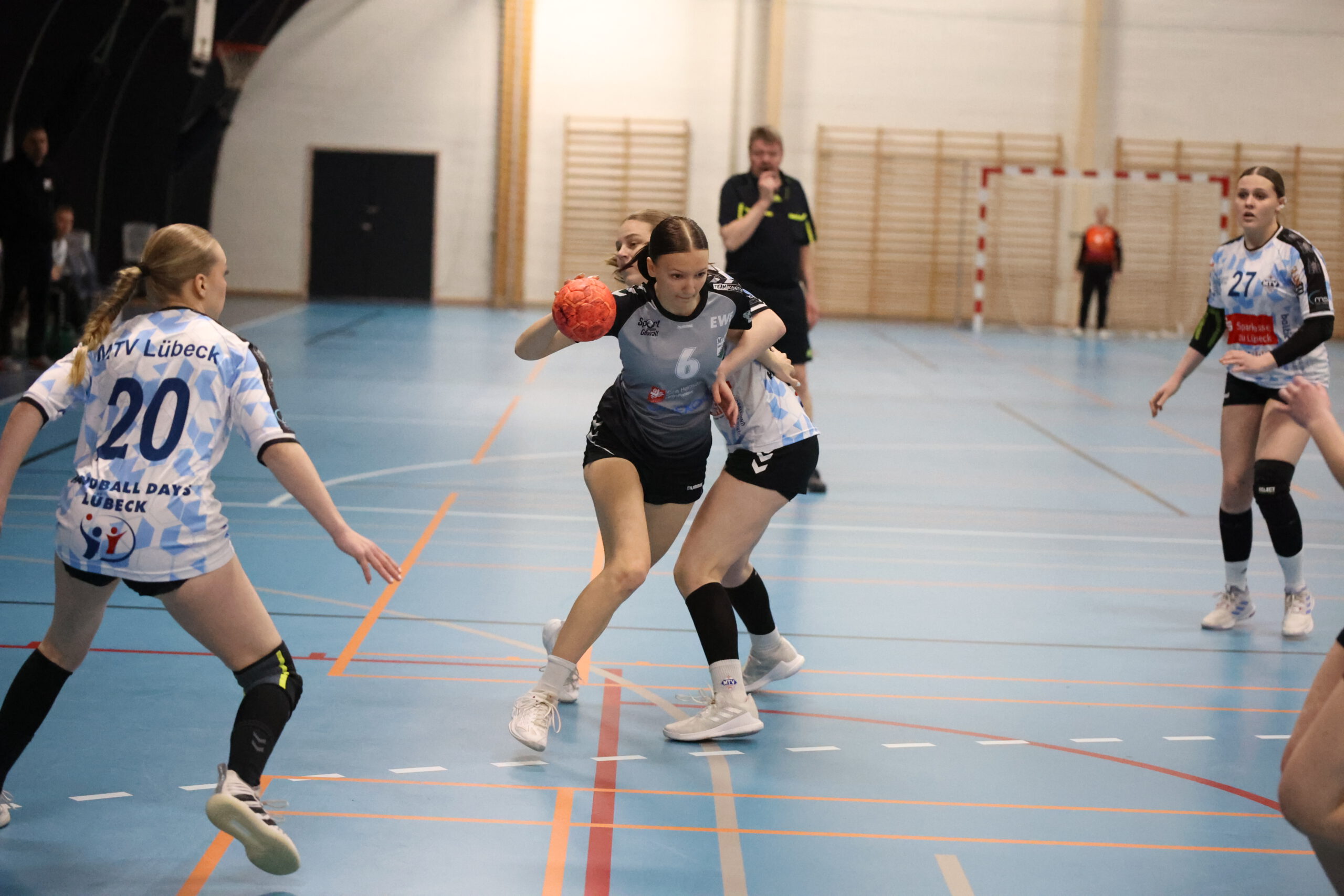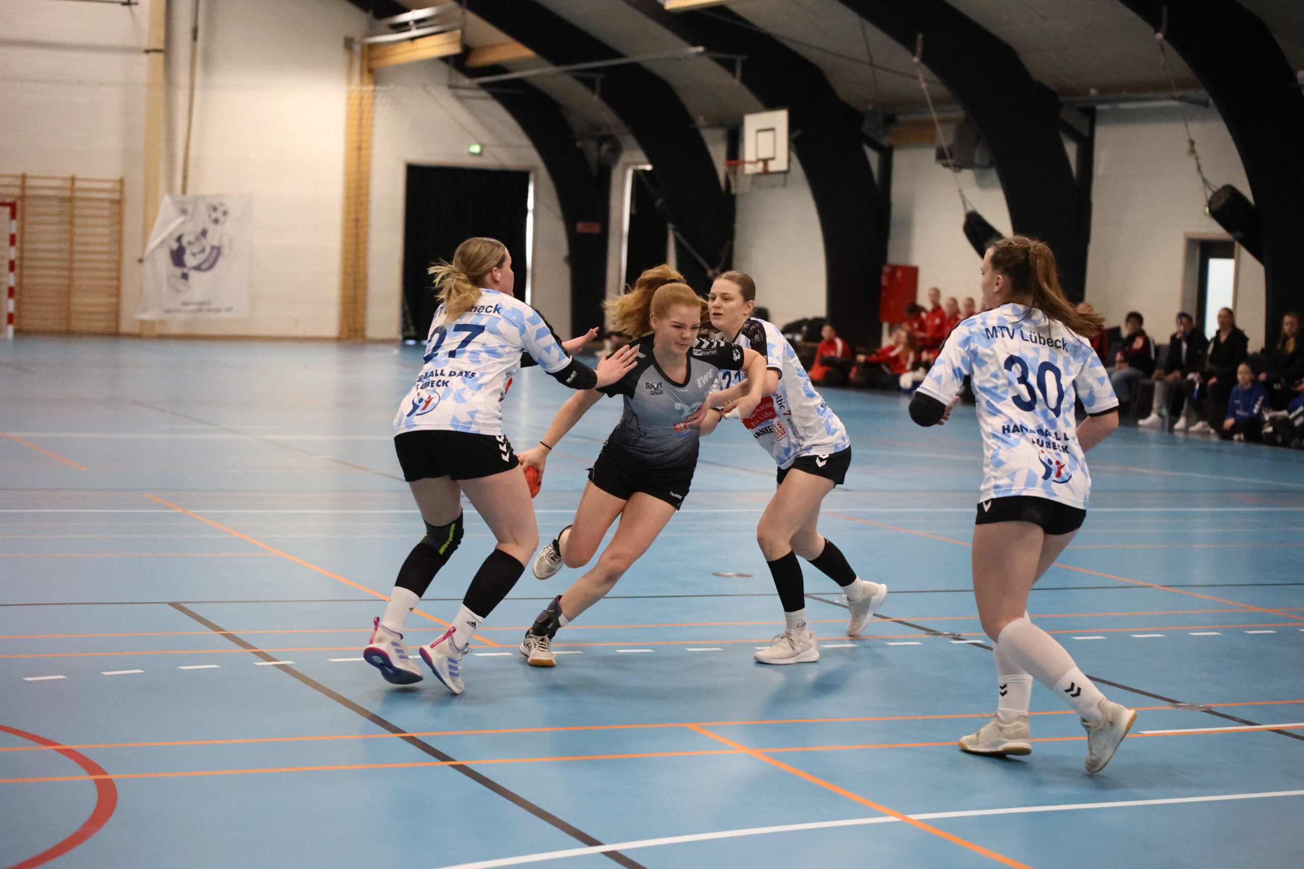 Zu Acht ging es also kurz nach halb zehn gegen die starke Mannschaft des MTV Lübeck, die schlussendlich das Turnier als Turniersieger verlassen haben. Von Anfang an, gelang uns nicht sehr viel und die Lübecker Mädels überliefen uns gnadenlos. Wir konnten das ganze Spiel über dem Gegner nicht wirklich was entgegensetzen und verloren haushoch.