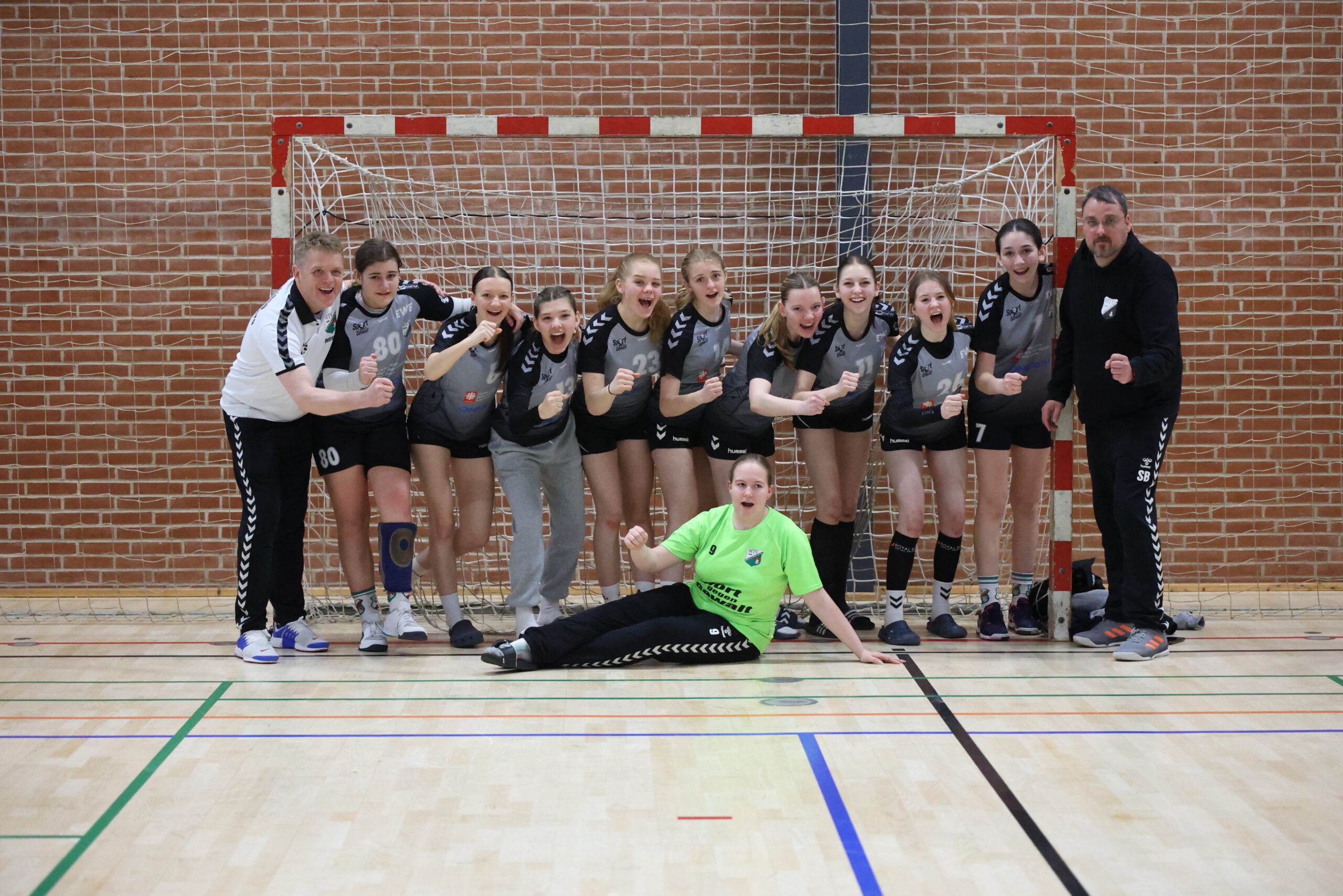 Zum letzten Spiel des 1. Turniertages konnten wir leider nicht auf die Unterstützung unserer jüngeren Spielerinnen hoffen, da unsere beiden Mannschaften zeitgleich spielten. Mit nur 1 Auswechselspielerin ging es dann zum späten Nachmittag ins Spiel. Wir taten uns tatsächlich unerwartet schwer und konnten nicht unser ganzes Können noch einmal auf die Platte bringen. Am Ende konnten wir uns dann aber noch über einen Sieg gegen die Mädels des HSG Beste Trave freuen.