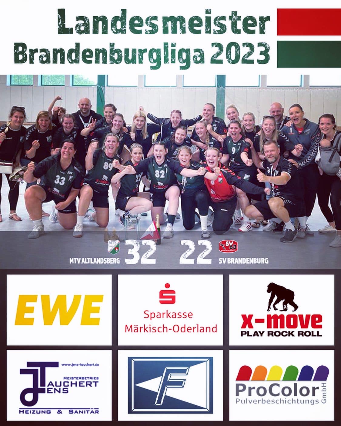 Mit einem bärenstarken Auftritt am letzten Spieltag der Brandenburgliga Handball sicherten sich unsere Handballfrauen die Meisterschaft 2022/2023 und behielten die Oberhand im spannenden Fernduell mit der SGUckermark. Das mit Spannung erwartete letzte Heimspiel, gegen die in der Rückrunde extrem stark aufspielende Vertretung vom SV 63 Brandenburg-West, konnten die Hausherrinnen von Beginn an souverän gestalten und schufen sich bereits bis zur Halbzeitpause einen 8-Tore Vorsprung. Angefeuert von den zahlreichen Fans in der vollen Erlengrundhalle, war es vor allem das Abwehrbollwerk, das die Gegnerinnen immer wieder verzweifeln ließ. Nach einem zwischenzeitlichen 12-Tore Vorsprung in Halbzeit zwei wurde die Meisterschaft immer greifbarer, die Spannung wich der Vorfreude und das Publikum zählte die letzten zehn Sekunden im Countdown zum Abpfiff. Danach brachen alle Dämme, losgelöst und erlöst von einer langen Saison feierten die Damen die erste Meisterschaft für den MTV Erwachsenenbereich seit Jahren und luden Ihre Fans und auch die Gegnerinnen vom SV 63 Brandenburg/West zu Bratwurst und Getränken. Eine tolle Aktion und ein toller Ausklang einer tollen Saison.