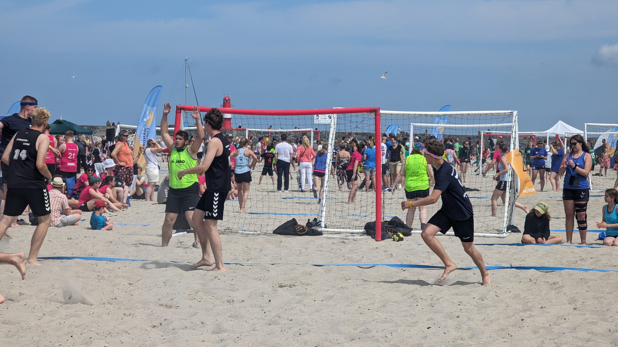 Unbeeindruckt von diesen Dämpfern spielten die MTV-Jungs im Stundentakt weiter, zeigten schöne Spielzüge, einfach gute Tore, sehenswerte Kempa und 360er, auch wenn die Nullschritte dabei alles andere als null Probleme bereiteten. Mannschaft A stand nach zwei Siegen (gegen Brühl und Tangstedt) im Viertelfinale. Das B-Team kam auch immer besser auf Wettkampf-Temperatur, blieb aber sieglos und konzentrierte sich deshalb zunehmend auf den Spaßfaktor am Strand.