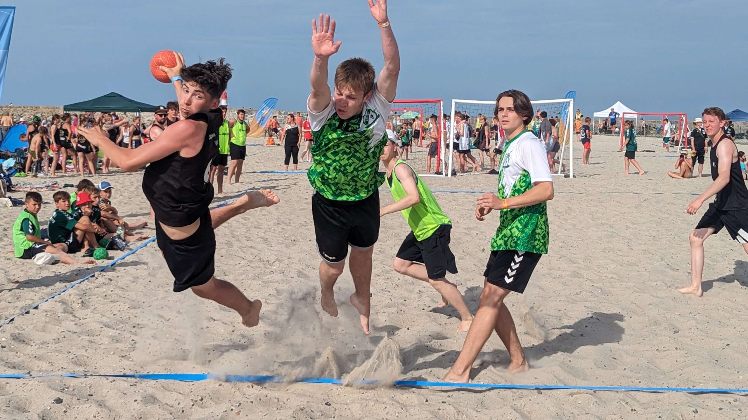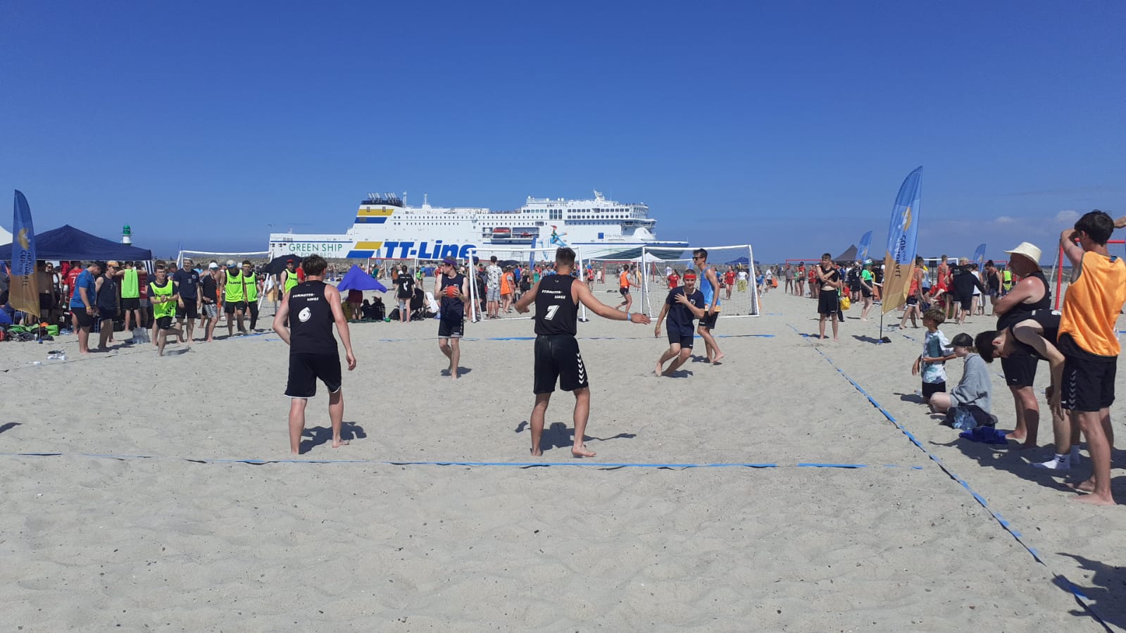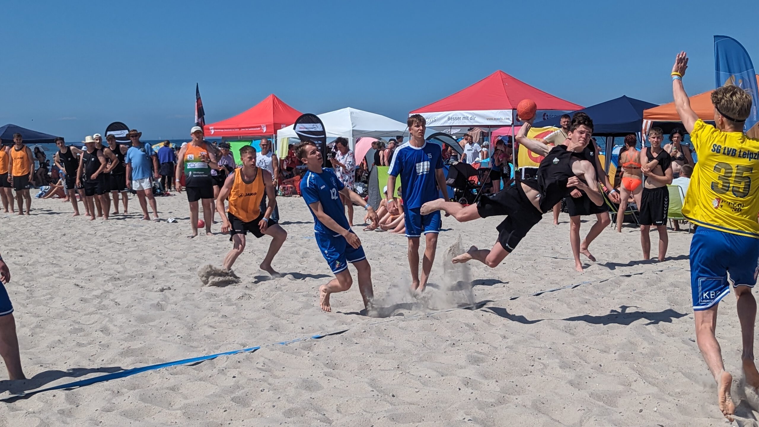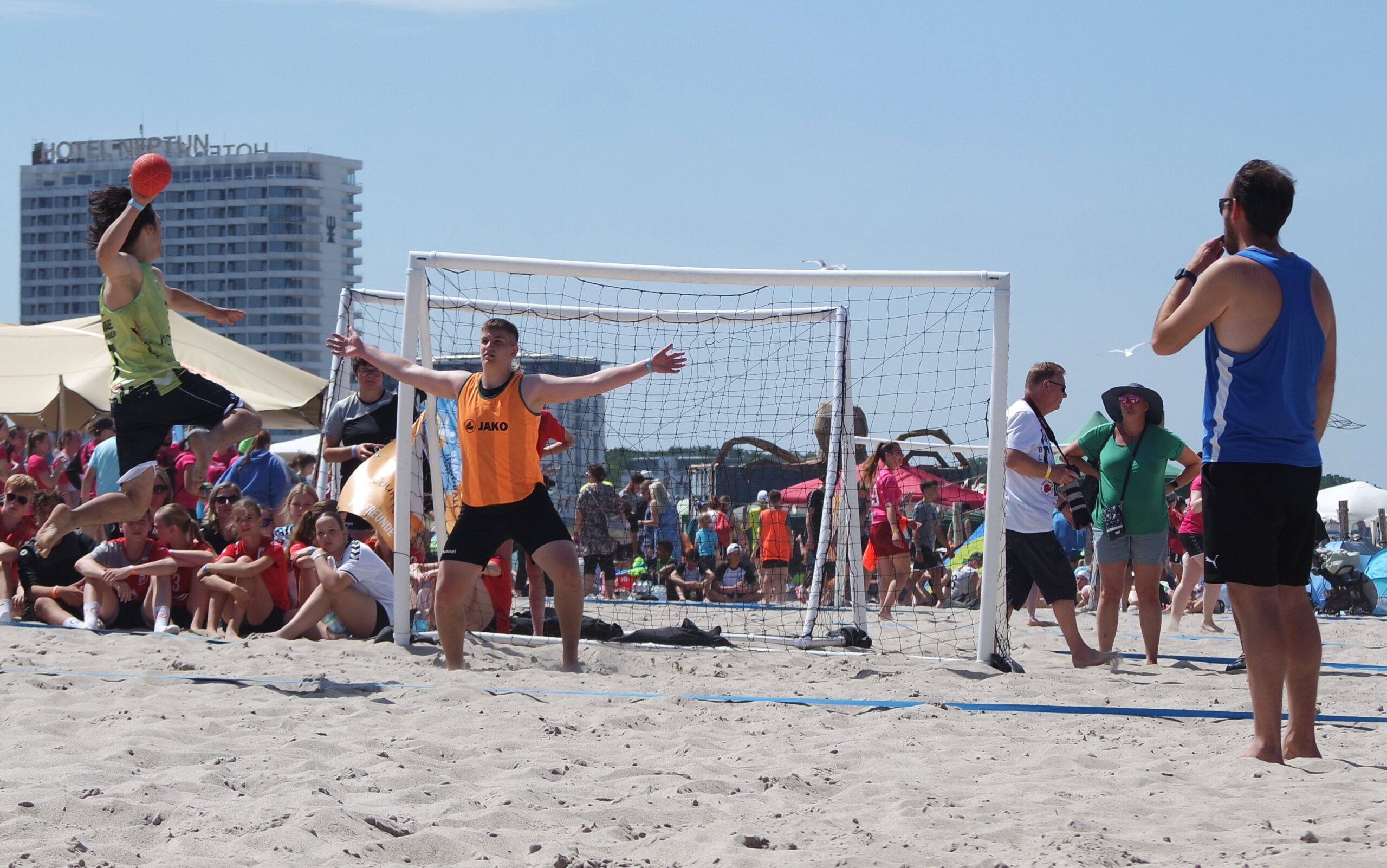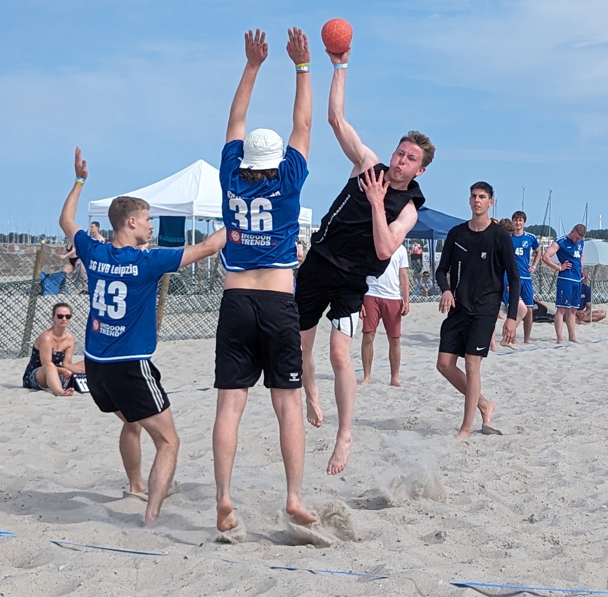 Nach der ersten kurzen Nacht in der Warnemünder Jugendherberge setzte die B-Mannschaft am Samstag um 12:40 Uhr das erste Spiel leider buchstäblich in den Sand. Trainer Flo hatte neben Torhüter Christoph mit Chrissi, Jack, Linus, Luca, Nils Z. und Noah gleich sechs Kreisläufer zu bieten und komplettierte mit drei Linkshändern (Doni, Nils F. und Willem) seine bunt zusammengewürfelte Truppe. Doch auch wenn die Siegchancen so klein wie ein Sandkorn am Ostseestrand waren, kämpften die MTVler heldenhaft gegen den HSV Oberhavel. Am Ende wurden beide Halbzeiten verloren und spornten die A-Mannschaft mit Trainer Kochi an, um 13:20 Uhr gegen Spandau besser ins Turnier zu starten. In der ersten Halbzeit gelang das auch Ben und seinen Vorderleuten Niklas, Yannick, Leon, Lion, Arne, Nick, Peter und Scott. Punkt Nummer 1 stand und sorgte für Auftrieb unter den Flügeln der SCHMETTA-linge. Doch die zweite Halbzeit und das anschließende Shoot-Out gingen auf das Konto der Berliner.