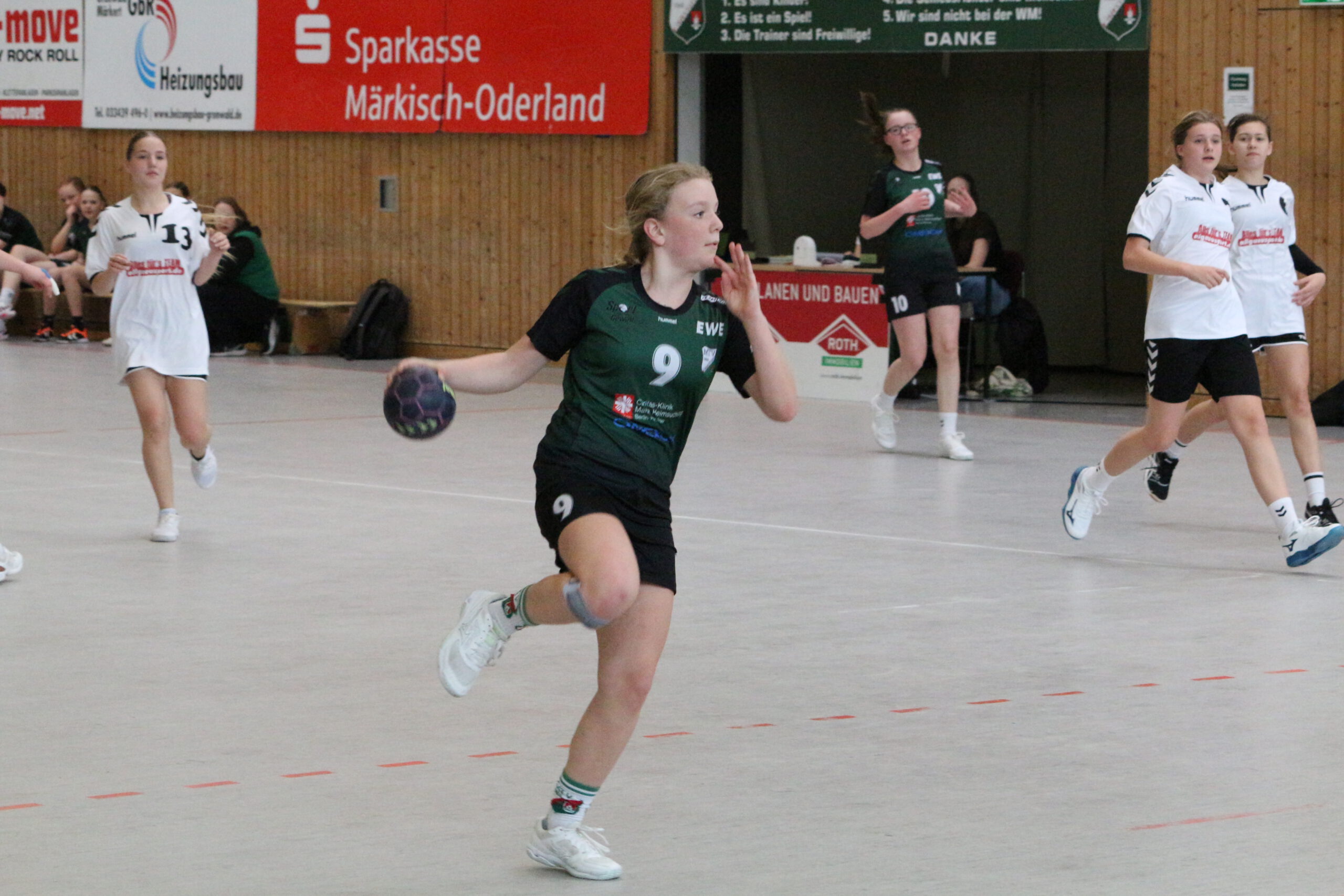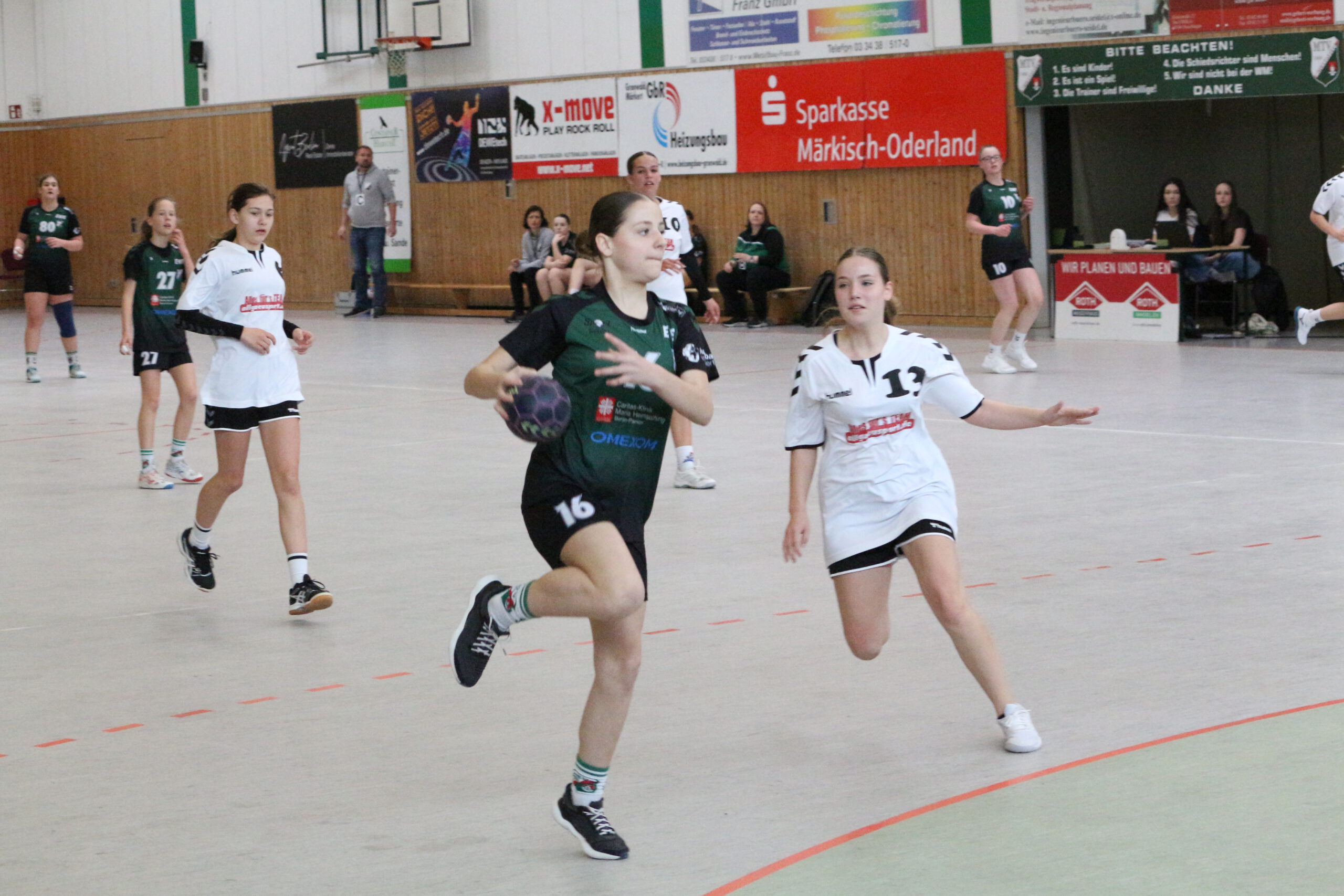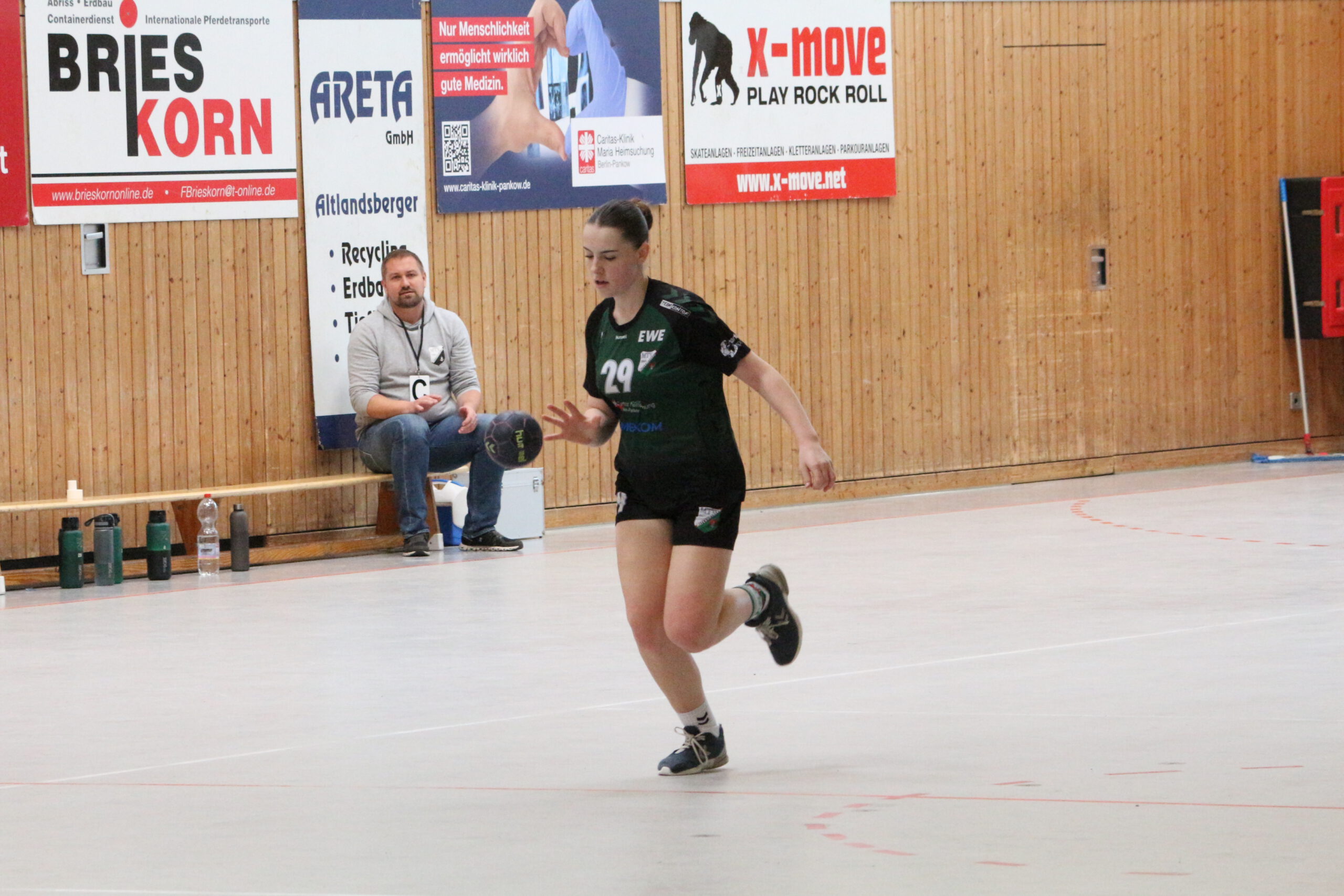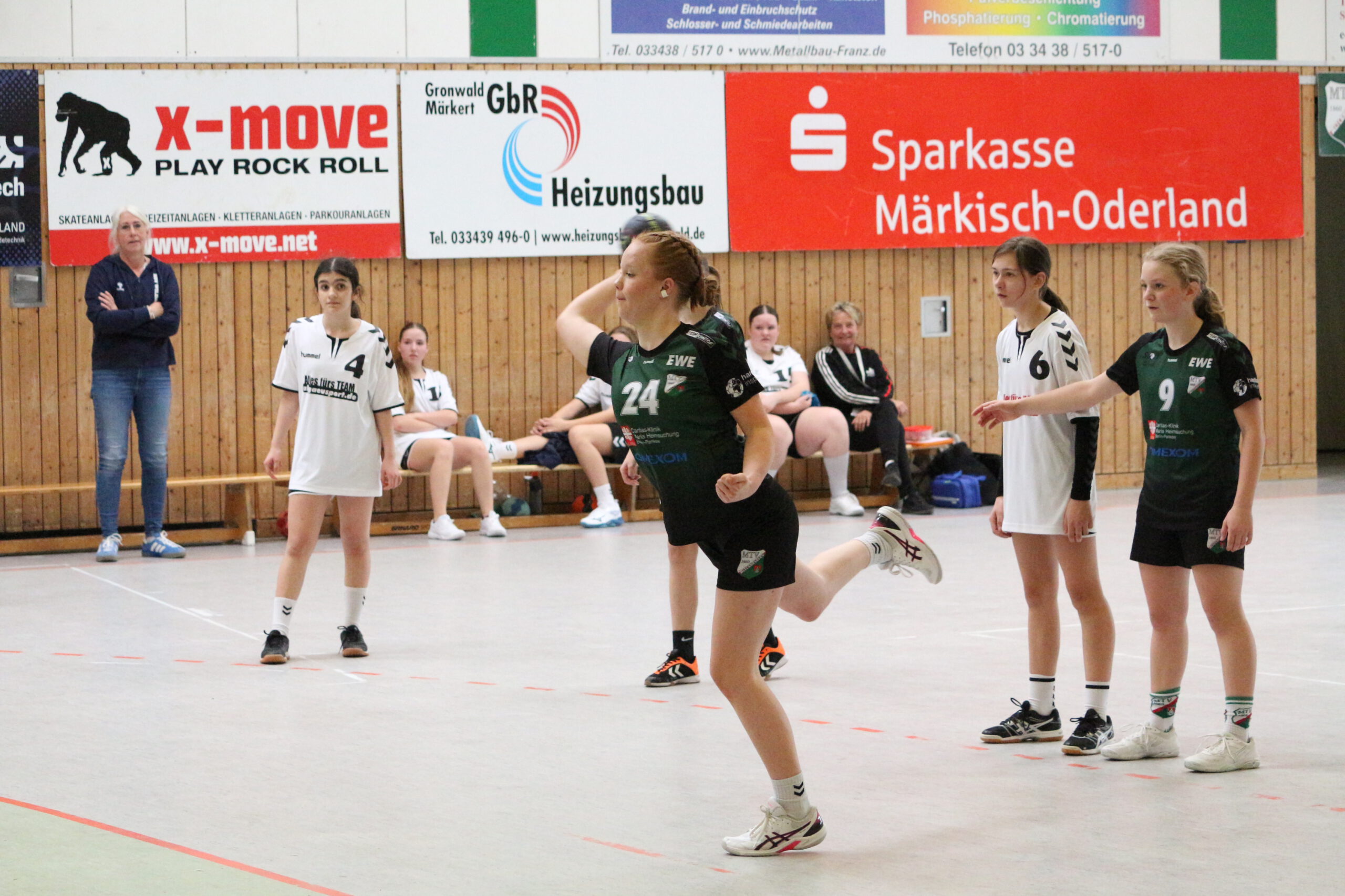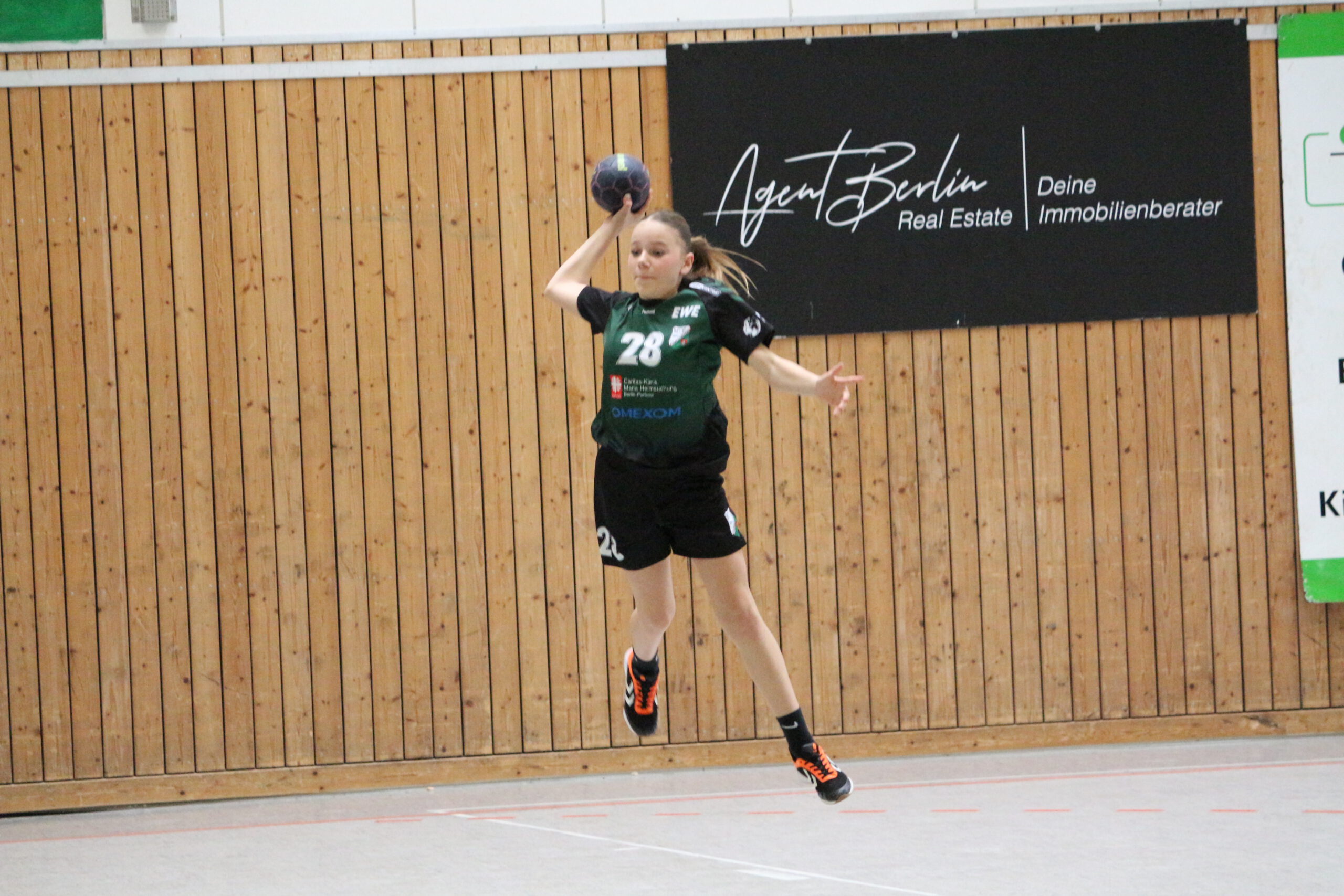 Am Samstag dem 20.04.2024 um 12 Uhr erwarteten wir die Mädels vom HSV Wildau. Gleich mit Spielbeginn dominierten wir mit 6:2 durch Tore von Helene, Kaja und Lea. Die Abwehr stand sicher und Wildau verlor viele Bälle, welche wir leicht für Gegenstürme umsetzten und nutzten. Nach 15 Minuten gingen wir nach Toren von Anna-Lena und Sarah auf einen Vorsprung von 8 Toren. Die Gegnerinnen ließen nicht nach und erkämpften sich einige Bälle, doch Emely hielt diese wunderbar. Nach 25 Minuten war die erste Halbzeit vorbei und wir führten 19:10 gegen den HSV Wildau.