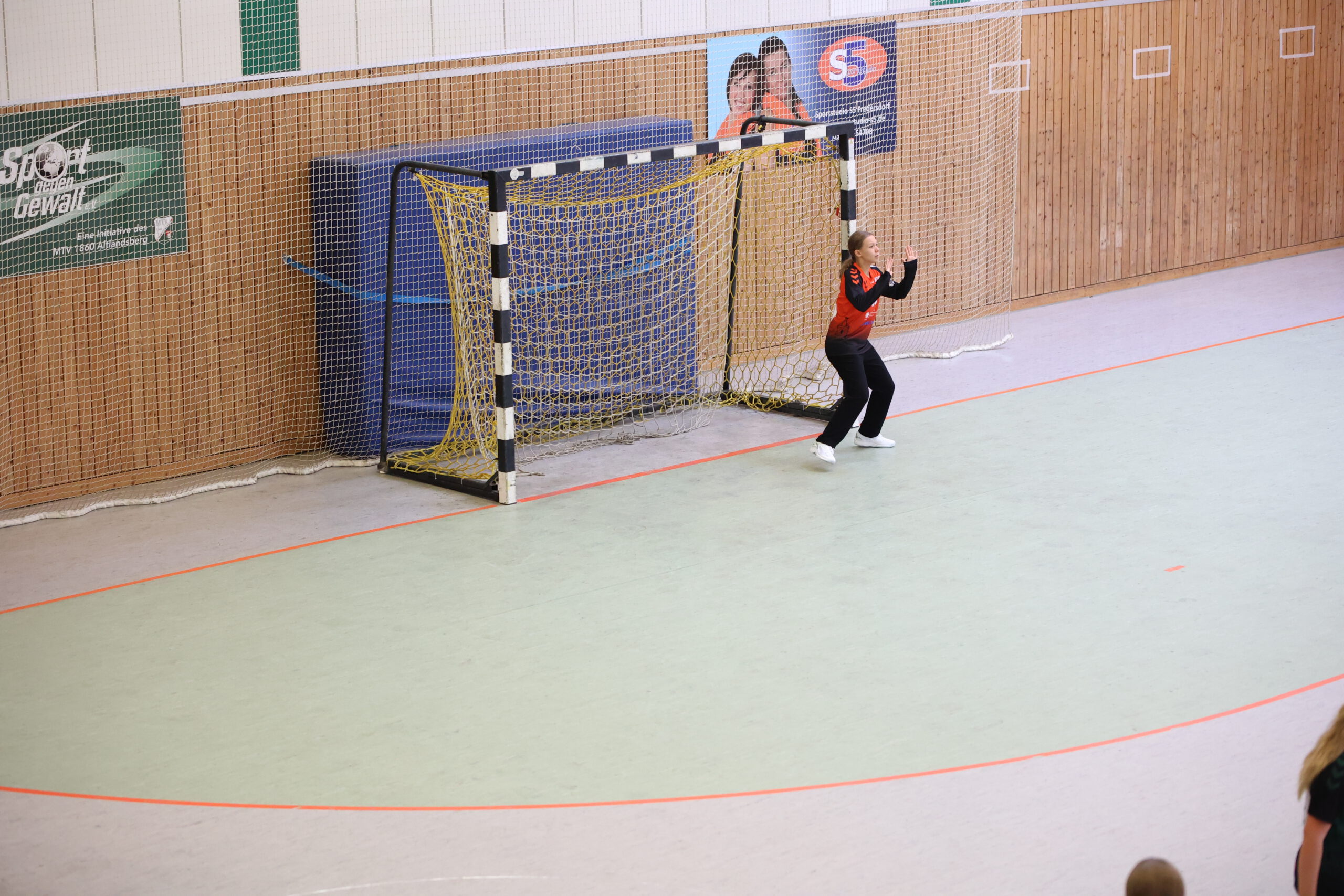 Und die Mädchen starteten gut in die Party rein. Mia im Tor hielt gleich den ersten 7m und hatte während des Spiels wieder viele sehr gute Paraden. Durch eine offensive Abwehr machten wir es den Gegnerinnen auch nicht leicht und wir konnten ihnen viele Bälle stehlen. So stand es bereits zur Halbzeit 12:4 für uns.