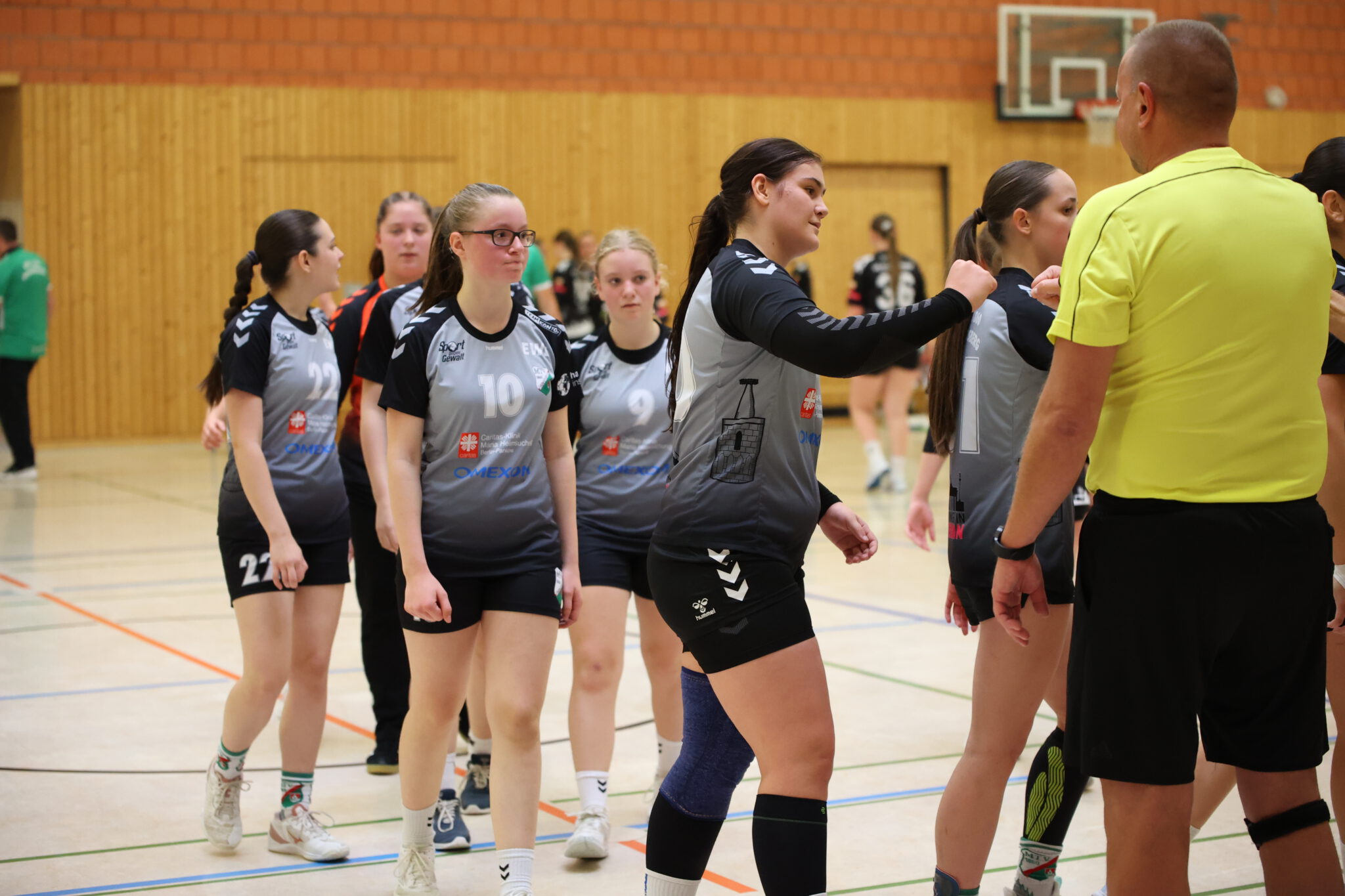 Dank schöner Spielzüge wurden auch unsere Außen einbezogen und Helene und Romy konnten die Führung weiter ausbauen. Doch dann kam ein kleiner Umbruch und unsere Abwehr griff nicht mich so beherzt zu, so dass die Gegnerinnen nun mit einfachen Würfen auf 3 Tore verkürzen konnten. Die Stimmung drohte zu kippen, doch eine klug genommene Auszeit mobilisierte unsere Mädchen noch einmal.