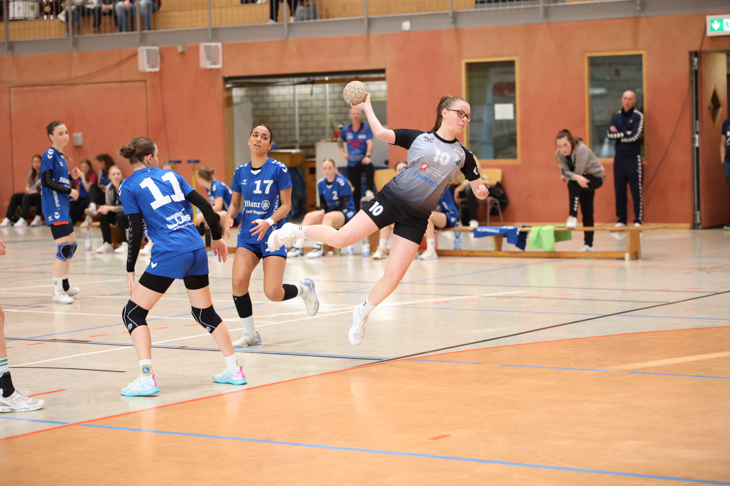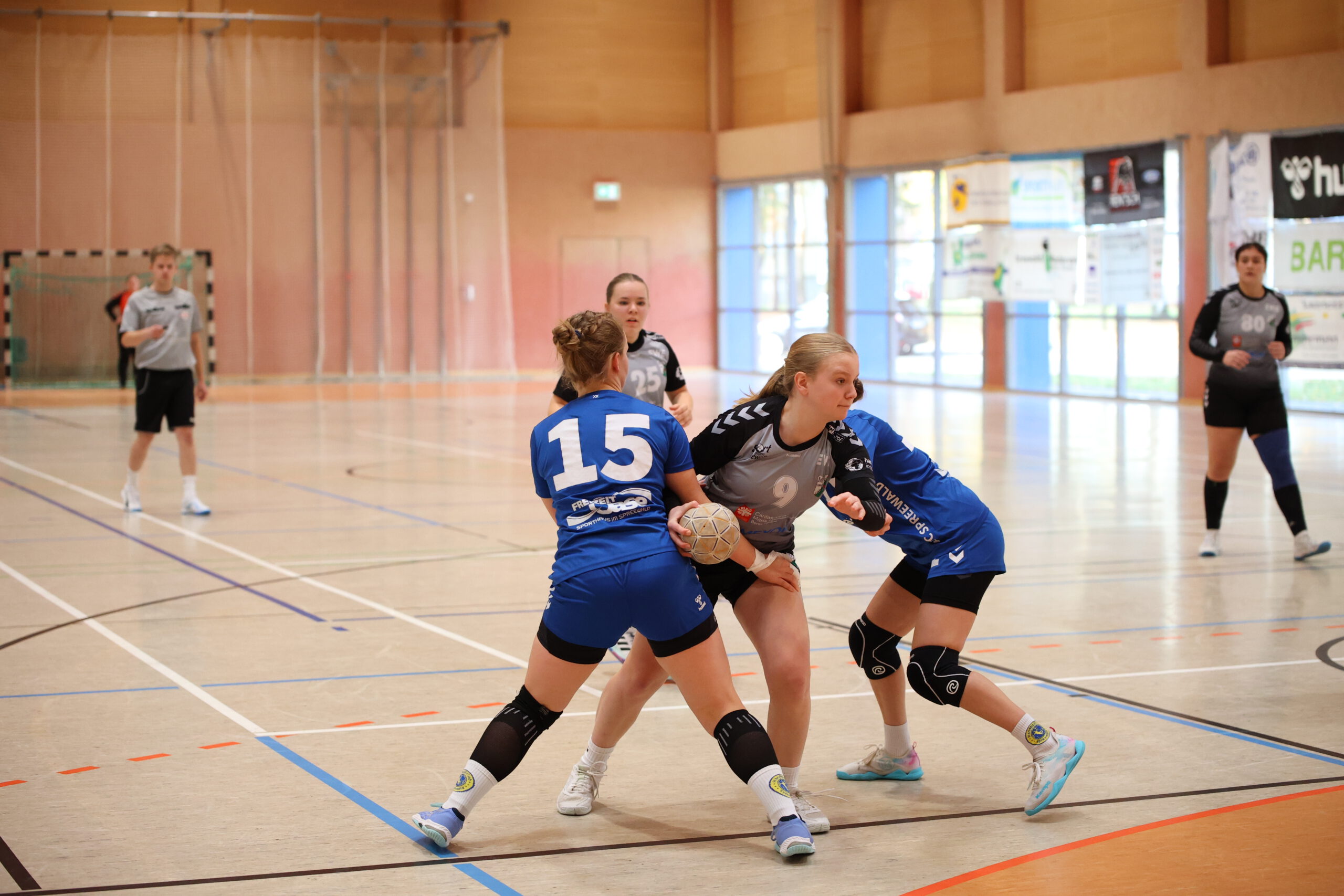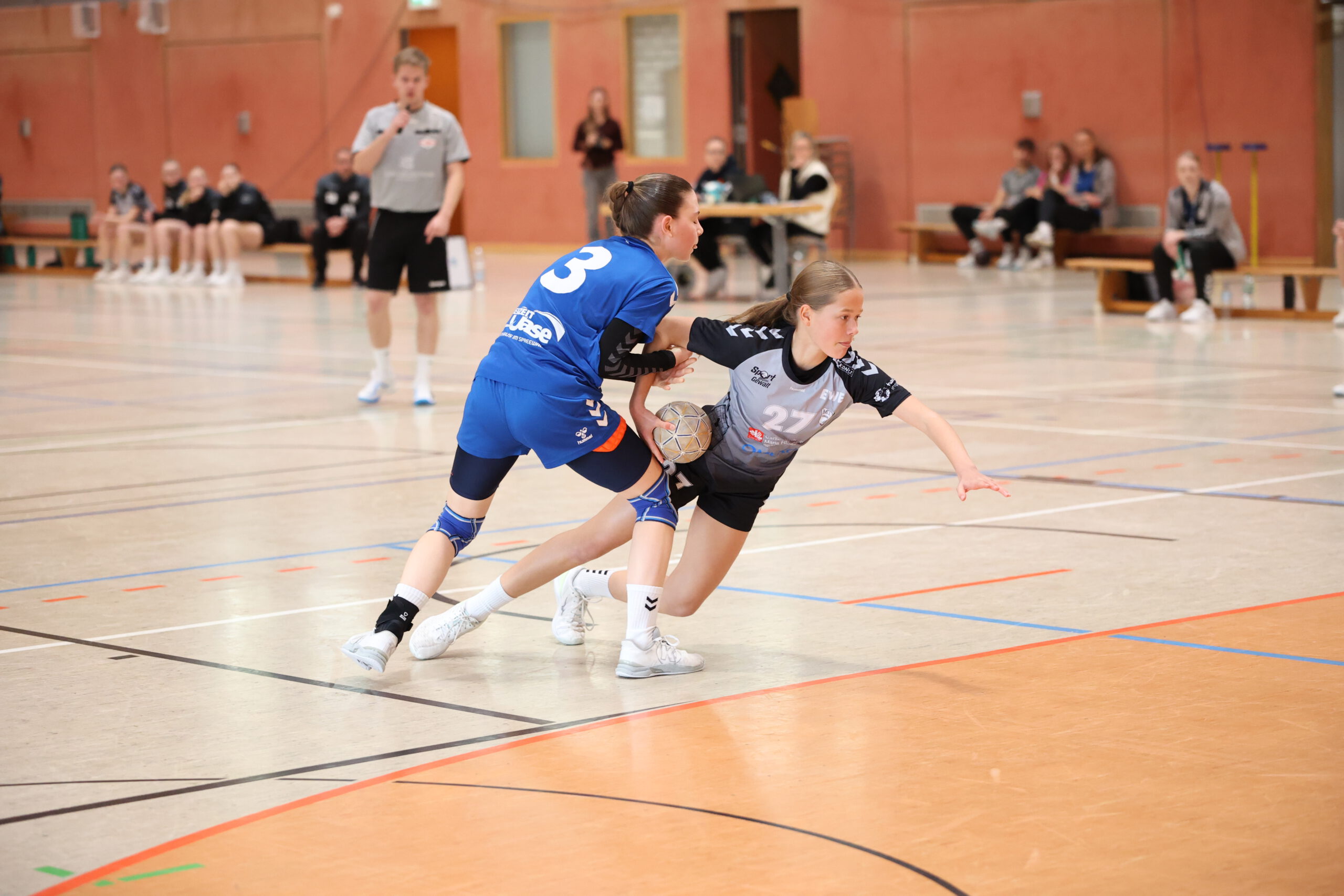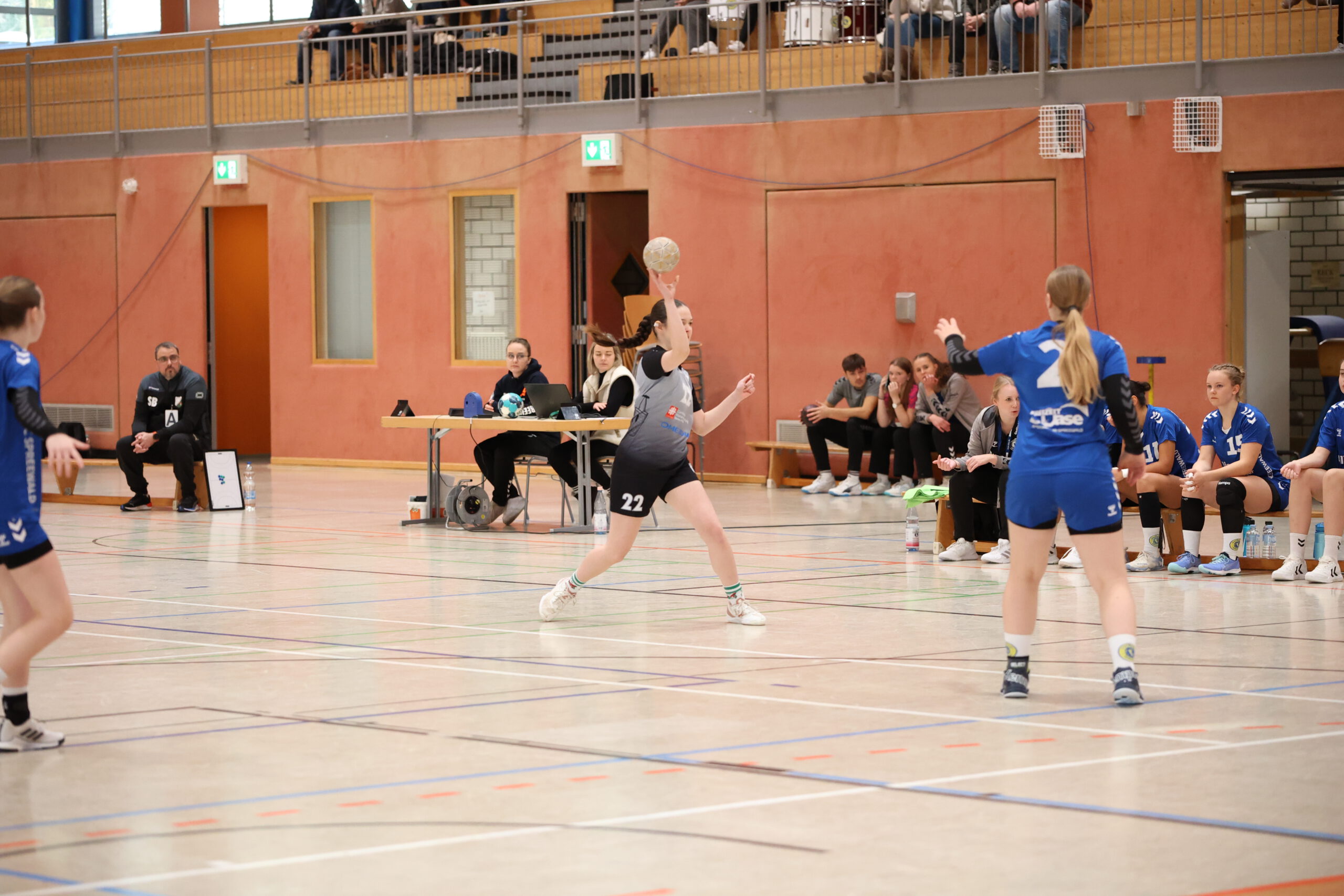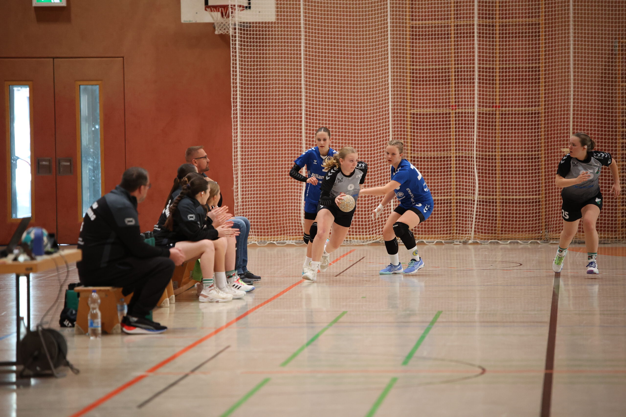 Zu Beginn der Halbzeit 2 brauchten wir einen Moment, um wieder ins Spiel zu finden. Getrieben von vielen Unterbrechungen bei den Gastgebern konnte sich kein richtiger Spielfluss einstellen. Die Gegnerinnen konnten zwischenzeitlich den Rückstand auf 2 Tore verkürzen und so stand es in der 34. Spielminute 15:13. Doch die Mädchen kämpften weiter und fanden wieder besser ins Spiel. Wir nutzten unsere Chancen und erzielten trotzt angeheizter Atmosphäre in der Halle wichtige Tore. Wir konnten uns nun immer wieder entscheidend im 1:1 durchsetzen und zogen mit 5 Toren davon. Auch wenn die Gegnerinnen gelegentlich verkürzten, unserem Angriff konnten sie aber nichts mehr entgegensetzen. In den letzten 8 Spielminuten nutzen wir die Gelegenheit, um den Vorsprung auszubauen. Mit dem Abpfiff stand es 27:18 für uns und die Mädchen sicherten sich den 3. Tabellenplatz in der aktuellen Saison. Herzlichen Glückwunsch der wB zu diesem Sieg.