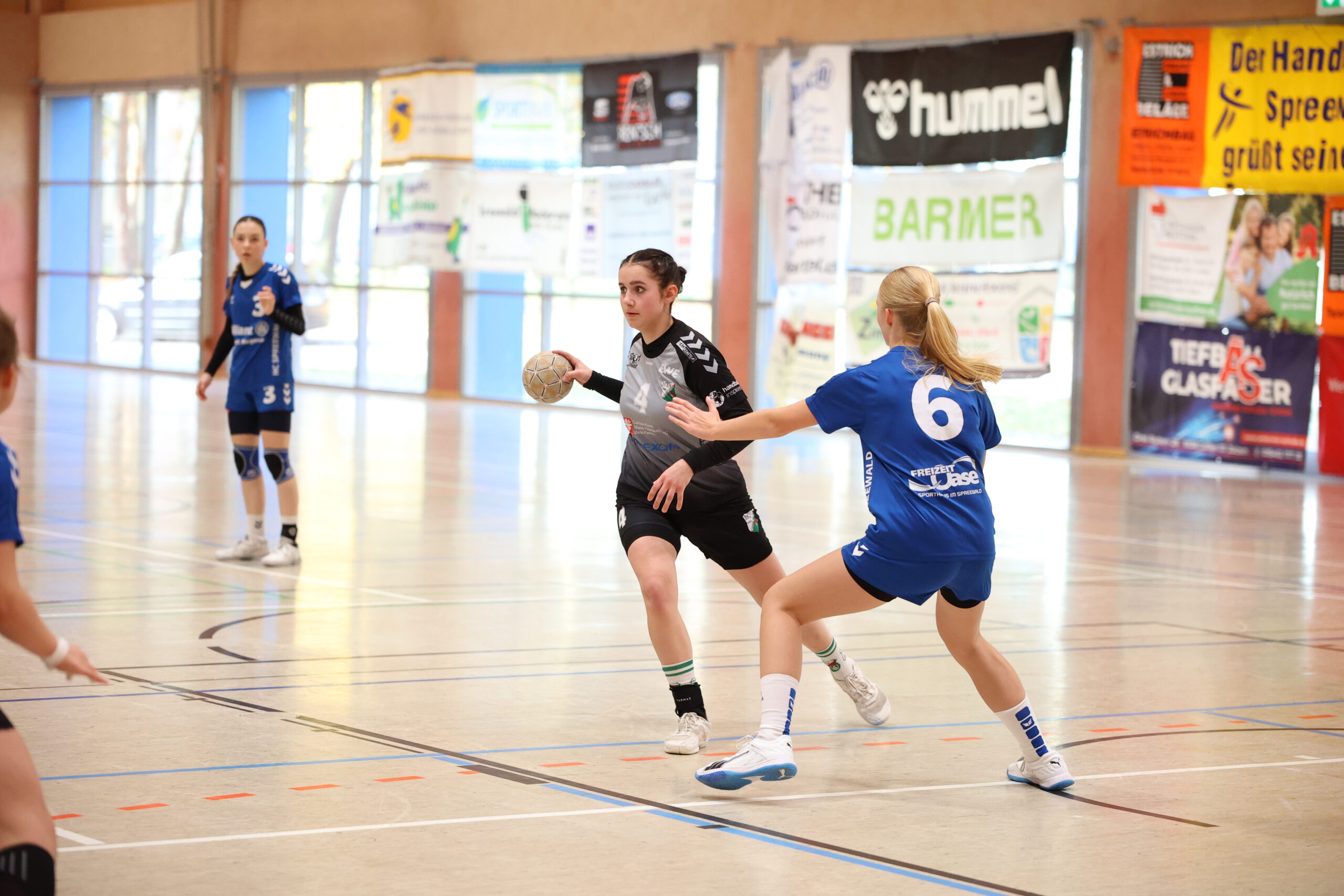 Nach einem intensiven Trainingslager in den Herbstferien wollten wir heute motiviert und mit frischem Elan beim HC Spreewald das Erlernte zeigen. Und die Mädchen erwischten einen guten Start. Besonders Romy konnte sich in der Anfangszeit immer wieder gut durchsetzen bzw. wurde gut freigespielt und so führten die Mädchen bereits in der 12. Spielminute mit 7:3. Der Gastgeber nahm seine erste Auszeit und auch wir konnten kurz verschnaufen. Zurück im Spiel ging es intensiv weiter. In der Abwehr packten die Mädchen beherzt zu, schalteten dann aber schnell um und konnten über schnelle Gegenstöße zu schönen Abschlüssen kommen. So stand es zur Halbzeit 13:9 für uns.
