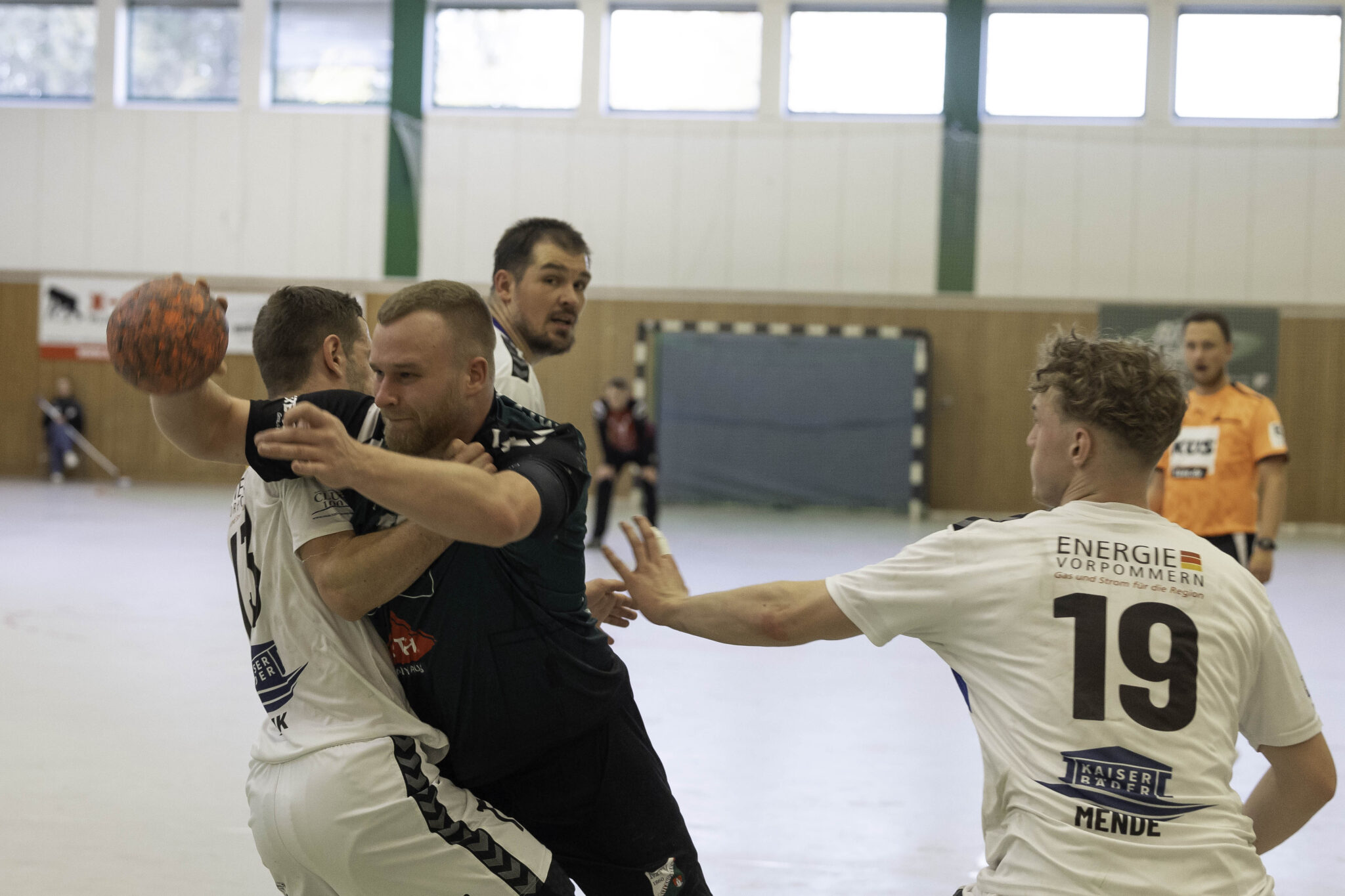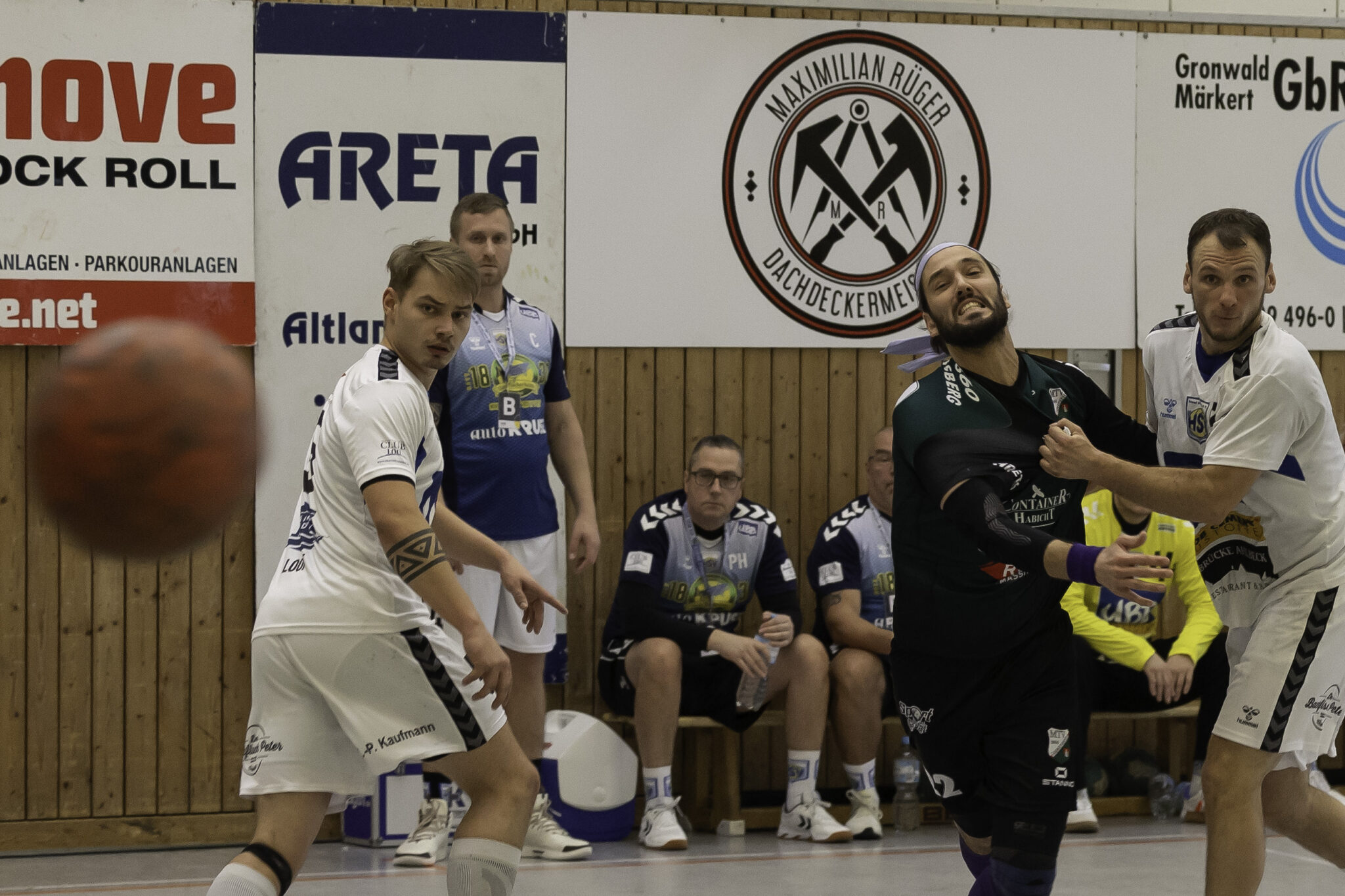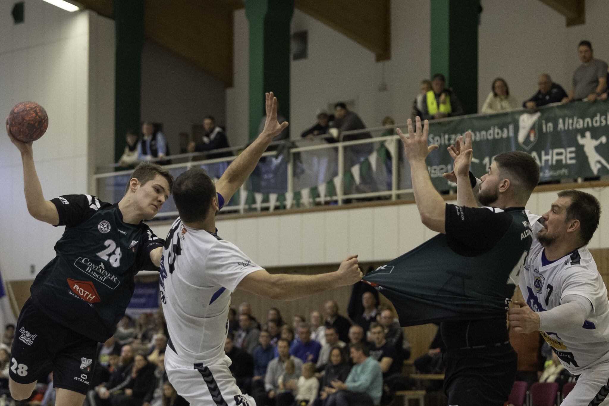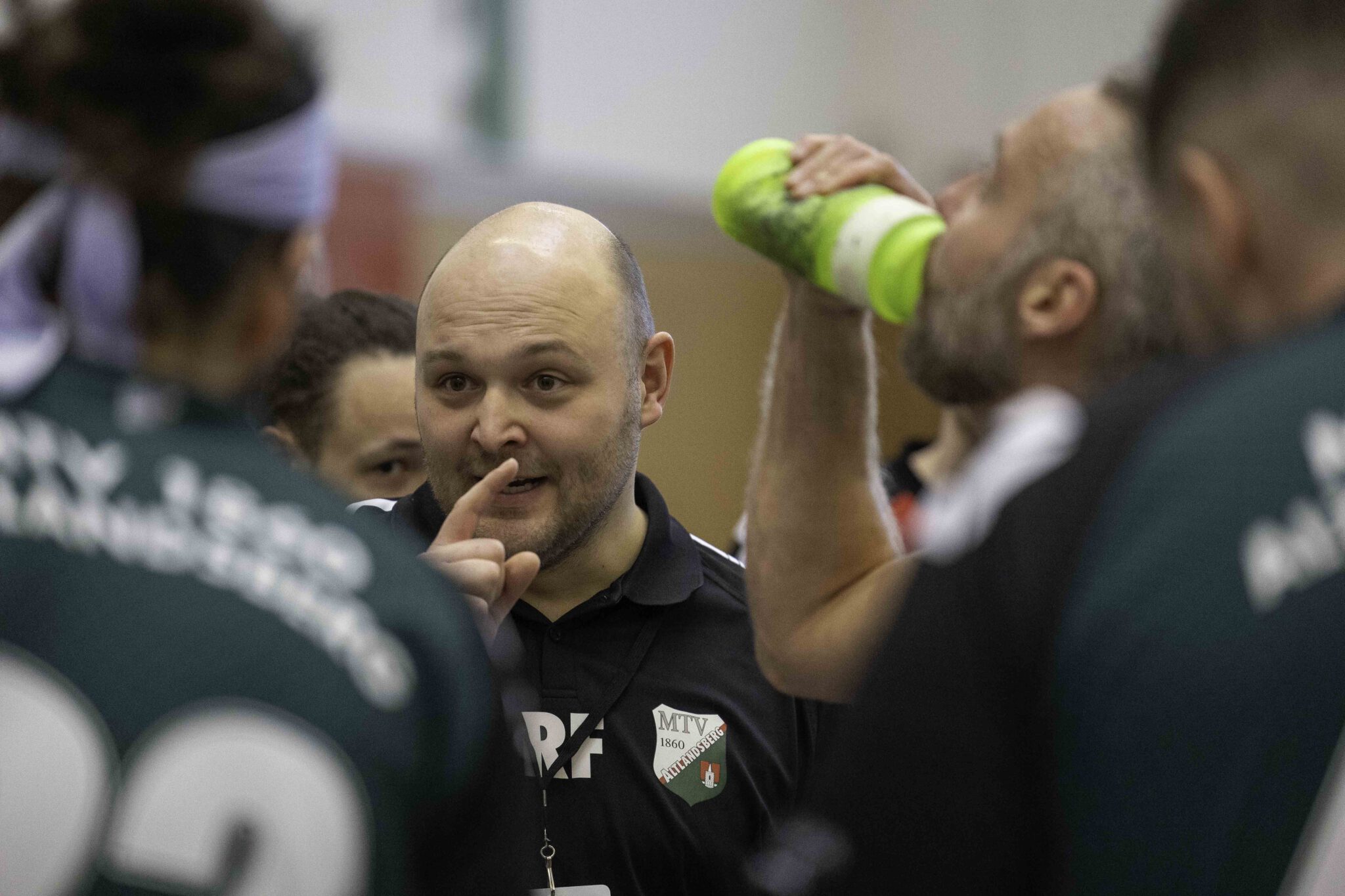 Auch das Selbstbewusstsein war bei den Gastgebern deutlich zu spüren – „heute geht was!“. Zum Bespiel beim Sieben-Meter-Wurf von Tim Ermling. Mit einem Heber, über den baumlangen Usedomer Torhüter Lech Krynski hinweg, warf er zum 7:6 ein. Das war mutig und HSV-Trainer Patrick Glende bezeichnete die gesamte Leistung der Altlandsberger als „sehr mutig“. Der MTV konnte seine Führung behaupten und ließ sich auch nach zwei erfolgreichen Sieben-Meterwürfen für Insel Usedom nicht aus dem Rhythmus bringen. Beide Entscheidungen waren ziemlich umstritten, was sich nach der Pause sogar noch fortsetzen sollte. Zur Pause blieb die Partie völlig offen denn es stand 13:13. Dabei muss man sagen, dass es glücklich für Usedom war, denn der MTV hätte deutlich führen können. Aber auch in diesem Spiel haperte es wieder an der Chancenverwertung. Trainer Rudolf Föllen sagte leicht verärgert: „Wir hätten mit mindestens vier Toren Vorsprung in die Kabine gehen müssen.“