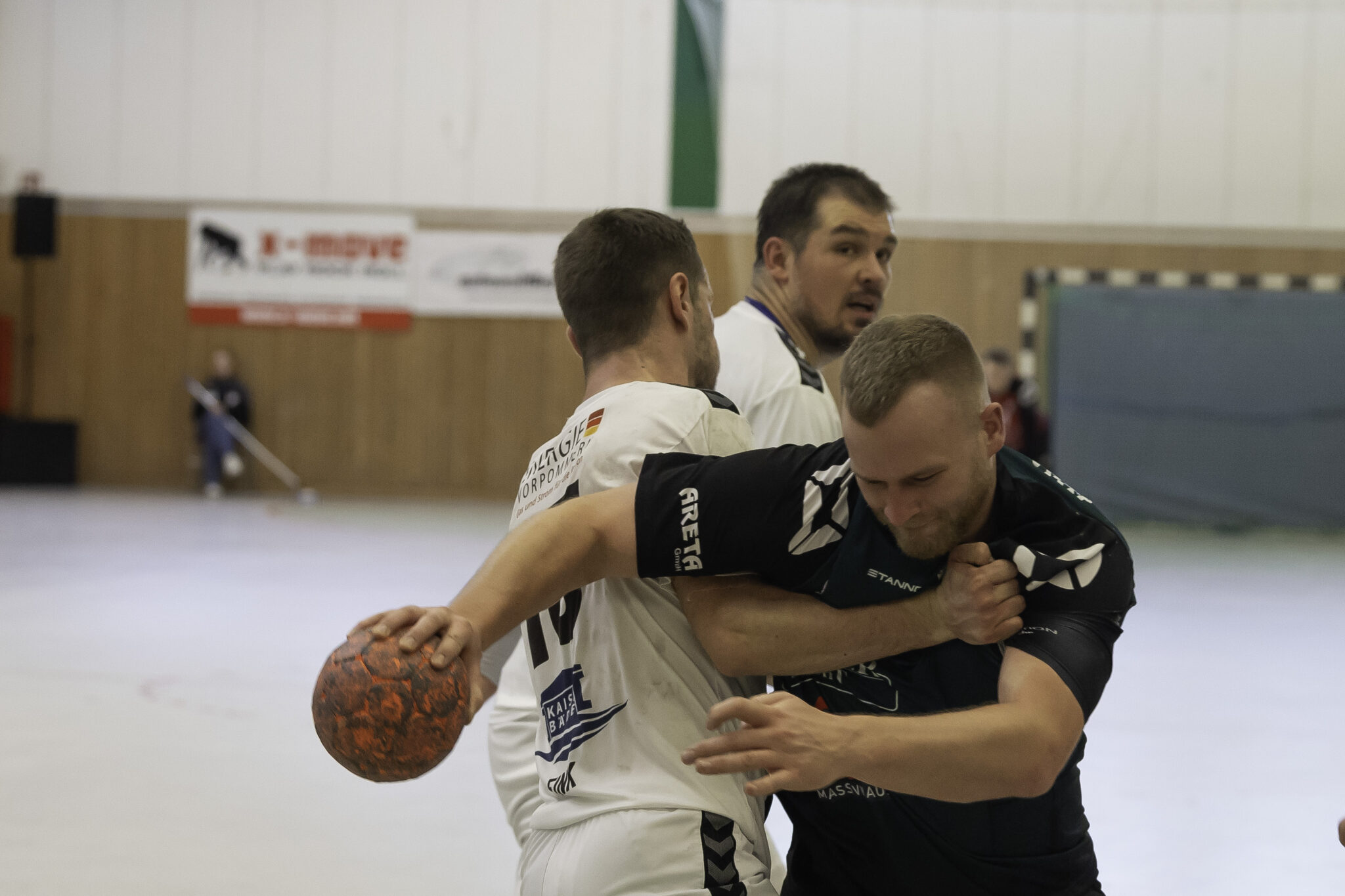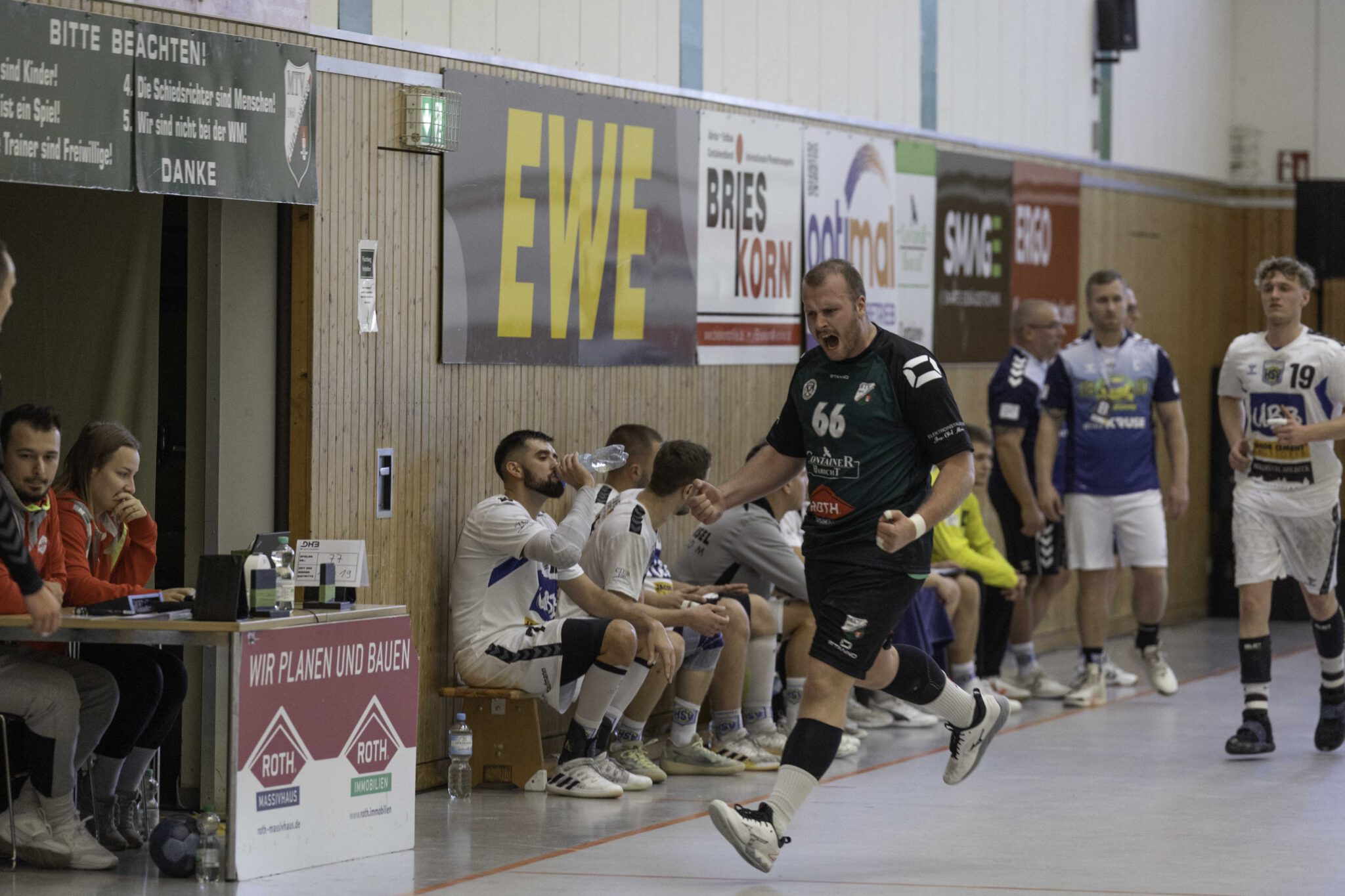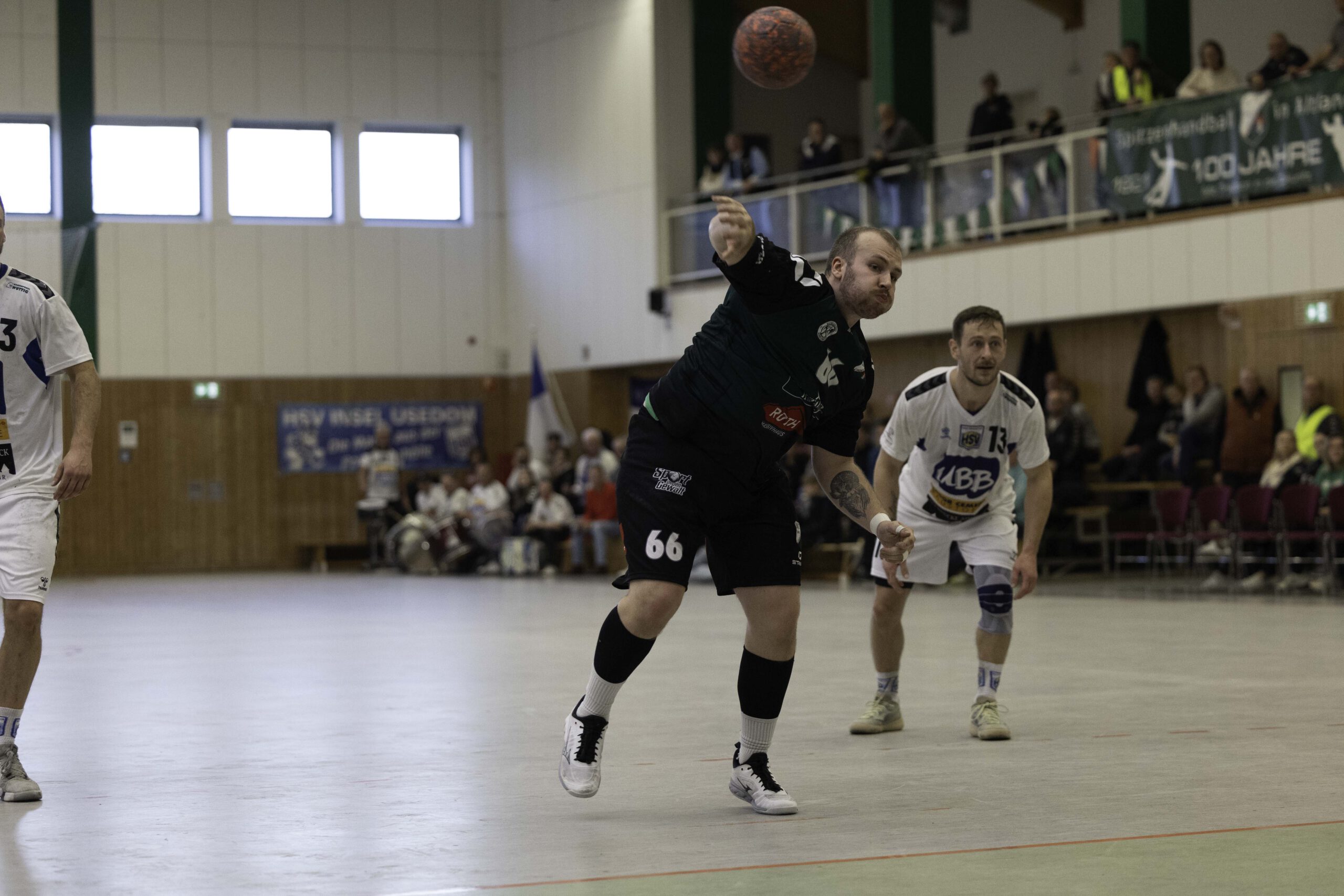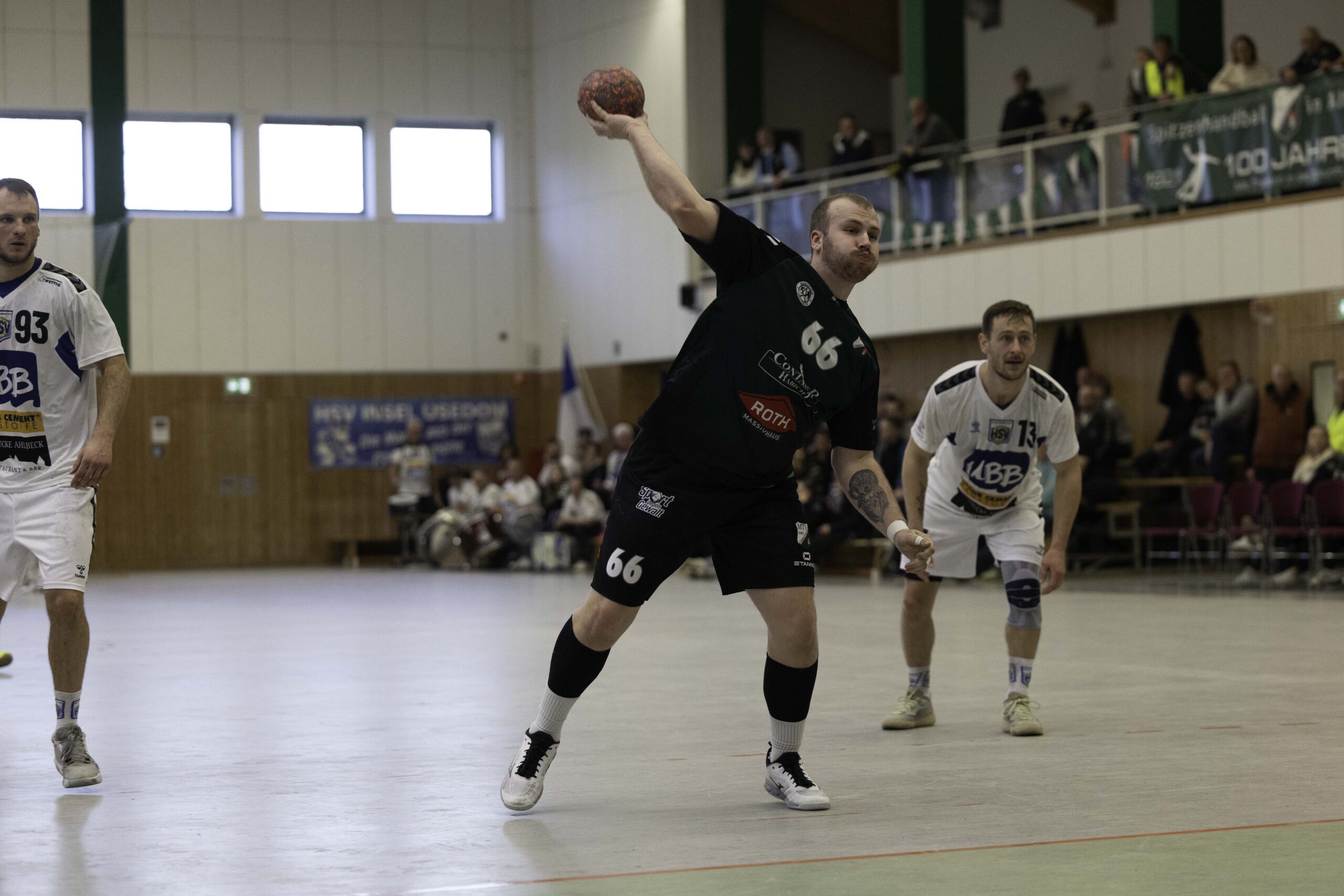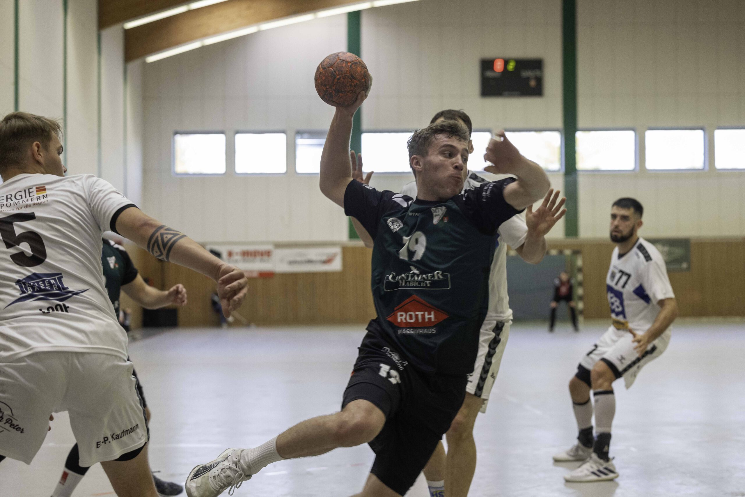 Auch das Selbstbewusstsein war bei den Gastgebern deutlich zu spüren – „heute geht was!“. Zum Bespiel beim Sieben-Meter-Wurf von Tim Ermling. Mit einem Heber, über den baumlangen Usedomer Torhüter Lech Krynski hinweg, warf er zum 7:6 ein. Das war mutig und HSV-Trainer Patrick Glende bezeichnete die gesamte Leistung der Altlandsberger als „sehr mutig“. Der MTV konnte seine Führung behaupten und ließ sich auch nach zwei erfolgreichen Sieben-Meterwürfen für Insel Usedom nicht aus dem Rhythmus bringen. Beide Entscheidungen waren ziemlich umstritten, was sich nach der Pause sogar noch fortsetzen sollte. Zur Pause blieb die Partie völlig offen denn es stand 13:13. Dabei muss man sagen, dass es glücklich für Usedom war, denn der MTV hätte deutlich führen können. Aber auch in diesem Spiel haperte es wieder an der Chancenverwertung. Trainer Rudolf Föllen sagte leicht verärgert: „Wir hätten mit mindestens vier Toren Vorsprung in die Kabine gehen müssen.“