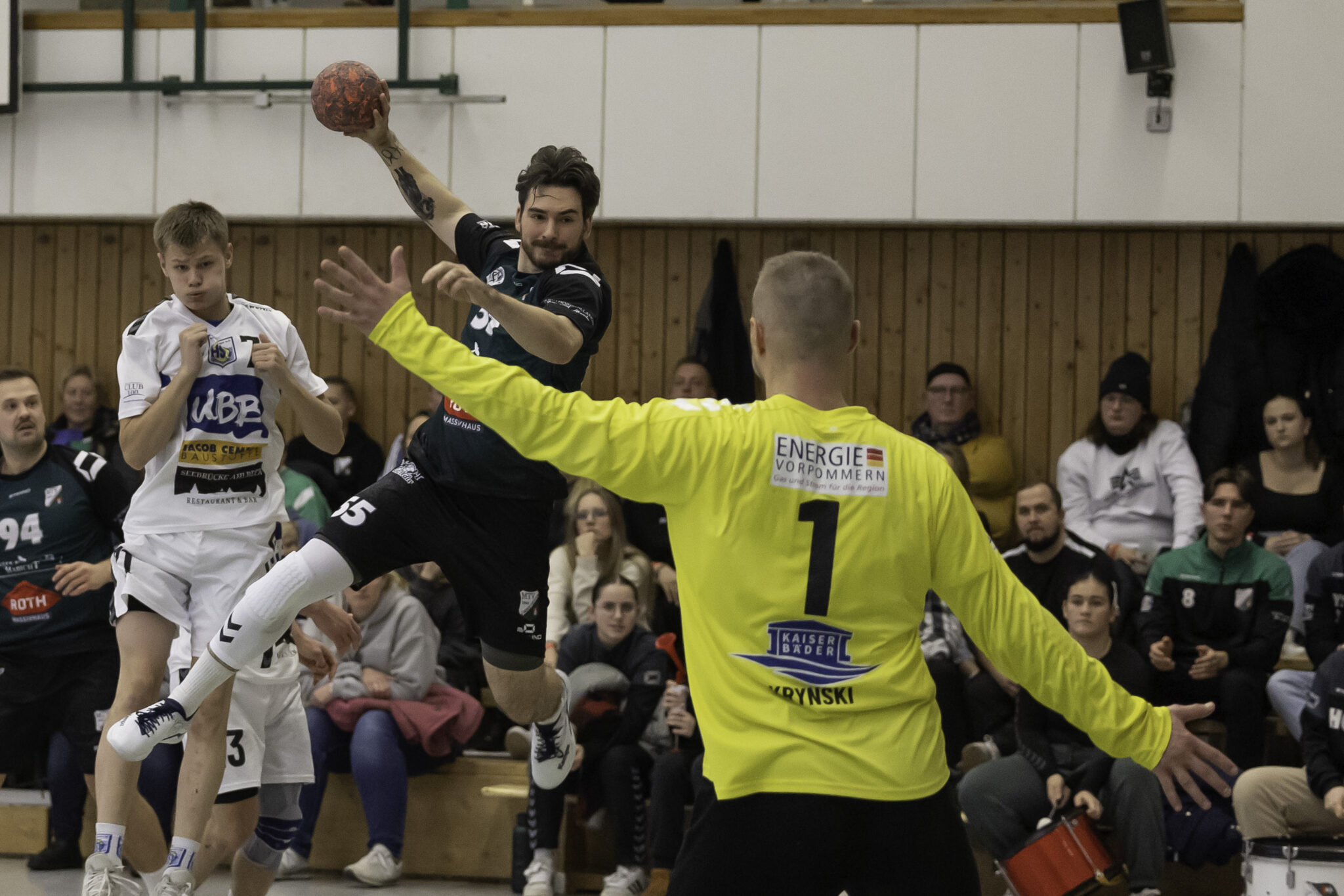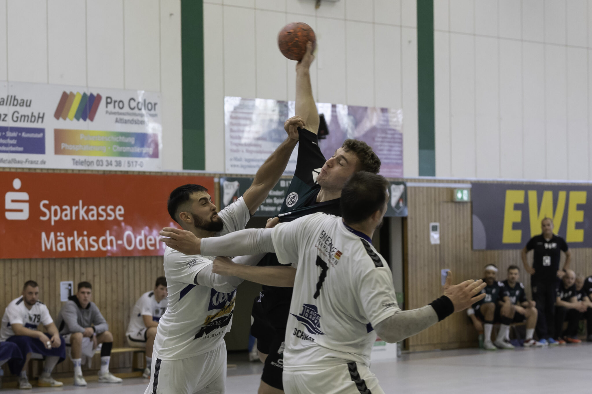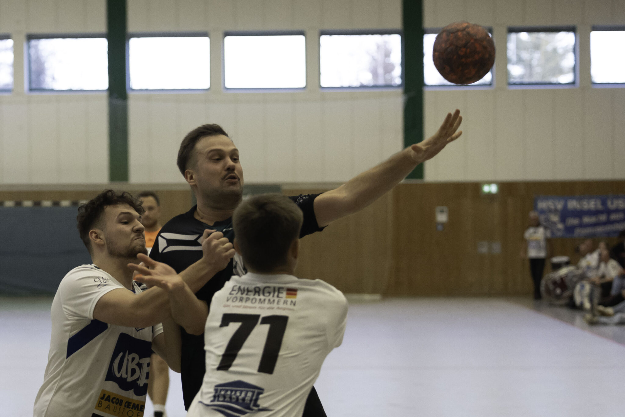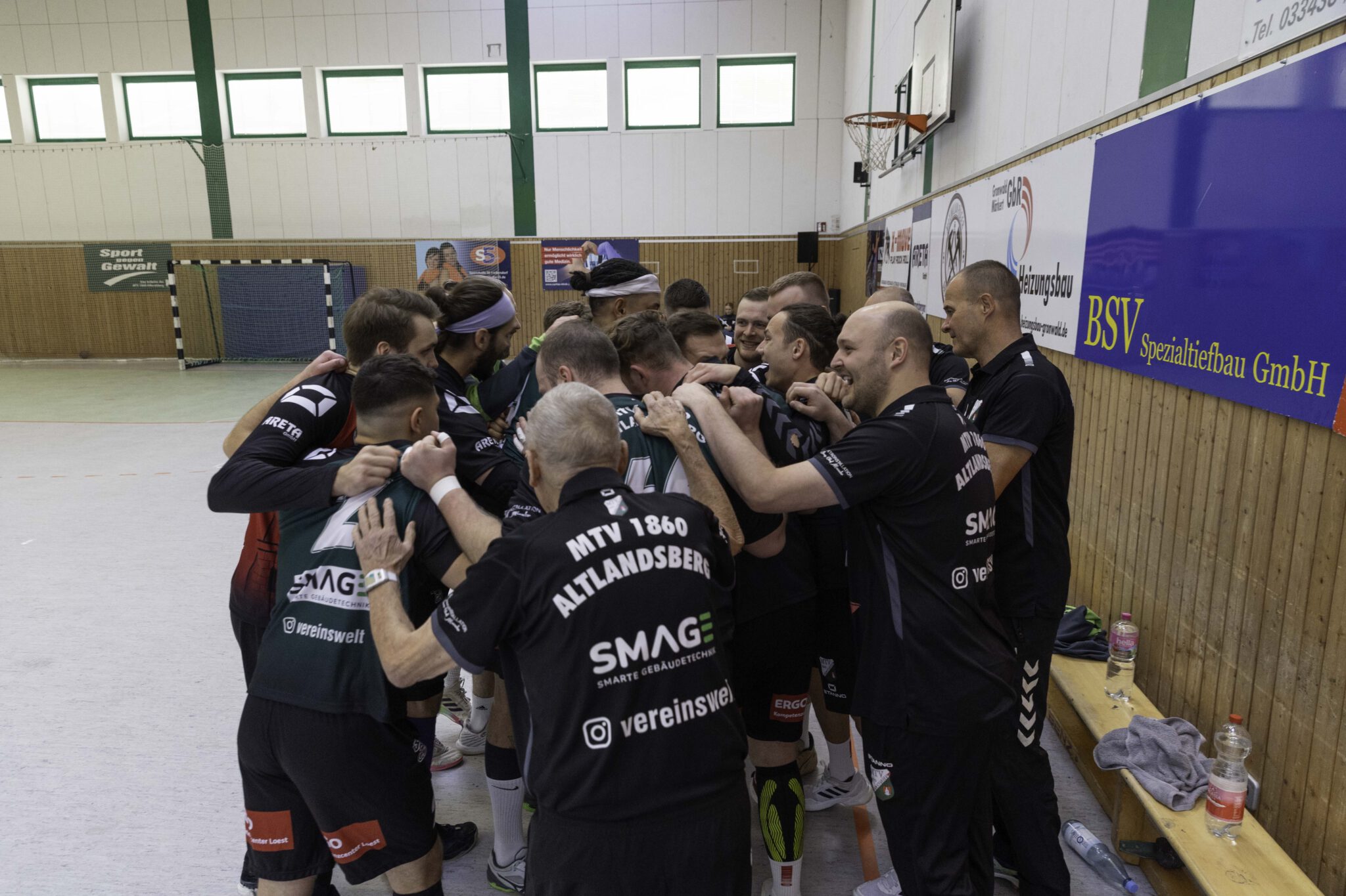 Auch das Selbstbewusstsein war bei den Gastgebern deutlich zu spüren – „heute geht was!“. Zum Bespiel beim Sieben-Meter-Wurf von Tim Ermling. Mit einem Heber, über den baumlangen Usedomer Torhüter Lech Krynski hinweg, warf er zum 7:6 ein. Das war mutig und HSV-Trainer Patrick Glende bezeichnete die gesamte Leistung der Altlandsberger als „sehr mutig“. Der MTV konnte seine Führung behaupten und ließ sich auch nach zwei erfolgreichen Sieben-Meterwürfen für Insel Usedom nicht aus dem Rhythmus bringen. Beide Entscheidungen waren ziemlich umstritten, was sich nach der Pause sogar noch fortsetzen sollte. Zur Pause blieb die Partie völlig offen denn es stand 13:13. Dabei muss man sagen, dass es glücklich für Usedom war, denn der MTV hätte deutlich führen können. Aber auch in diesem Spiel haperte es wieder an der Chancenverwertung. Trainer Rudolf Föllen sagte leicht verärgert: „Wir hätten mit mindestens vier Toren Vorsprung in die Kabine gehen müssen.“