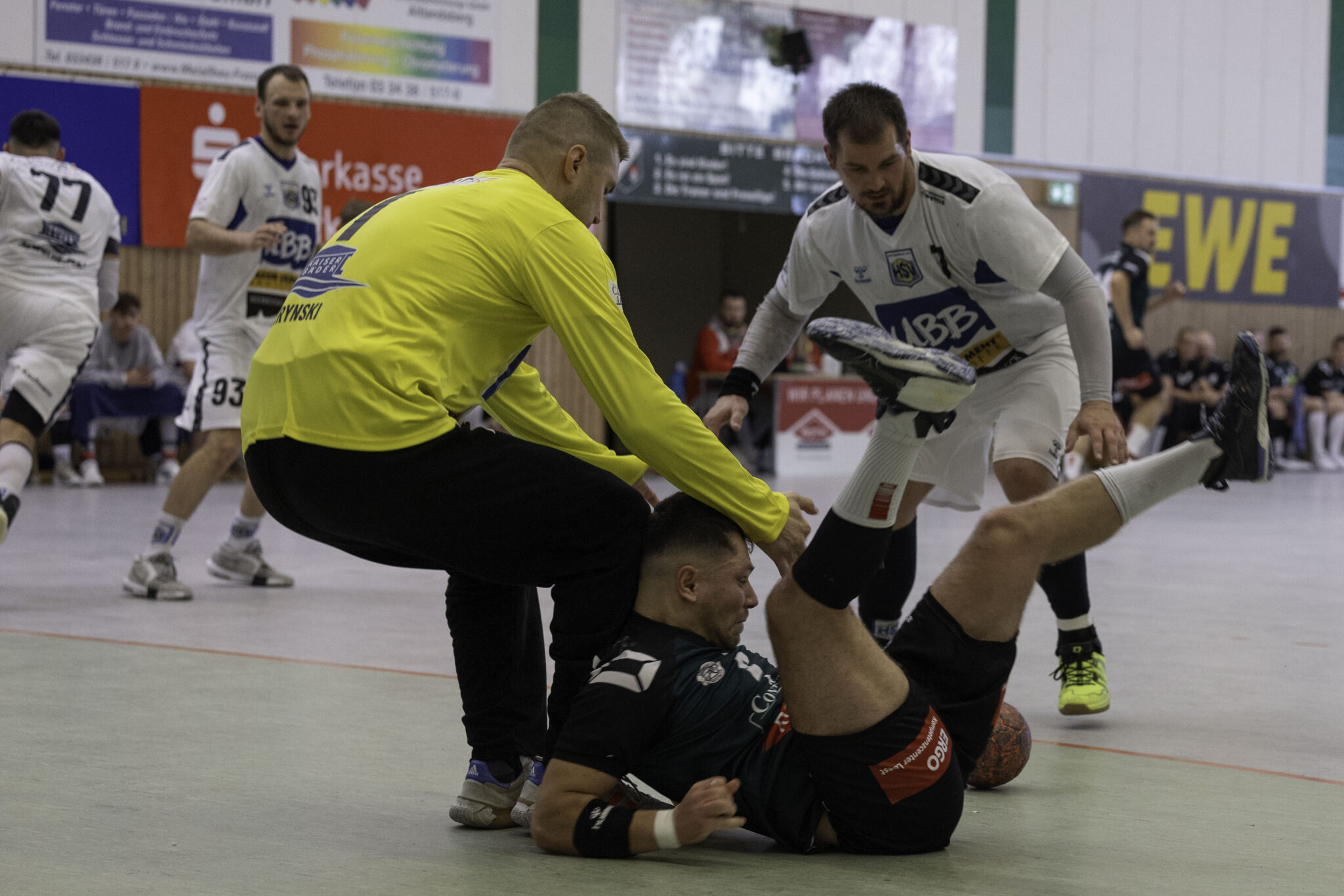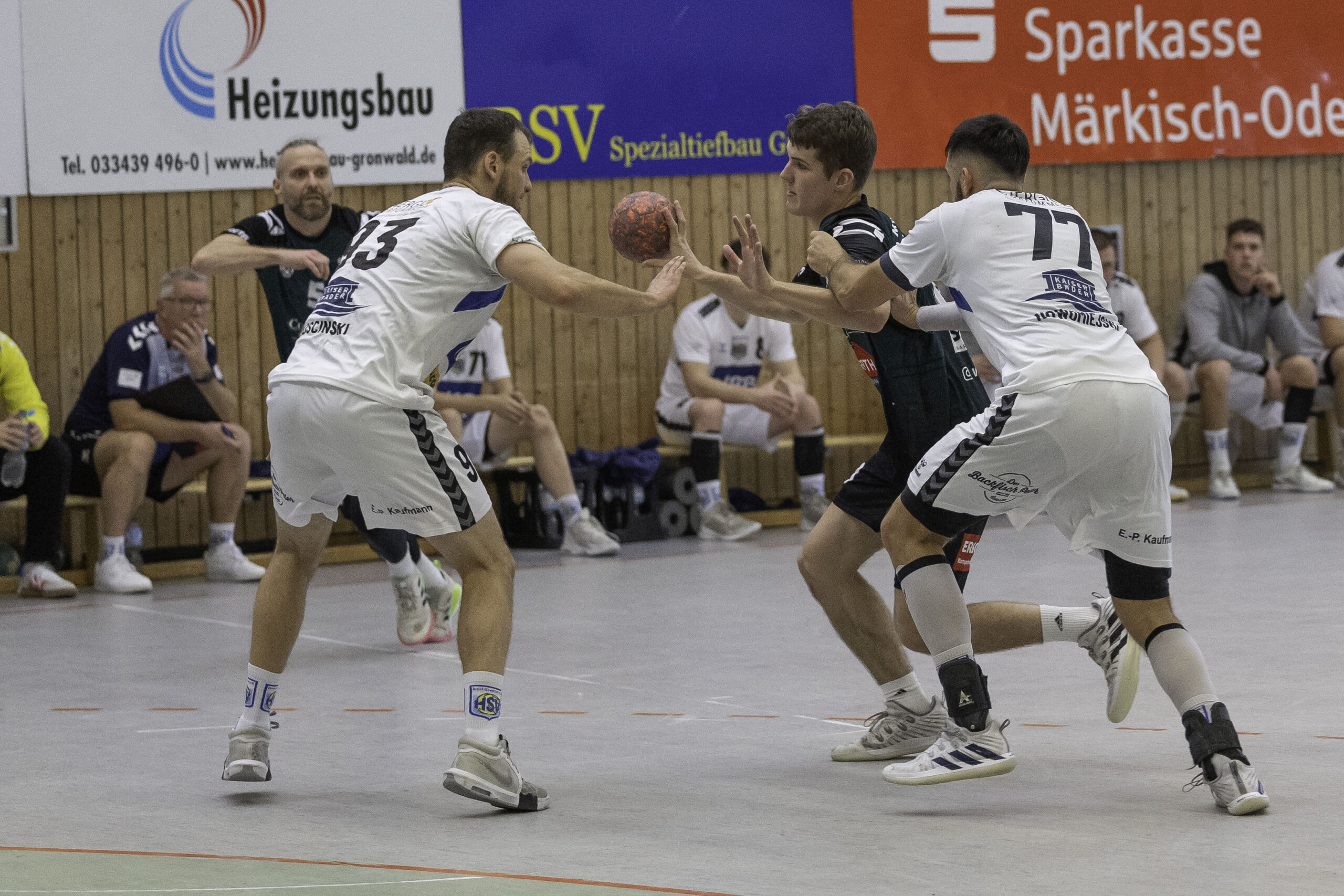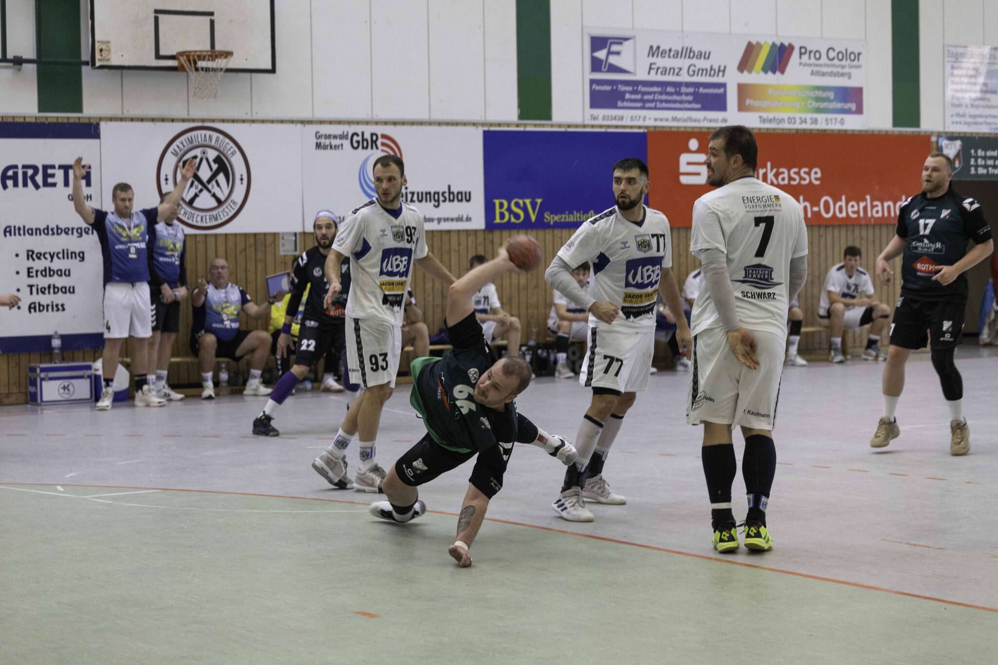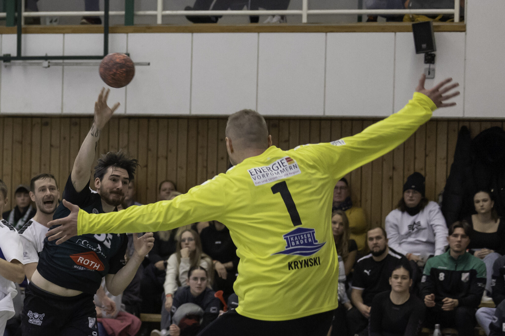 Auch das Selbstbewusstsein war bei den Gastgebern deutlich zu spüren – „heute geht was!“. Zum Bespiel beim Sieben-Meter-Wurf von Tim Ermling. Mit einem Heber, über den baumlangen Usedomer Torhüter Lech Krynski hinweg, warf er zum 7:6 ein. Das war mutig und HSV-Trainer Patrick Glende bezeichnete die gesamte Leistung der Altlandsberger als „sehr mutig“. Der MTV konnte seine Führung behaupten und ließ sich auch nach zwei erfolgreichen Sieben-Meterwürfen für Insel Usedom nicht aus dem Rhythmus bringen. Beide Entscheidungen waren ziemlich umstritten, was sich nach der Pause sogar noch fortsetzen sollte. Zur Pause blieb die Partie völlig offen denn es stand 13:13. Dabei muss man sagen, dass es glücklich für Usedom war, denn der MTV hätte deutlich führen können. Aber auch in diesem Spiel haperte es wieder an der Chancenverwertung. Trainer Rudolf Föllen sagte leicht verärgert: „Wir hätten mit mindestens vier Toren Vorsprung in die Kabine gehen müssen.“