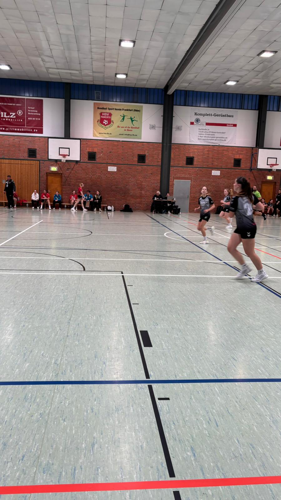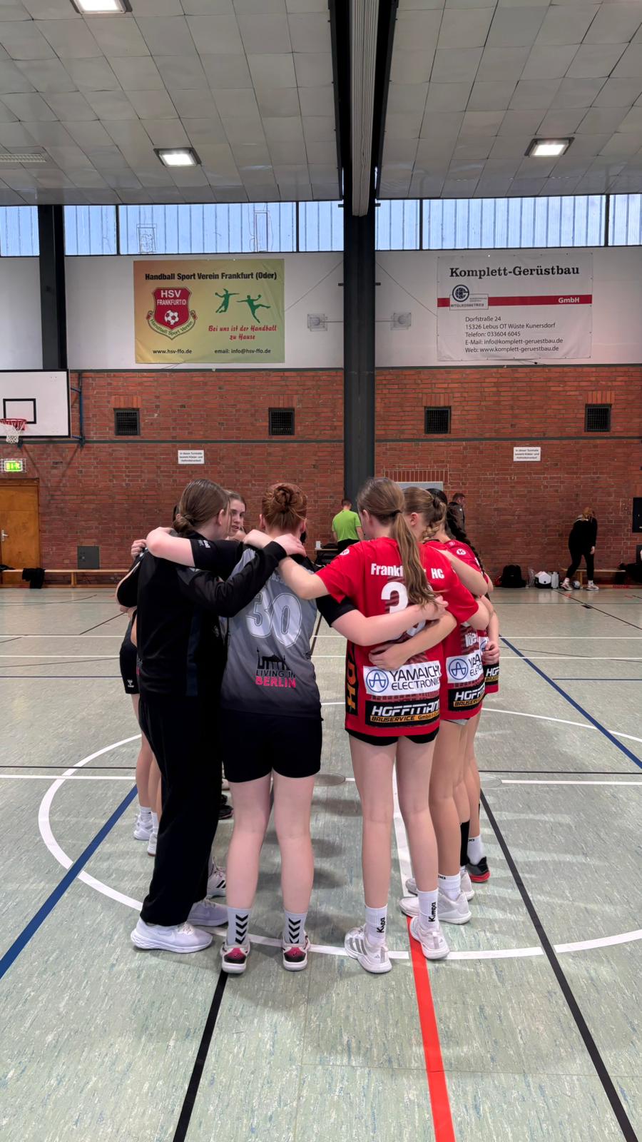 Aus der Pause kommend blieben wir dran, doch die Abwehr ließ Fehler zu und unser Angriff war dabei, aufzugeben. Hinzu kamen viele technische Fehler im Angriff und wir lagen schon bald mit 19:14 zurück. Eine Auszeit musste her und die brachte die nötige Motivation. Die Fehler im Angriff ließen nach und die Abwehr stand jetzt, doch auch die Gegnerinnen hielten Stand und so gelangen erst ab der 43. Spielminute nach und nach wieder erfolgreiche Abschlüsse. Die Mädchen arbeiteten sich wieder heran und besonders Lea und Kaja übernahmen Verantwortung und gaben alles. Den Willen das Spiel noch zu drehen, konnte man nun bei allen spüren, doch dieser kam heute zu spät. Beim Stand von 20:19 für die Frankfurter war die Spielzeit rum und die Mädchen hatten verloren. Die Enttäuschung über das Ausscheiden ist bei allen groß.
