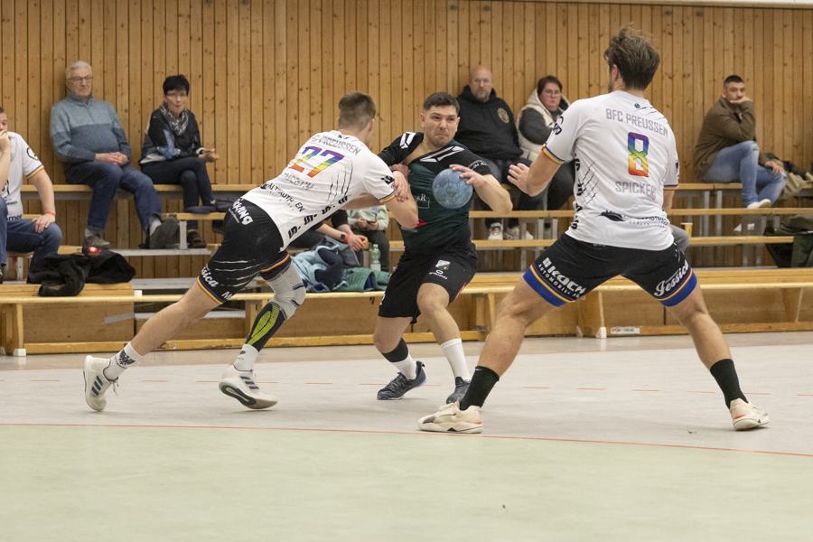 Die Partie begann schon eigentlich sehr unglücklich. Gerade die ersten Minuten gehörten in den jüngsten Spielen immer dem MTV. Diesmal war alles anders. Pech, sie trafen die Latte oder den Pfosten, aber auch schlechte Abschlüsse brachten die Berliner, die ihrerseits ihre Angriffe erfolgreich zu Ende spielten, in Führung. 4:1 nach sechs Minuten, 9:4 nach 19 Minuten – es sah nicht gut aus für den MTV. Immer wieder lief sich die MTV-Offensive im starken Abwehrblock der Berliner fest. Was fehlte, waren zum Beispiel schnelle Positionswechsel oder besser gesagt, die Überraschungsmomente. Die Preussen-Abwehr konnte sich gut auf die Abläufe im MTV-Spiel einstellen. Kam dann doch mal ein MTV-Angriffsspieler durch, war da im Tor der Berliner Patrick Ziebert. Er hielt teilweise großartig und wurde zum besten Spieler seiner Mannschaft. Bei den Gastgebern überragte Dennis Bellmann. Er warf zehn Tore. Doch EIN Dennis Bellmann im Team reicht eben nicht.