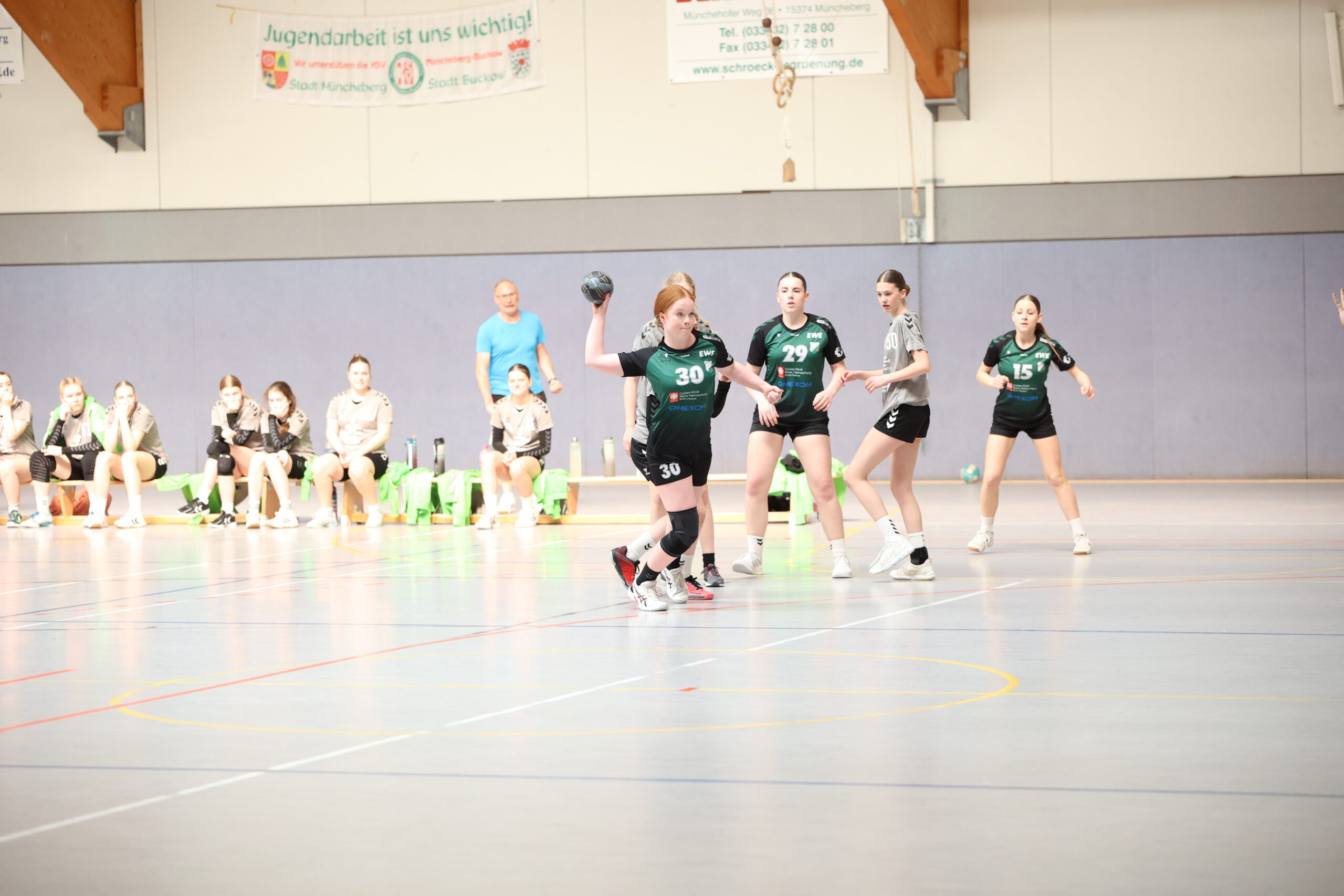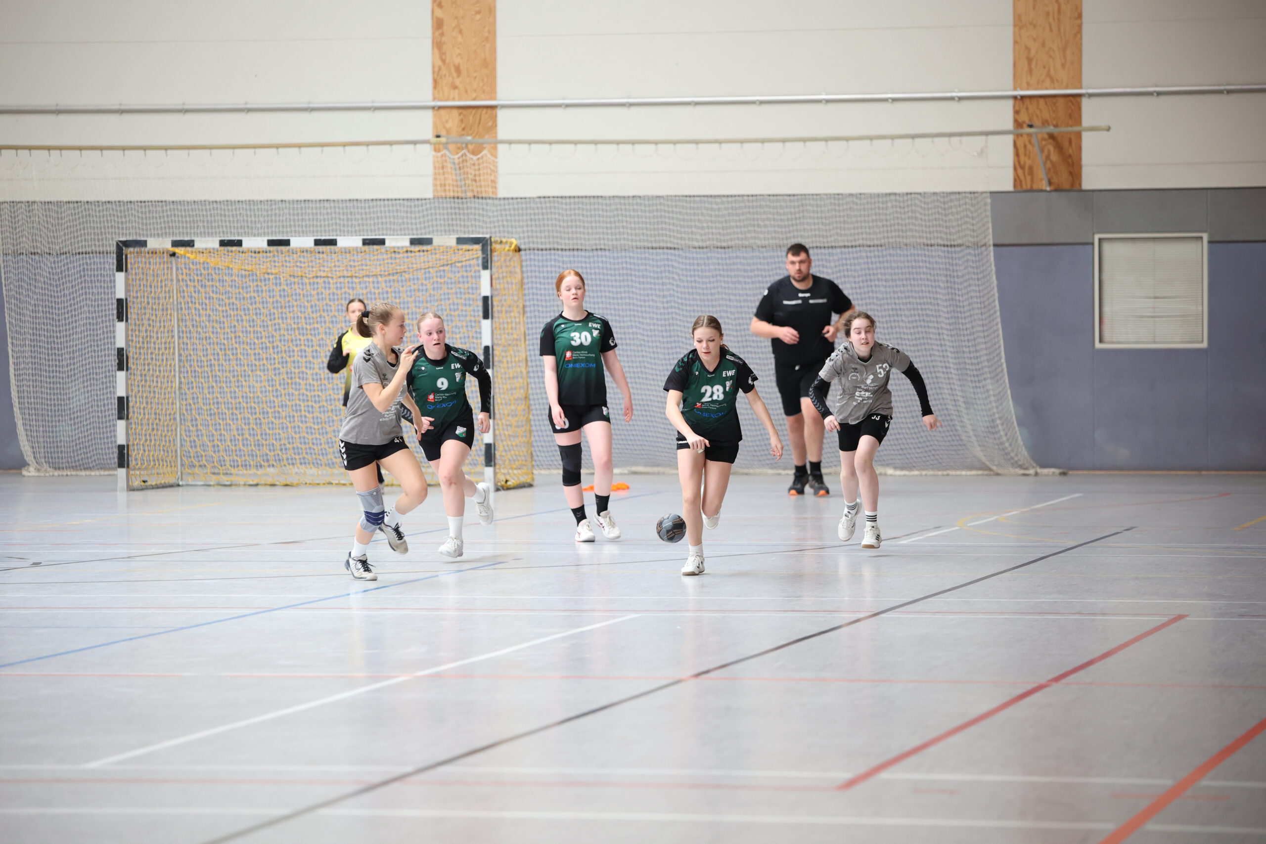 Unsere Mädchen waren hoch motiviert und wollten hier heute gewinnen und das merkte man auch dem Spiel an. Gleich von Anfang an nutzen sie ihre Chancen und konnten in individuellen Aktionen durchgehen. Die Abwehr musste sich zu Beginn noch finden und einstellen, hatte aber trotz einiger Gegentore das Spiel unter Kontrolle. So konnte bereits in der 9. Spielminute die erste 3 Tore Führung eingestellt werden. Im weiteren Verlauf überrannten unsere Mädchen die Gegnerinnen und kamen immer wieder zum erfolgreichen Abschluss. So stand es zur Halbzeit 12:19 für uns.