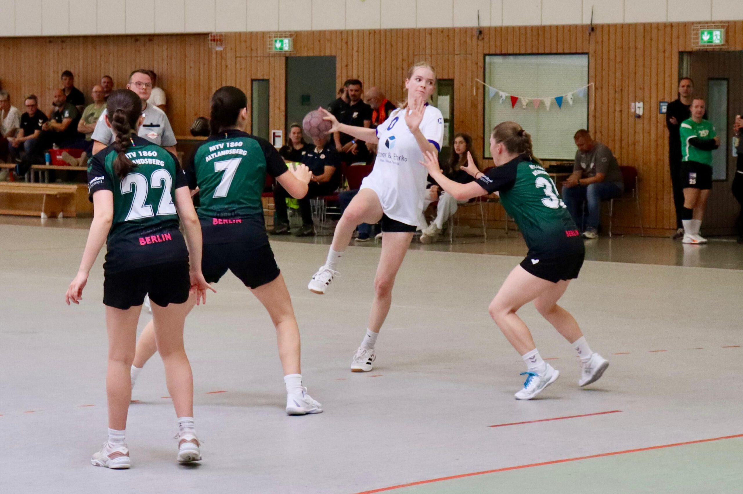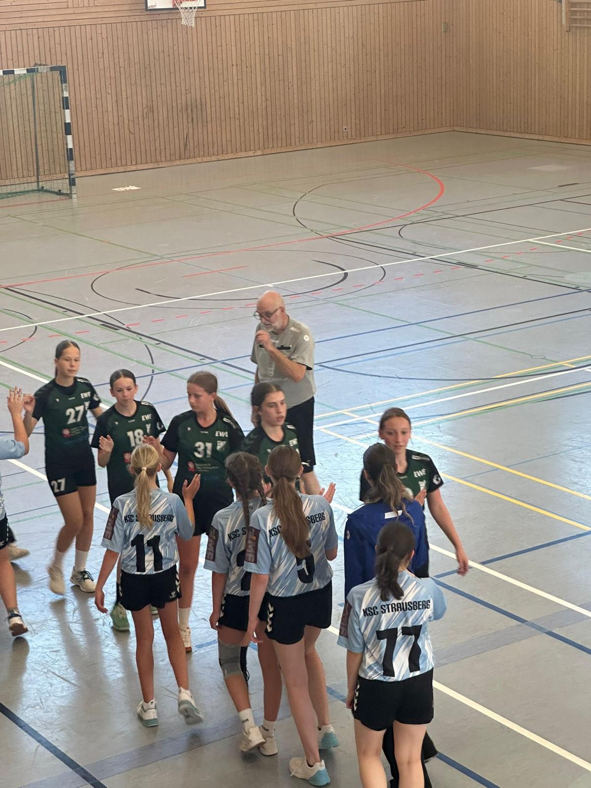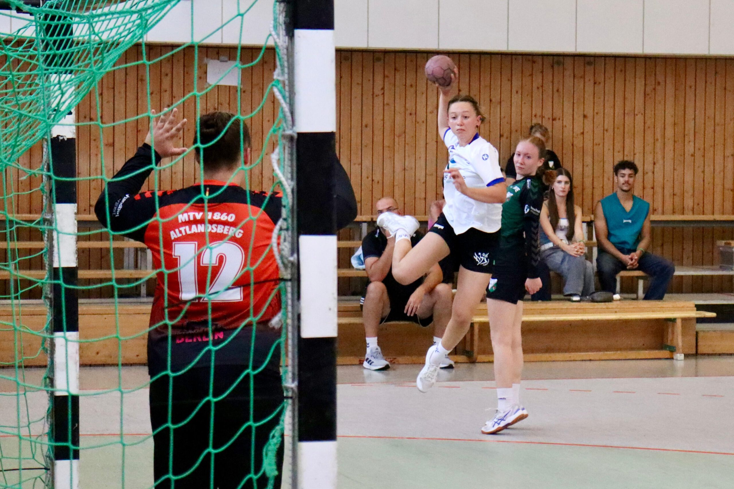 Das erste Tor der Partie erzielte Lea, ehe Nele mit einem sehenswerten Sprungwurf zum 2:0 erhöhte. Trotz einiger fahriger Ballverluste auf beiden Seiten übernahm der MTV schnell die Kontrolle. Eine starke Deckungsarbeit zwang Strausberg immer wieder zu leichten Fehlern. Lea traf erneut zum 3:0, ehe Majella von Linksaußen freigespielt ins lange Eck verwandelte (4:1).