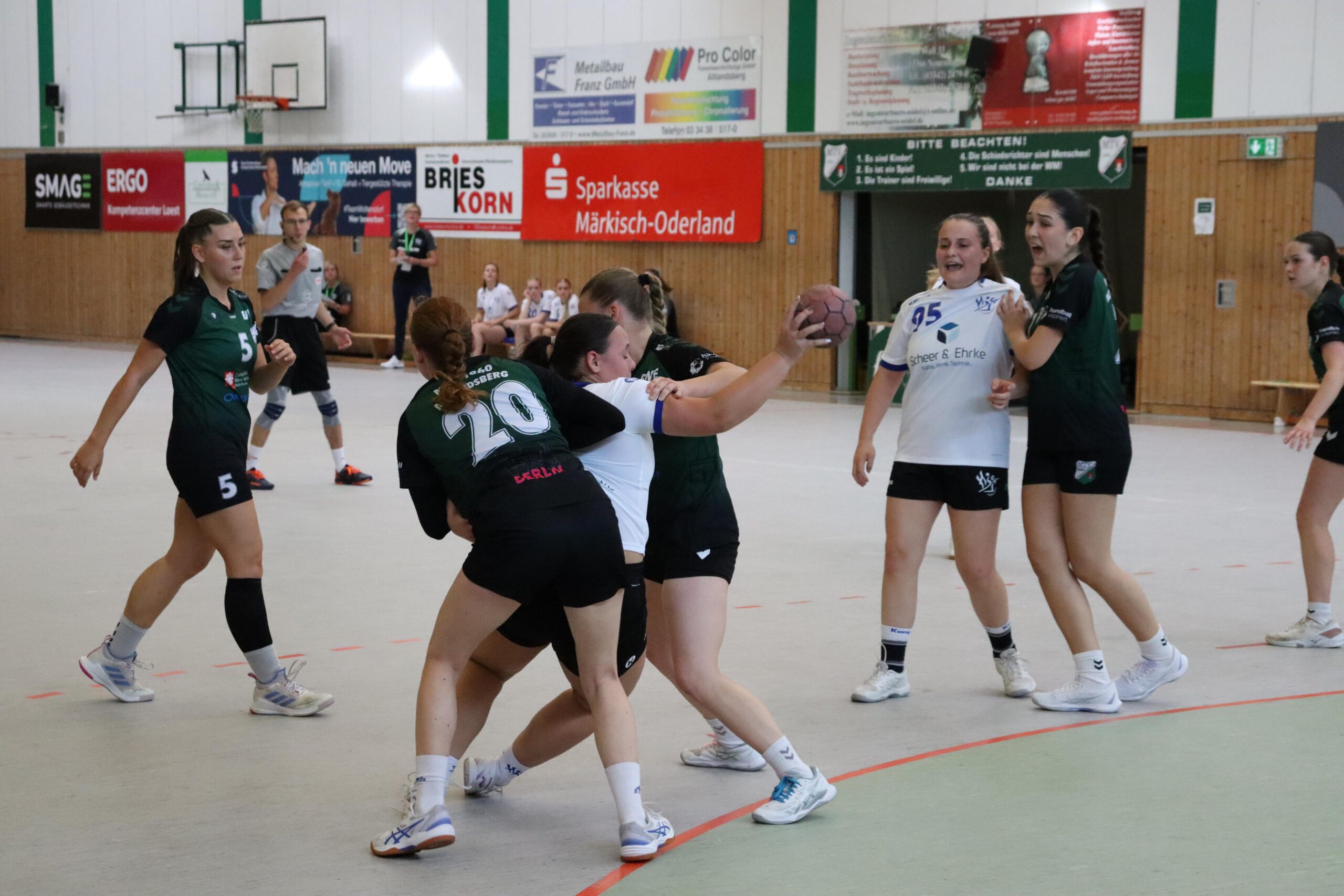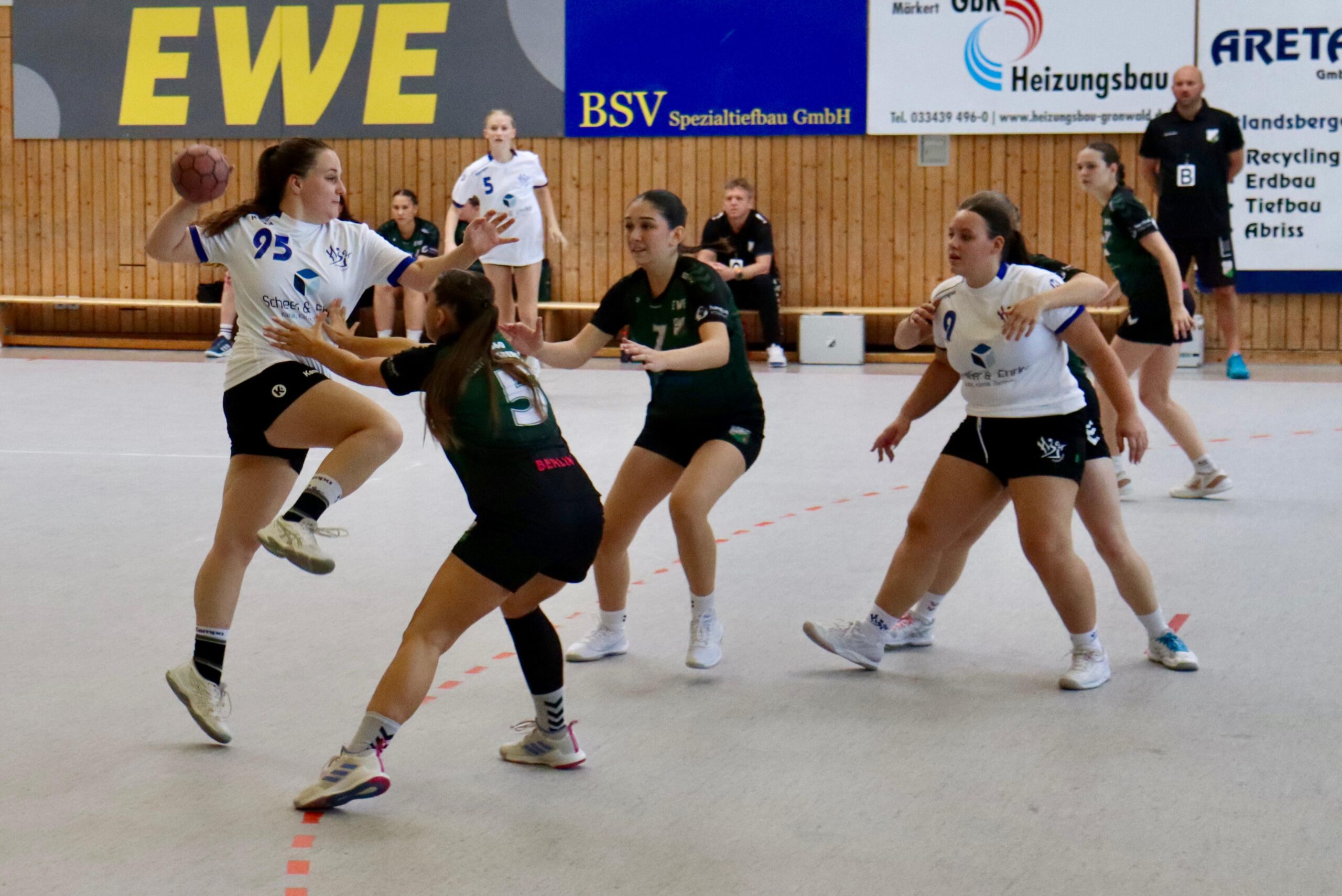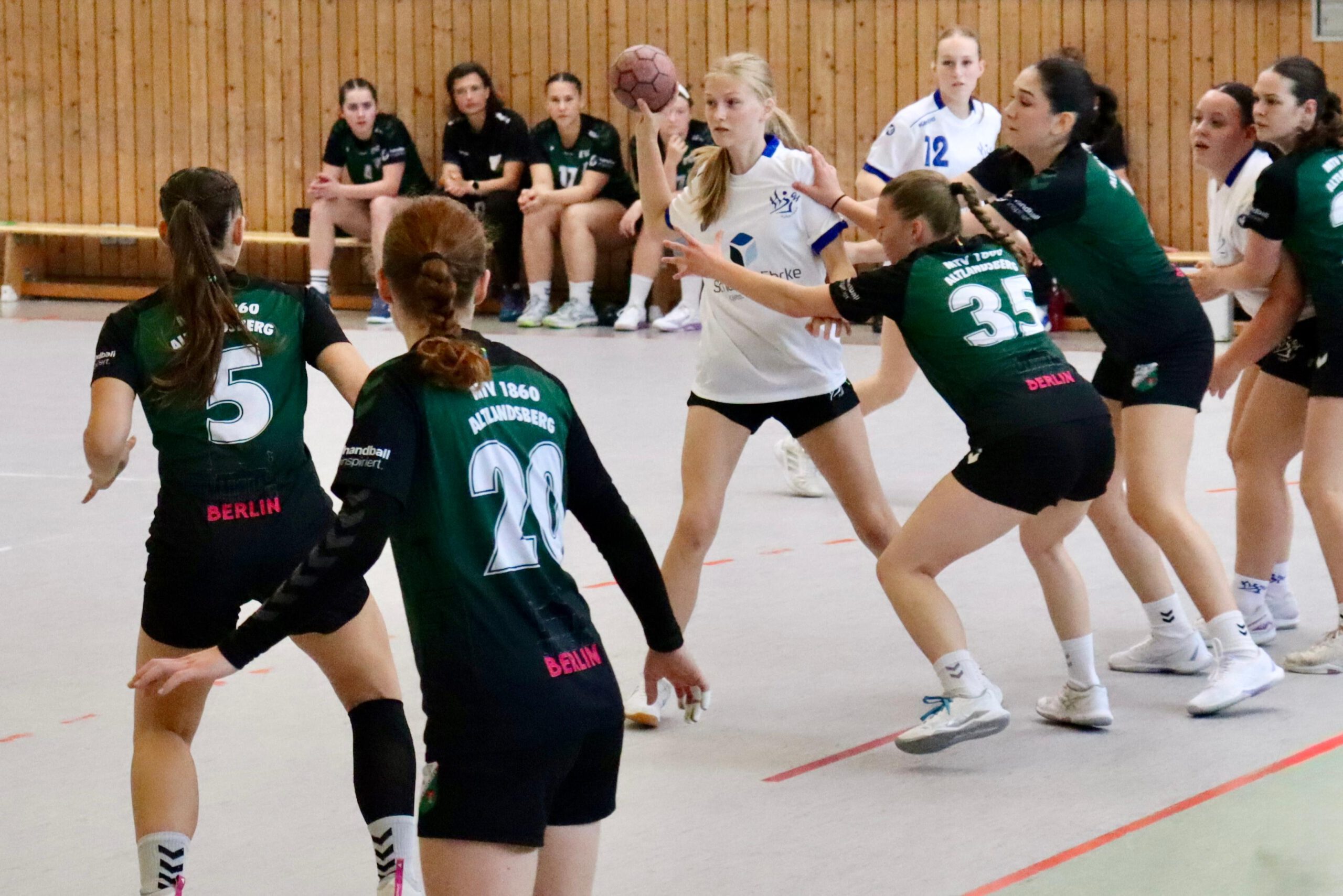 Das erste Tor der Partie erzielte Lea, ehe Nele mit einem sehenswerten Sprungwurf zum 2:0 erhöhte. Trotz einiger fahriger Ballverluste auf beiden Seiten übernahm der MTV schnell die Kontrolle. Eine starke Deckungsarbeit zwang Strausberg immer wieder zu leichten Fehlern. Lea traf erneut zum 3:0, ehe Majella von Linksaußen freigespielt ins lange Eck verwandelte (4:1).