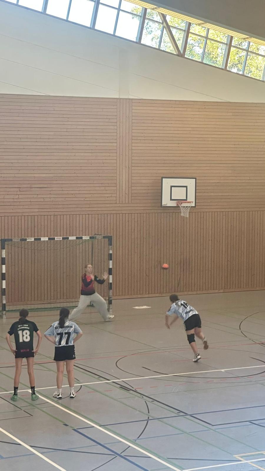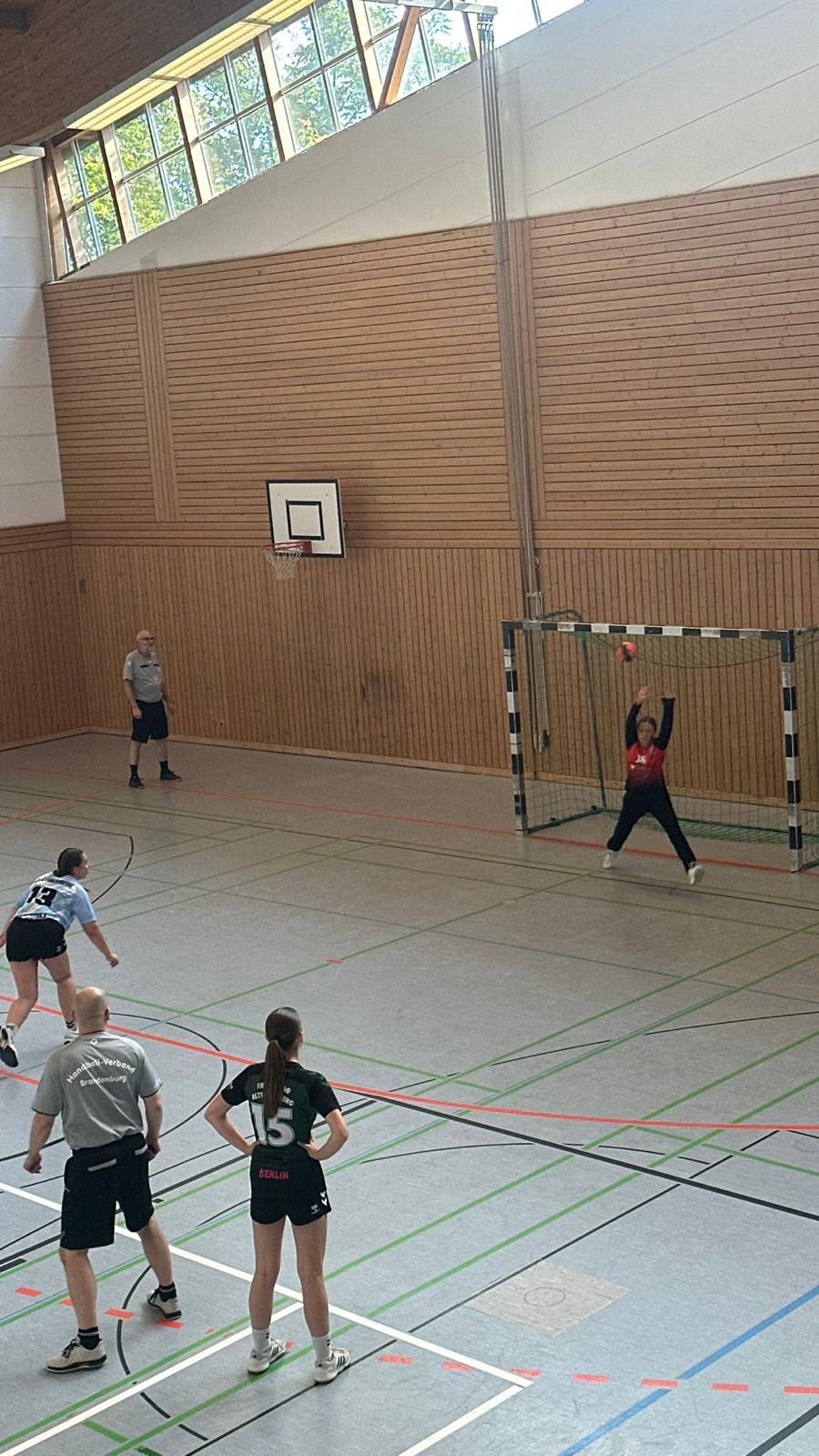 Charlotta kam im Tor ins Spiel und glänzte sofort mit Paraden, darunter ein gehaltener Siebenmeter. Mit einem überzeugenden 16:4 ging es in die Halbzeitpause.