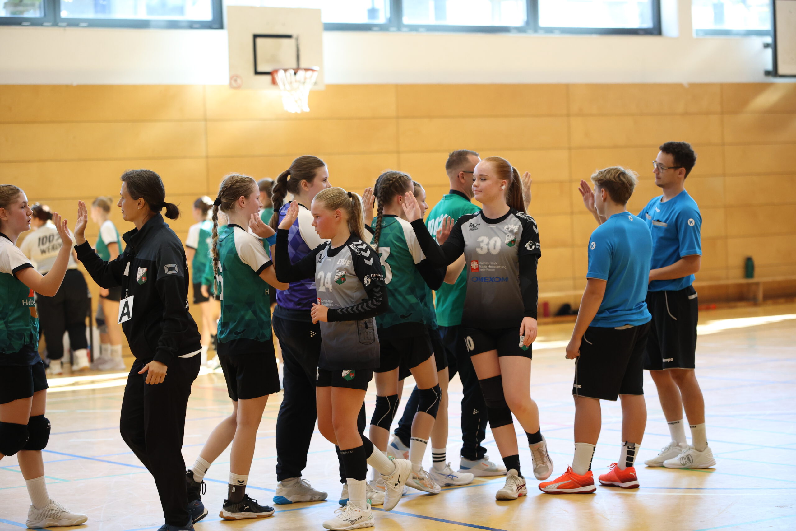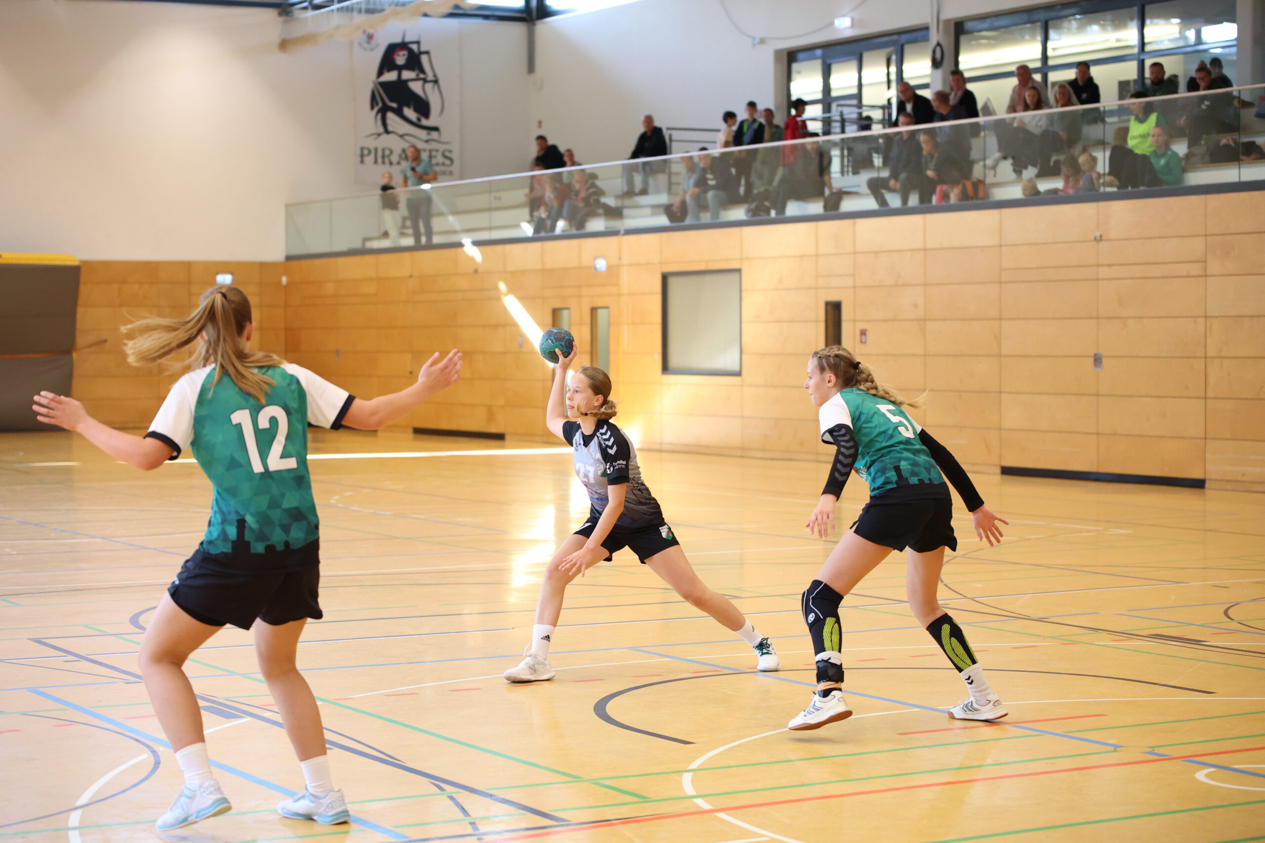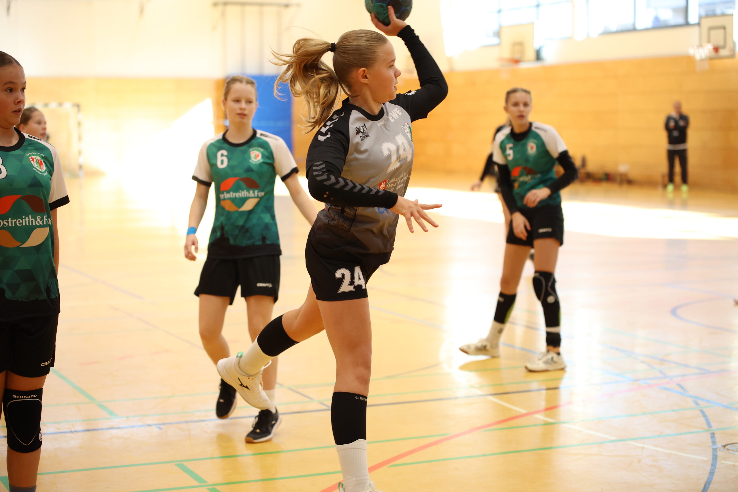 In den ersten 20 Minuten war das Spiel geprägt von gegenseitigen Durchbrüchen und kein Team konnte sich absetzen. Nele, Marie, Helene und auch Annalena trafen für uns. Es war ein schnelles dynamisches Spiel und unsere Kondition war gefordert. Die Abwehr musste sich absprechen und sich gegenseitig unterstützen. In den letzten 5 Minuten der ersten Halbzeit glückte es uns jedoch einen Vorsprung von 4 Toren zu erkämpfen. Wir gingen in die Halbzeitpause mit 11:15.