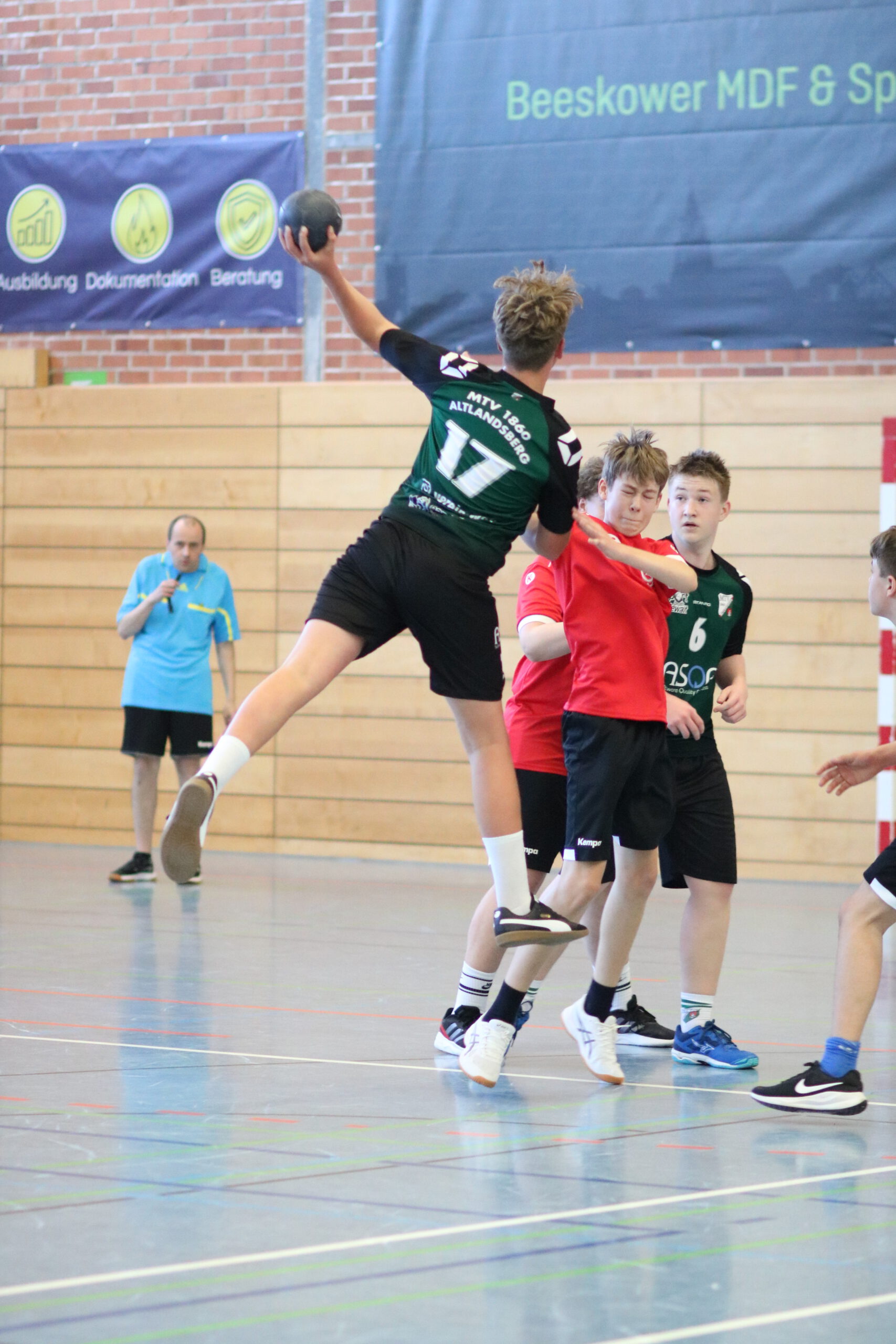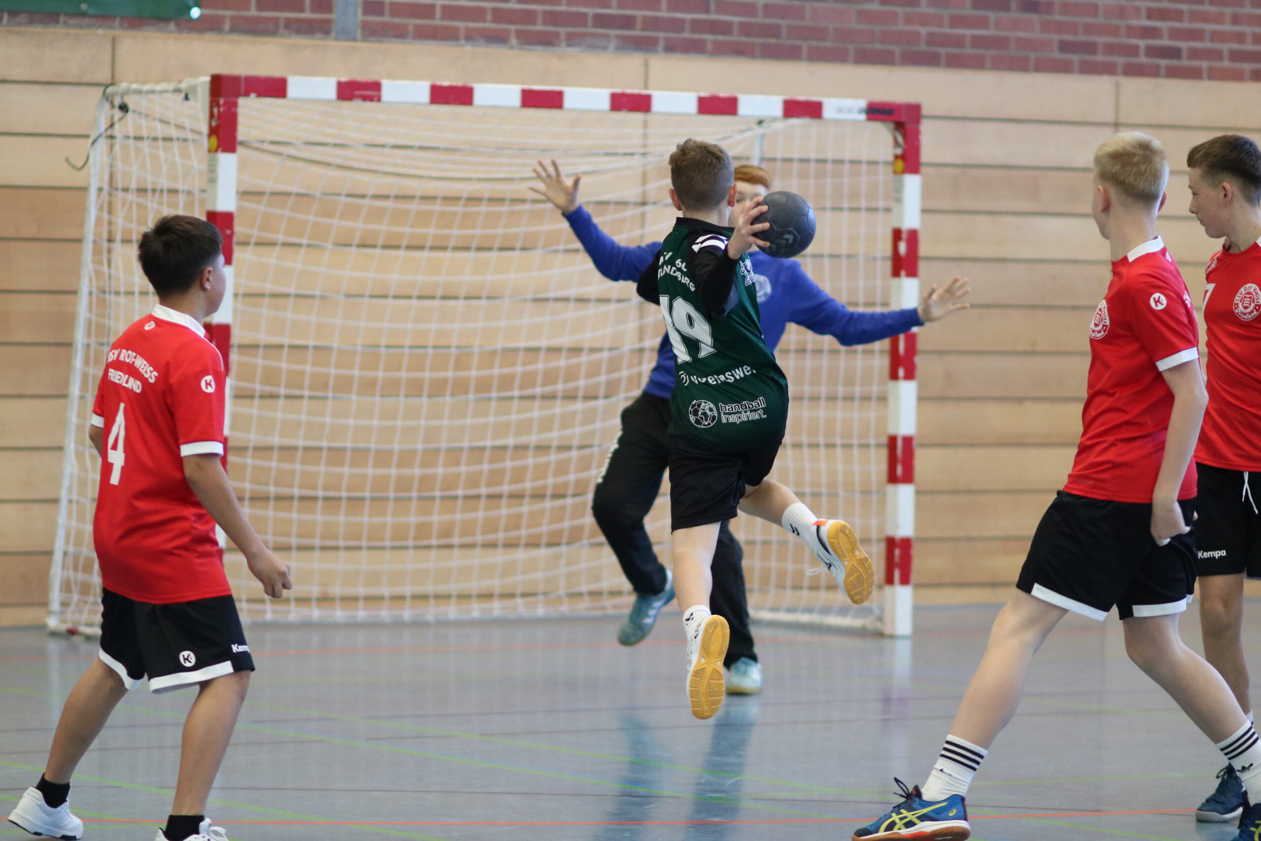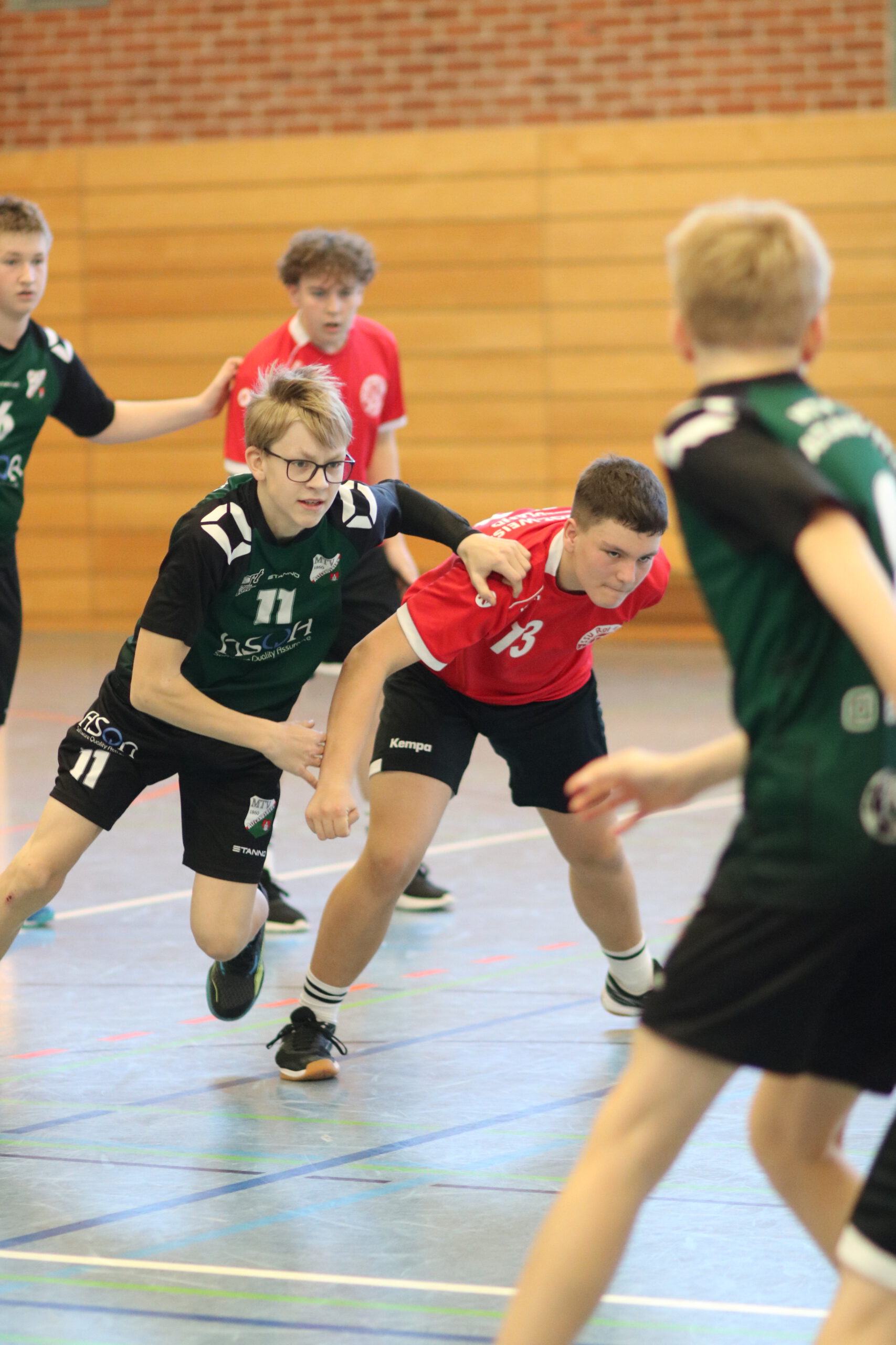 Das Tempo war hoch und führte zu kleineren Fehlern im Angriff, was Friedland nutzte, um sich mit zwei Treffern abzusetzen. Unsere Jungs hielten jedoch stark dagegen und kämpften sich immer wieder mit besonders starken Eins gegen Eins Chancen durch die Rückraumspieler heran. Kein Team konnte sich mit mehr als drei Toren absetzen – ein Zeichen für das ausgeglichene und spannende Spiel. Zur Halbzeit lagen wir knapp mit 12:14 zurück.