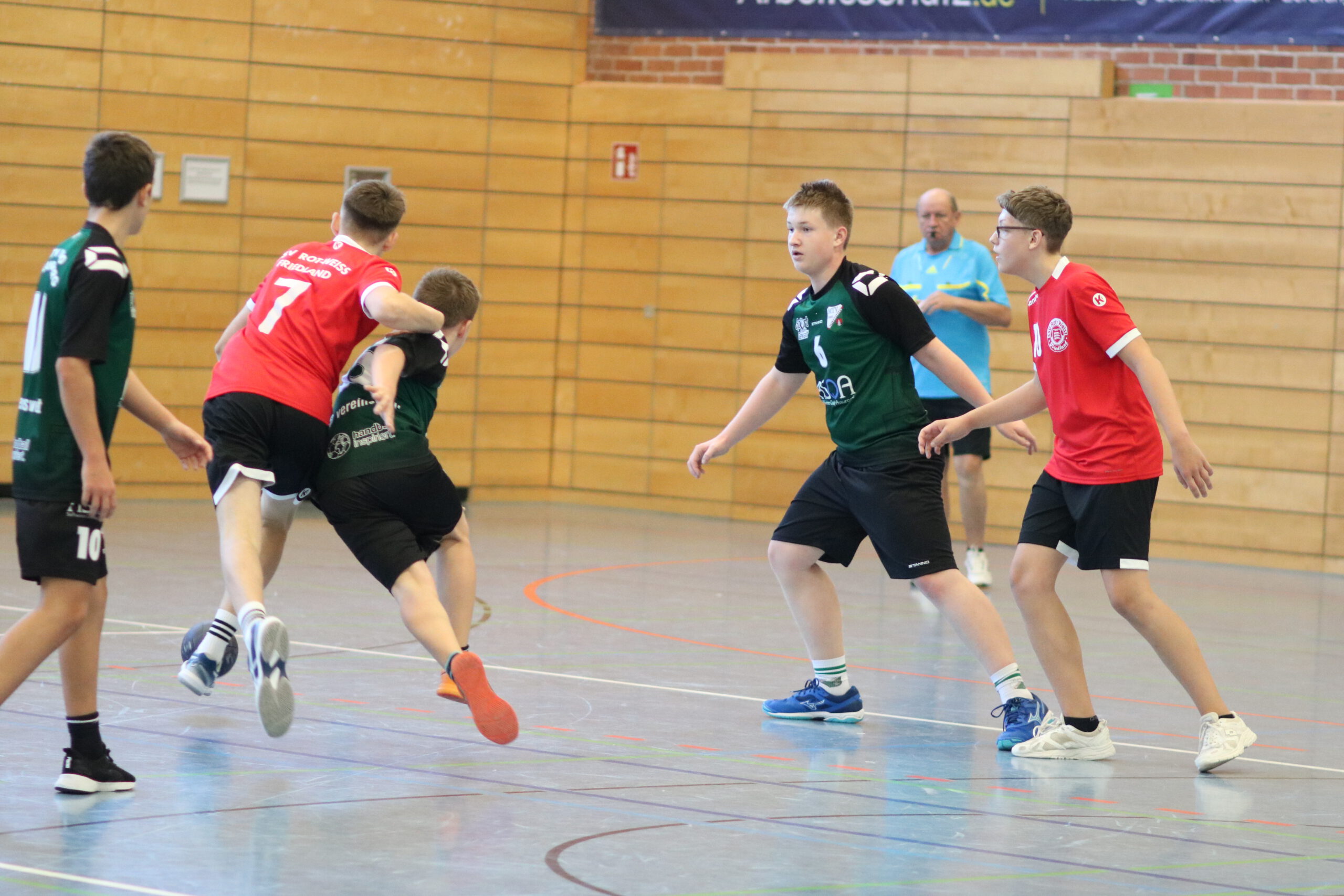 Nach der Pause zeigte unsere Mannschaft eine tolle Reaktion. Schritt für Schritt arbeitete man sich heran. Julius konnte jetzt seine Schnelligkeit ausspielen und sorgte im Angriff sowohl durch starke Einzelaktionen als auch durch schnelle Gegenstöße für tolle Tore. Die Abwehr mit Dominik und Sandro stand nun auch deutlich stabiler und bereitete den Gegnern Schwierigkeiten. Immer wieder konnten Bälle erobert und in Gegenstöße umgewandelt werden. Der Einsatz und die Leidenschaft auf dem Feld war ansteckend und begeisterte auch die mitgereisten Fans, die die Jungs lautstark unterstützten.