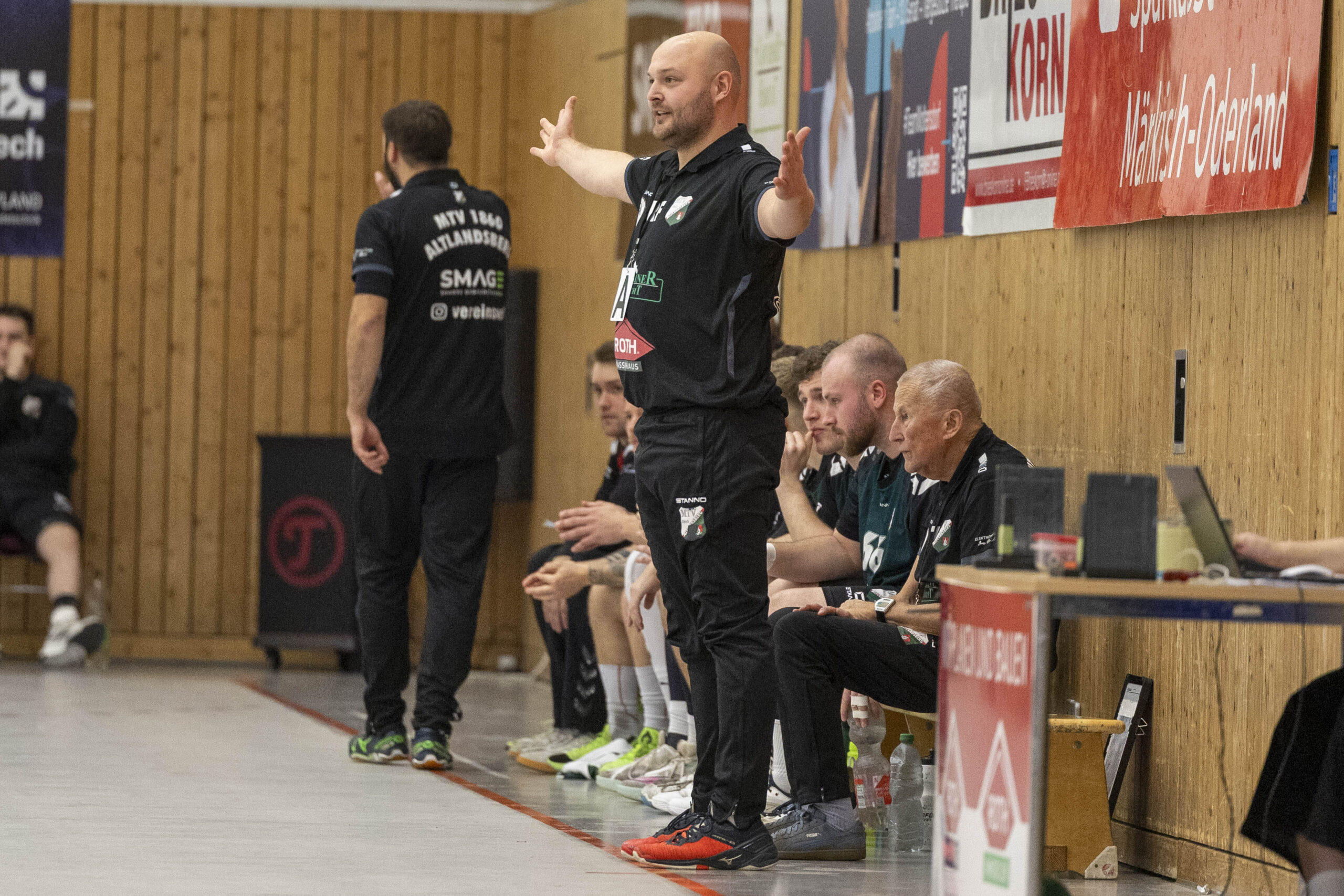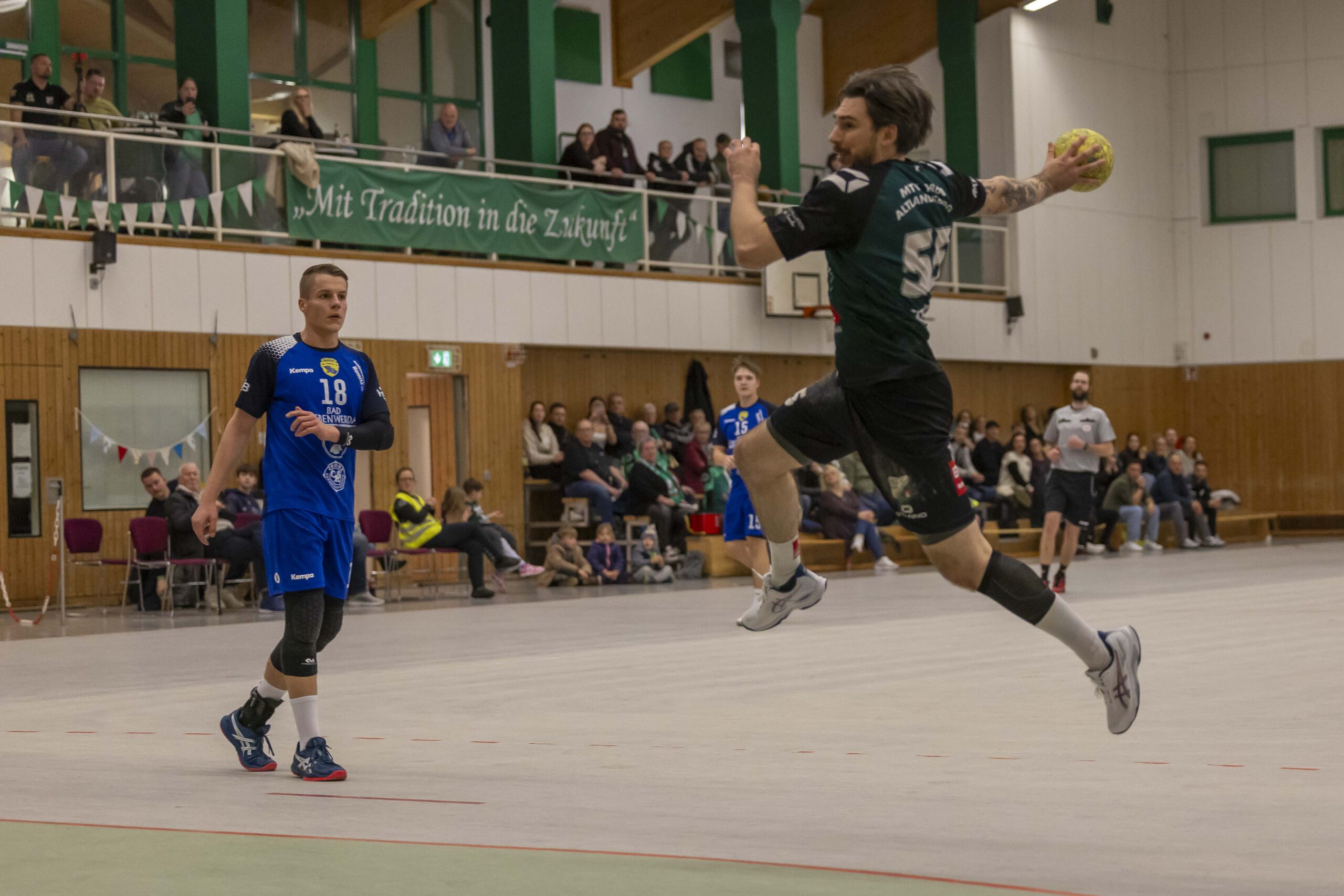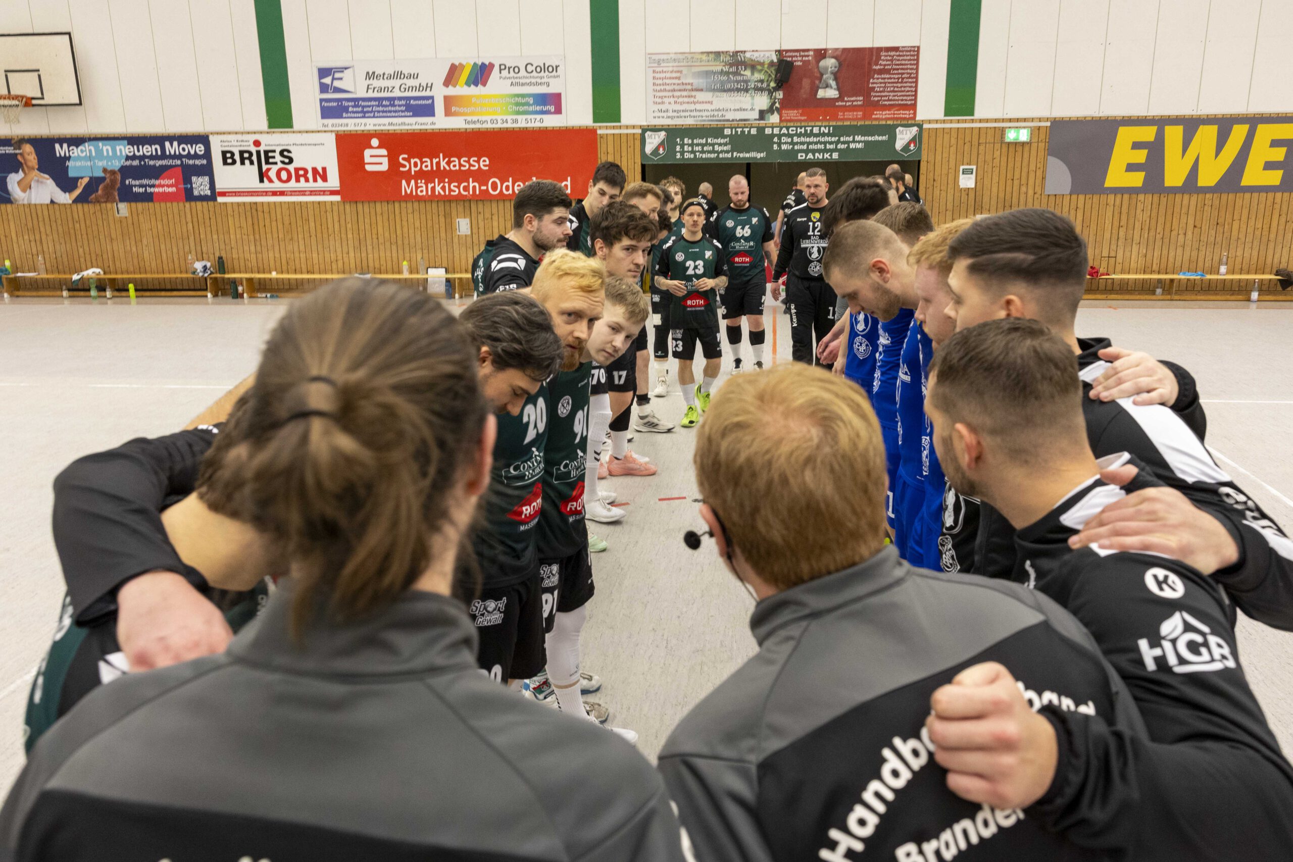 Das Spiel begann zunächst mit jeweils guten Paraden der Torhüter: Vor allem Oliver Böhme von den Gästen konnte sich gleich mehrfach auszeichnen. Das erste Tor der Altlandsberger fiel erst nach zehn Minuten. Dennis Bellmann traf zum 1:4. Es folgte dann eine bessere Phase des Gastgebers, der zwischenzeitlich zum 7:7 ausgleichen konnte. Doch so richtig überzeugen konnte das alles nicht, vor allem weil der geneigte Fan noch das gute Spiel aus der Vorwoche gegen Grün-Weiß Werder in Erinnerung hatte. Vielleicht lag es auch daran, dass der Zuschauerzuspruch diesmal nicht besonders war. Hallensprecher Lasse Fleck musste seine Stimme nicht besonders strapazieren und laut ins Mikrofon sprechen. Zum Seitenwechsel führten die Gäste mit 13:12. Musste man sich um den MTV Sorgen machen? Eigentlich nicht, denn inzwischen wissen alle, dass genügend Potenzial in der Mannschaft steckt.