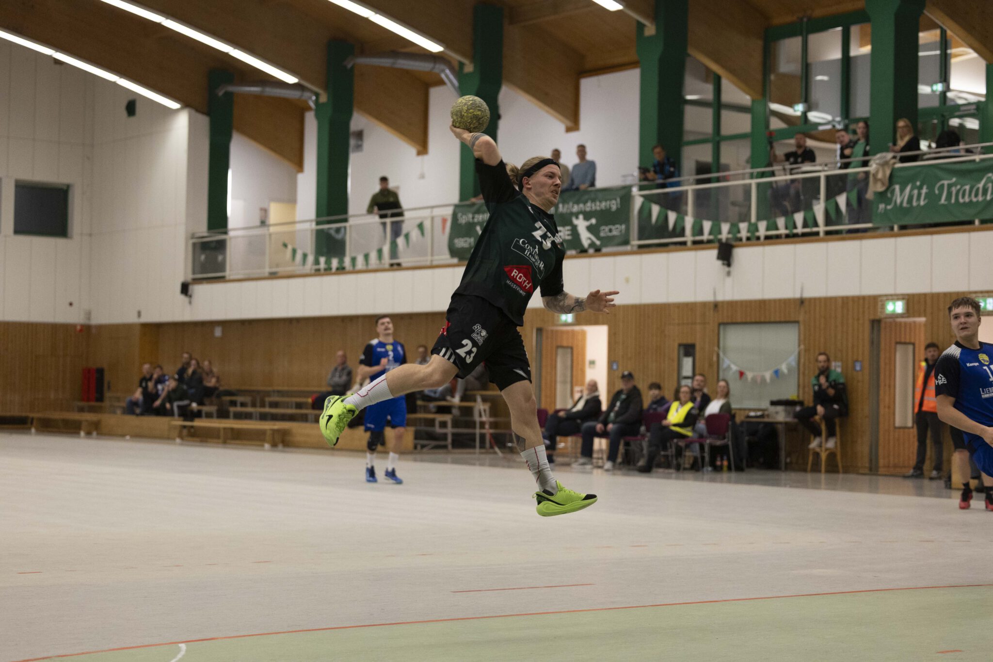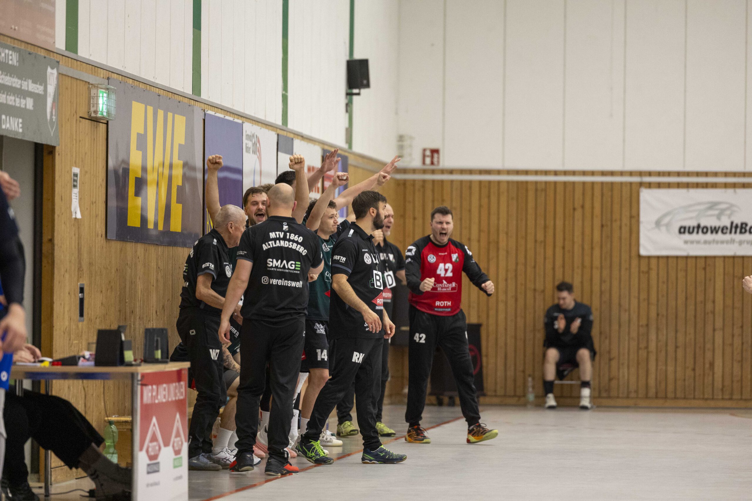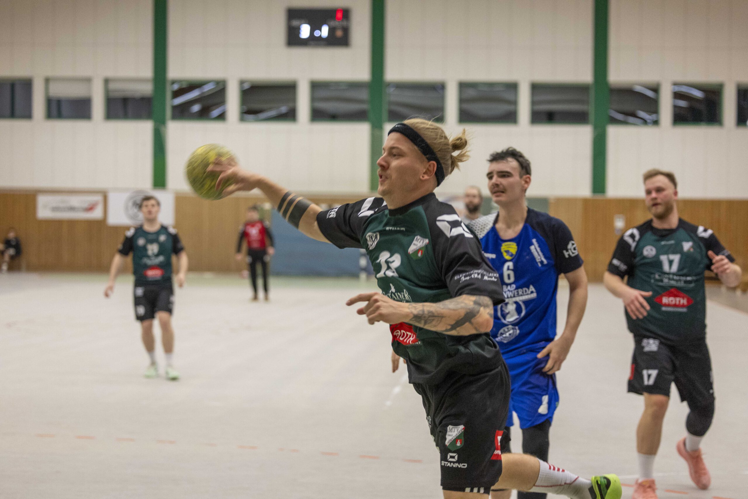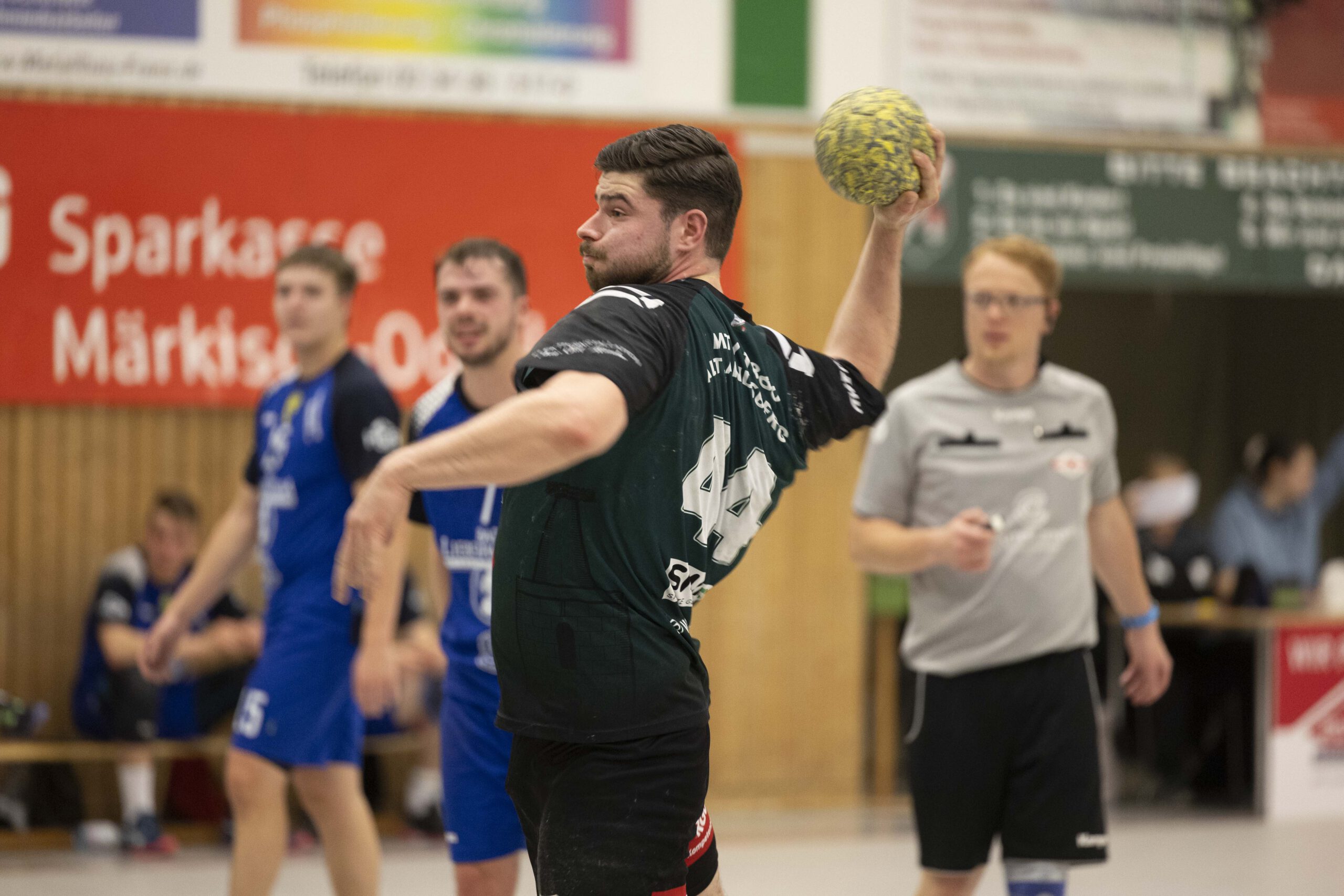 Das Spiel begann zunächst mit jeweils guten Paraden der Torhüter: Vor allem Oliver Böhme von den Gästen konnte sich gleich mehrfach auszeichnen. Das erste Tor der Altlandsberger fiel erst nach zehn Minuten. Dennis Bellmann traf zum 1:4. Es folgte dann eine bessere Phase des Gastgebers, der zwischenzeitlich zum 7:7 ausgleichen konnte. Doch so richtig überzeugen konnte das alles nicht, vor allem weil der geneigte Fan noch das gute Spiel aus der Vorwoche gegen Grün-Weiß Werder in Erinnerung hatte. Vielleicht lag es auch daran, dass der Zuschauerzuspruch diesmal nicht besonders war. Hallensprecher Lasse Fleck musste seine Stimme nicht besonders strapazieren und laut ins Mikrofon sprechen. Zum Seitenwechsel führten die Gäste mit 13:12. Musste man sich um den MTV Sorgen machen? Eigentlich nicht, denn inzwischen wissen alle, dass genügend Potenzial in der Mannschaft steckt.