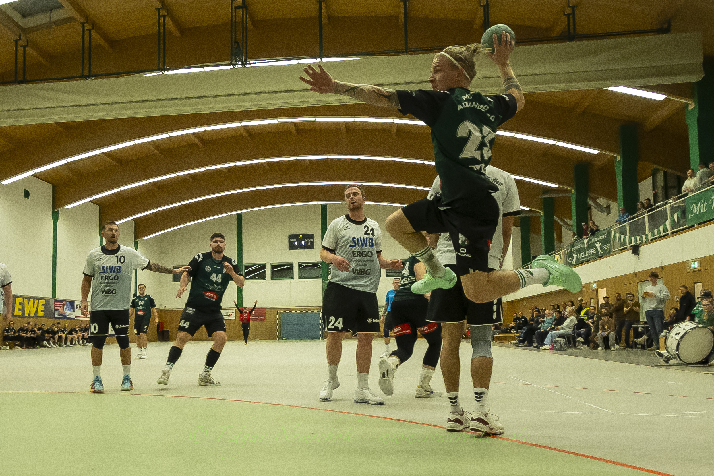 „Es nutzt ja nicht viel, wenn ich in der Kabine rumbrülle, aber ich habe den Männern schon sehr deutlich gesagt, dass wir uns im zweiten Durchgang steigern müssen“, erklärte Roy Kalweit. Seine Ansprache in der Halbzeit hatte genutzt, denn tatsächlich konnte der MTV zulegen. Auch wenn die Kräfte bei den Gästen zusehends nachließen – jetzt wurde endlich wieder kombiniert und genauer aufs gegnerische Tor geworfen. Der MTV kam ins Rollen und nach 40 Minuten war das Spiel auch gedreht. Altlandsberg führte inzwischen mit 20:15 und spielte immer besser. Auch die Körpersprache zeigte nunmehr deutlich, wie das Spiel enden wird. Ein Spieler des Tages war Phillipp Hudewenz der ebenfalls neun Tore warf. „Es freut mich sehr für ihn, dass er so gut in Schwung ist“, lobte ihn auch sein Trainer. „Nach seiner langen Verletzungspause wird er scheinbar in jedem Spiel besser.“ Aber Ro Kalweit nannte auch Nils Fasold, der gut Regie auf der Pallet führte und vom Siebenmeter-Punkt mit sechs von sechs verwandelten Strafwürfen eine hundertprozentige Quote hatte. Ich könnte fast alle nennen, zum Beispiel Marcus Schwiderski, der die Abwehrarbeit toll organisierte oder auch Jan Lebelt, der im Tor wieder sicher stand.“