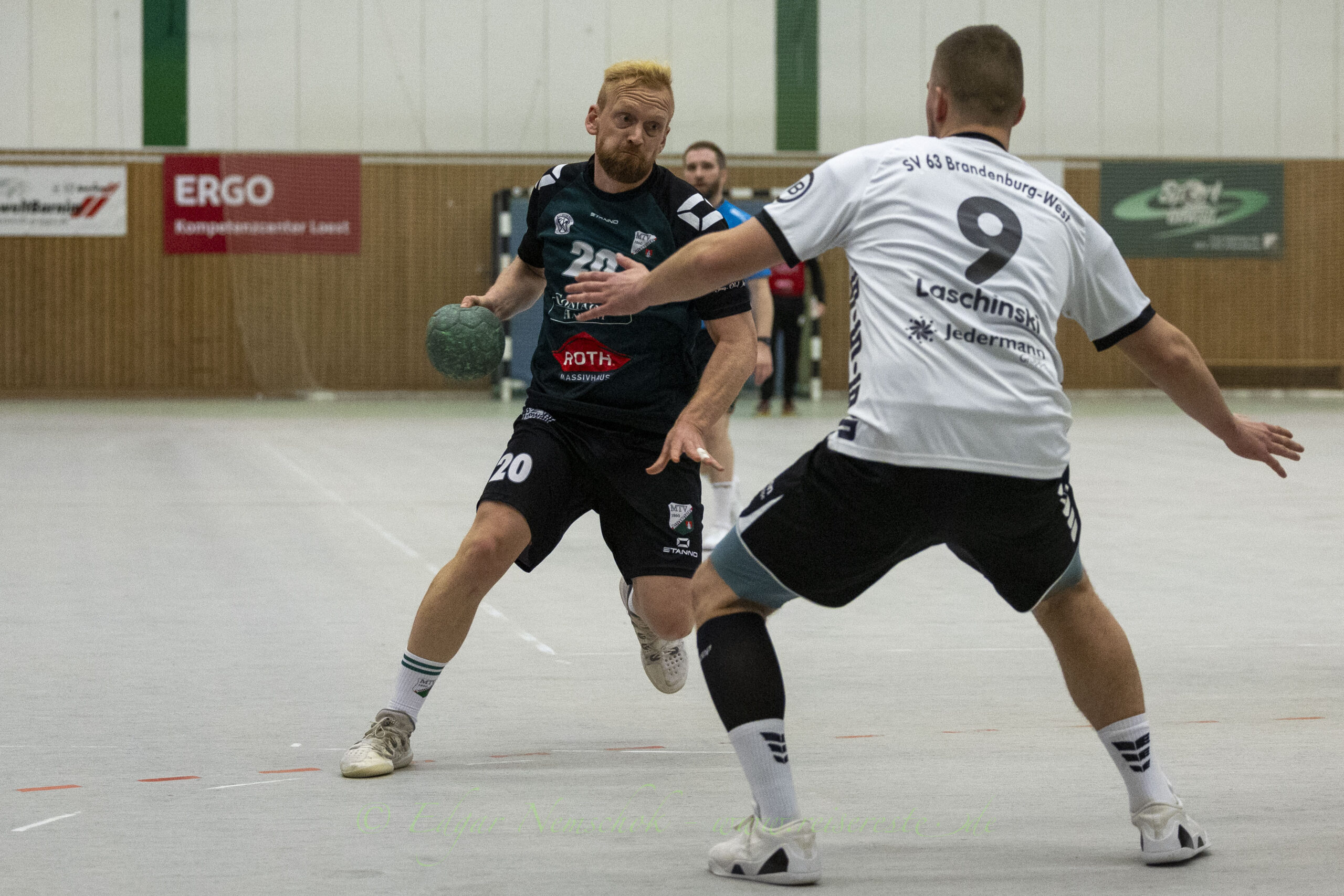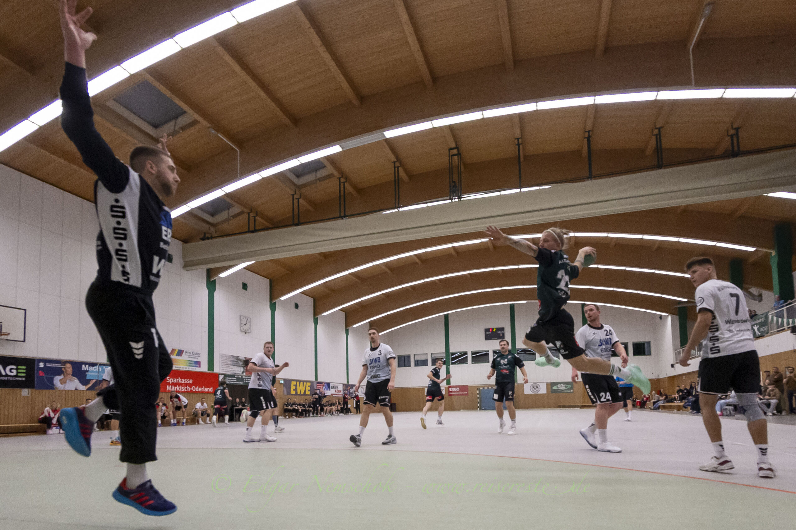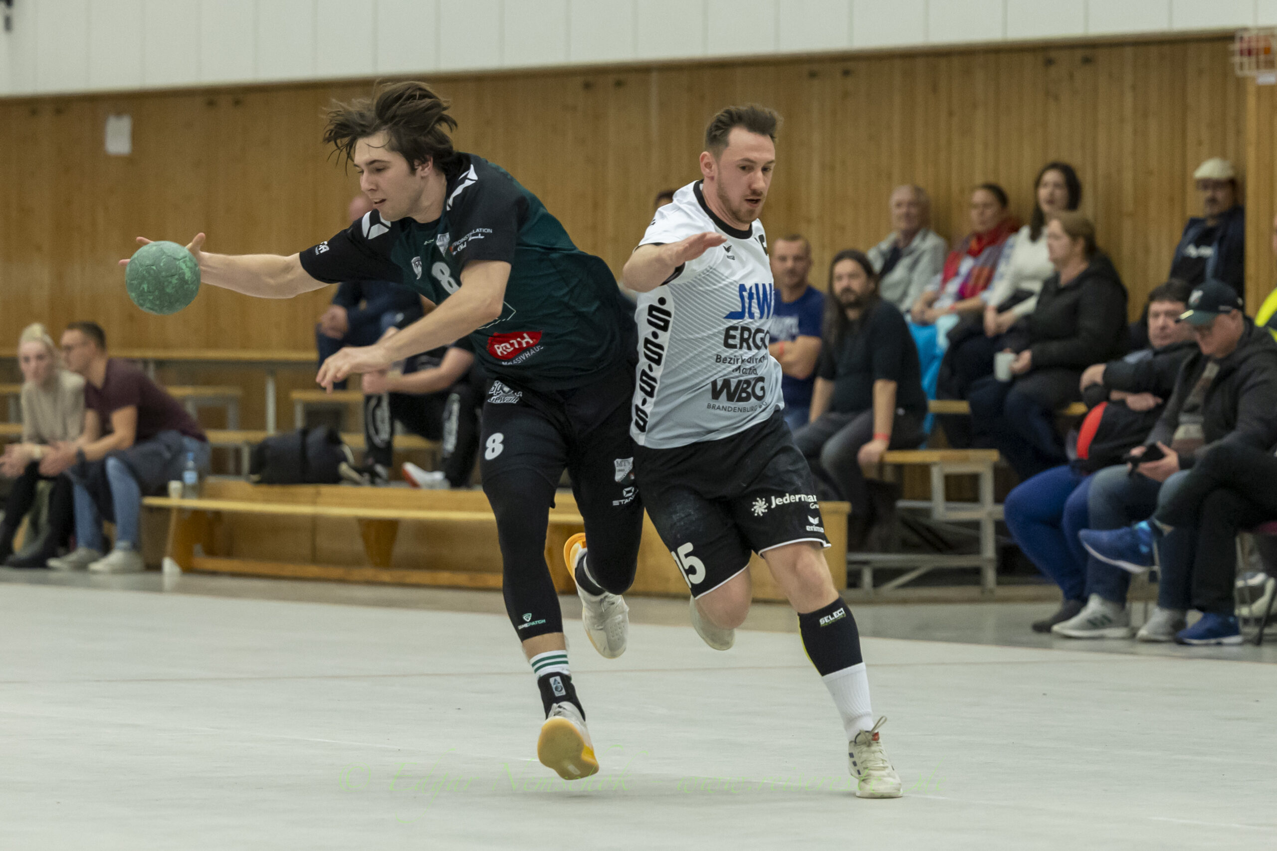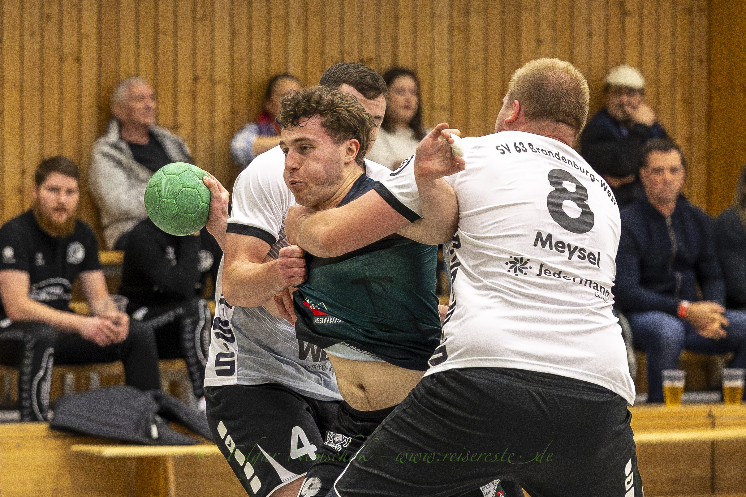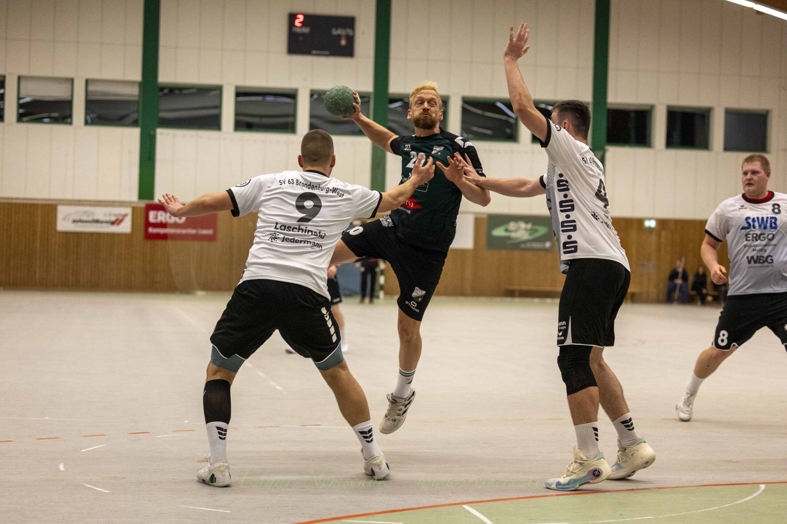 Das Spiel begann mit sehr hohem Tempo – auf beiden Seiten. Die Gäste standen in der Abwehr sehr gut und hatten mit Torhüter Pascal Hindorf auch eine „echte Bank“ in ihren Reihen. Und vor hatte sie ihren Max Schößler, der es in der gesamten Partie auf neune Treffer brachte. Nach dem 1:0 durch Konstantin Gorka übernehmen die Gäste auch die Führung, die sie bis zur Halbzeit nicht mehr abgaben. Die Brandenburger führten nach 18 Minuten sogar mit 11:6.