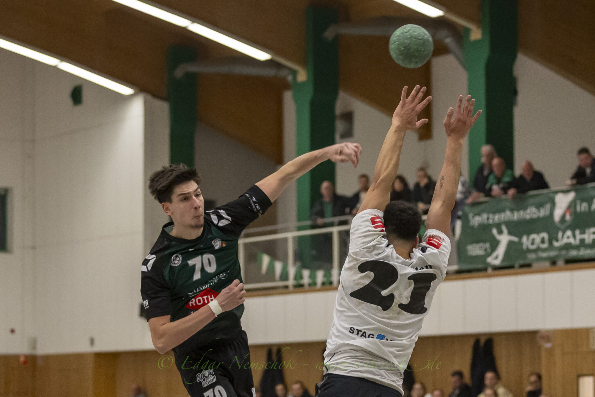 Zur Pause führte der Gastgeber bereits mit 21:9. Was dann aber auch die Trainer zufrieden stellte: Die Mannschaft ließ nicht nach und spielte ihren Tempo-Handball konsequent weiter. Den Auftakt zur zweiten Halbezeit legte Maximilian Sehl mit einem Hammer-Tor aus dem Rückraum. Wenn man dann so einen Sahne-Tag erwischt, klappen eben auch viele andere Dinge. Zum Beispiel das wunderschöne Tor von Dennis Bellmann zum 35:17. Es war ein sogenannter Dreher. Der Ball trudelte am Wildauer Torhüter Jonas Peres ins Tor.