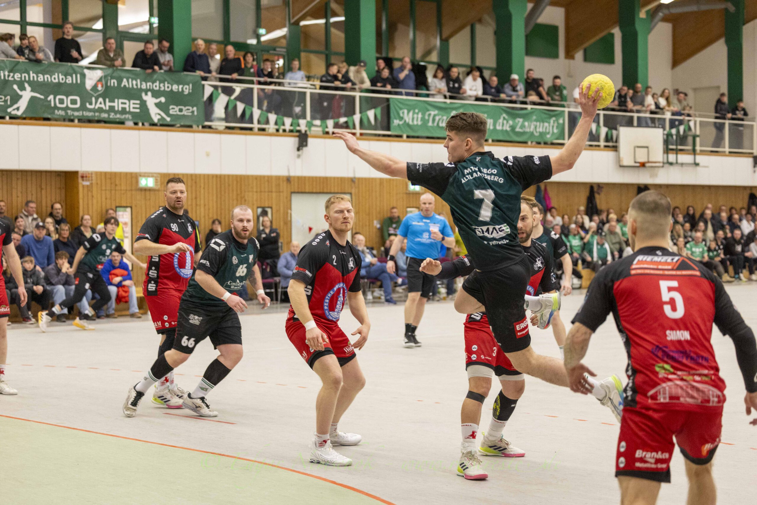 Die Männer vom Gastgeber ließen sich zunächst nicht irritieren und spielten ruhig ihre Angriffe aus. Vor allem Max Winkler bestimmte die Anfangsphase und warf fünf Tore. Doch nach der sicheren Führung konnten sich die Jahn-Handballer etwas befreien und kamen auf 5:8 heran. Erinnerungen an das Hinspiel wurden wach, als der MTV in der Freienwalder-Kurstadthalle nur mit Mühe mit 24:22 gewinnen konnte.