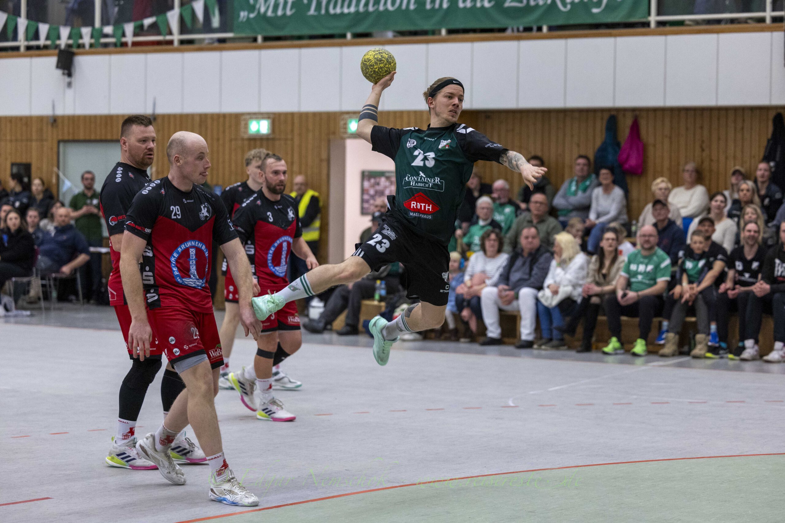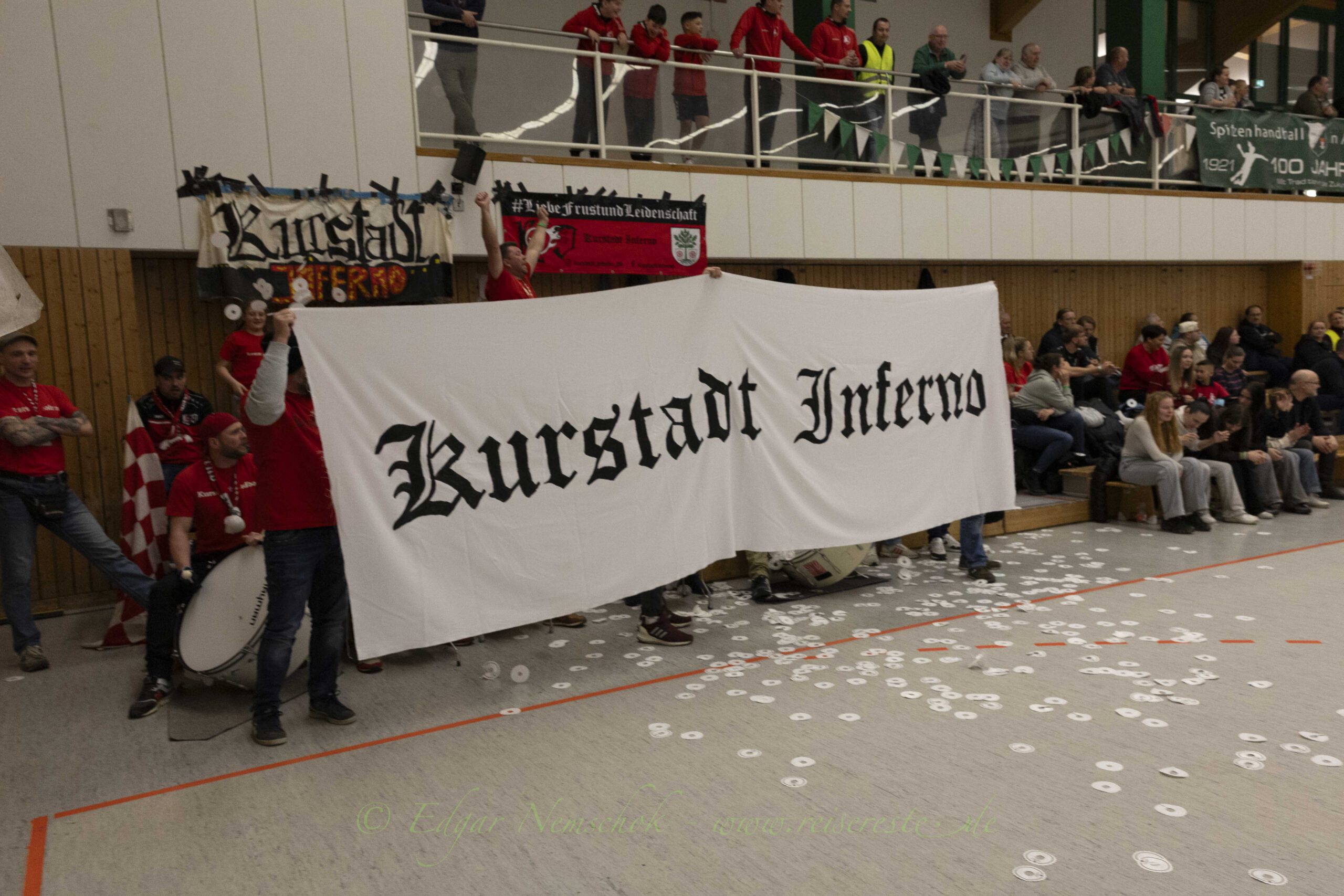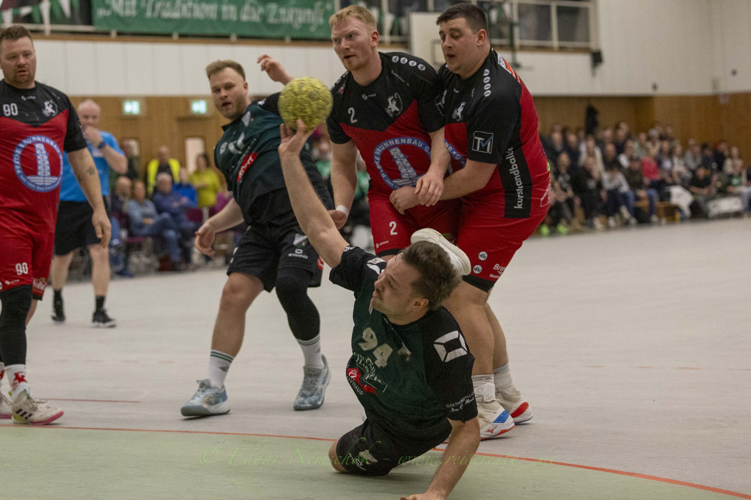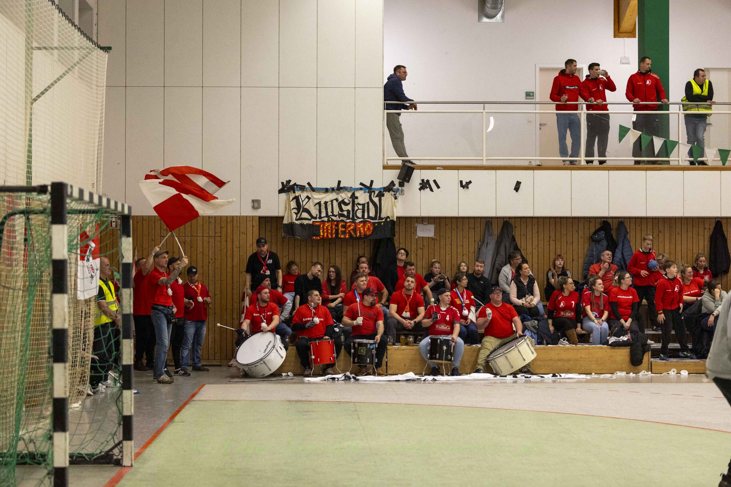 Die Partie war von viel Kampf und Einsatz geprägt und sehr zerfahren,. Richtig schöne Spielzüge gab es selten. Immer wieder bestimmten Einzelaktionen die Partie in der Altlandsberger Erlengrundhalle. Trotzdem war das Tempo hoch und vor allem: Es war sehr stimmungsvoll. Beide Fanlager sorgten für echte Derby-Stimmung, auch wenn es die Handballfreunde aus der Kurstadt teilweise etwas übertrieben. Mehrfach musste die Partie unterbrochen werden, weil aus dem „Kurstadt-Inferno“ – Fanblock Gegenstände auf das Spielfeld geworfen wurden.