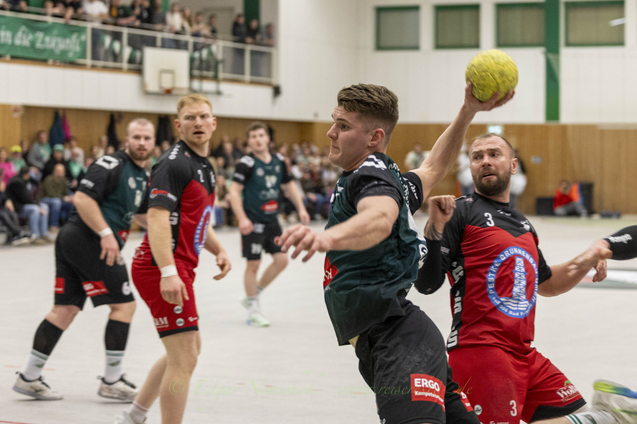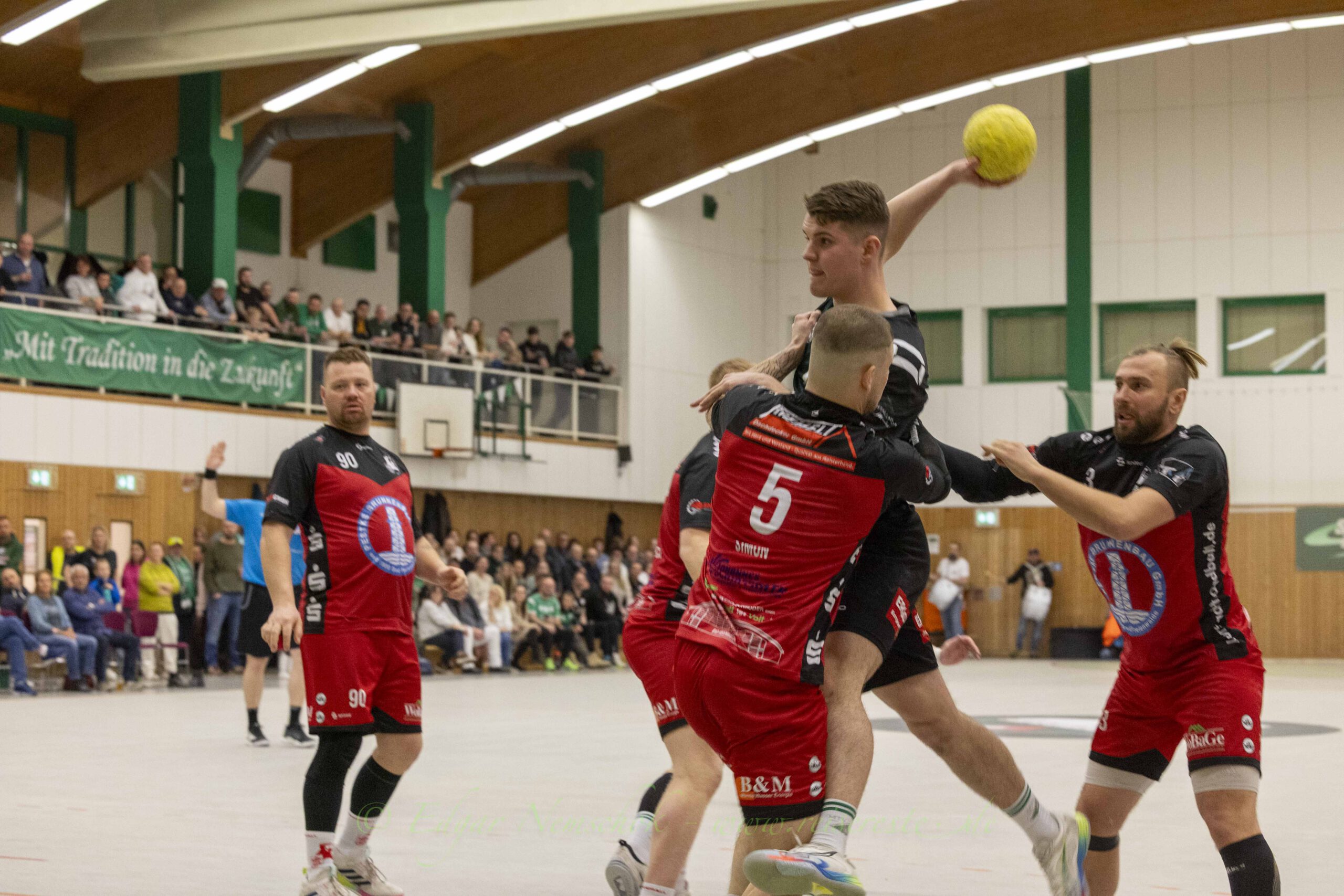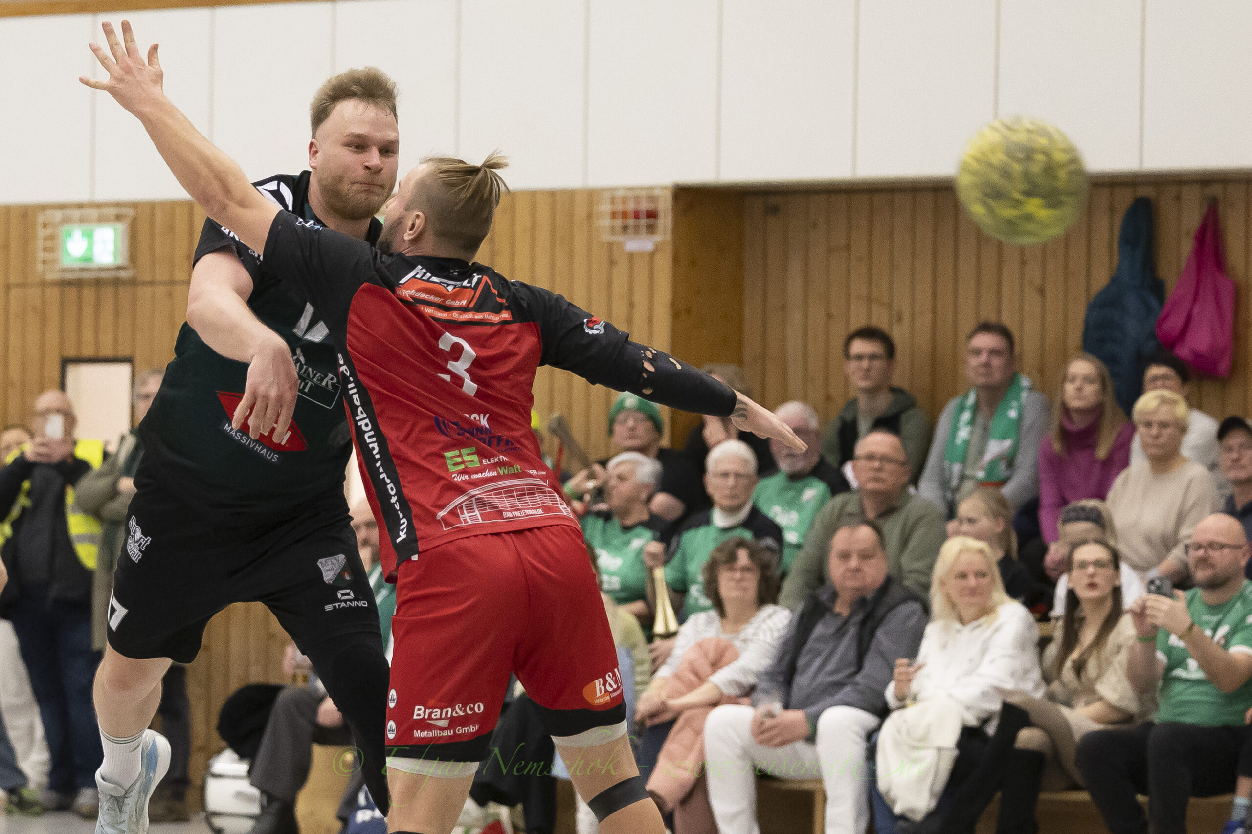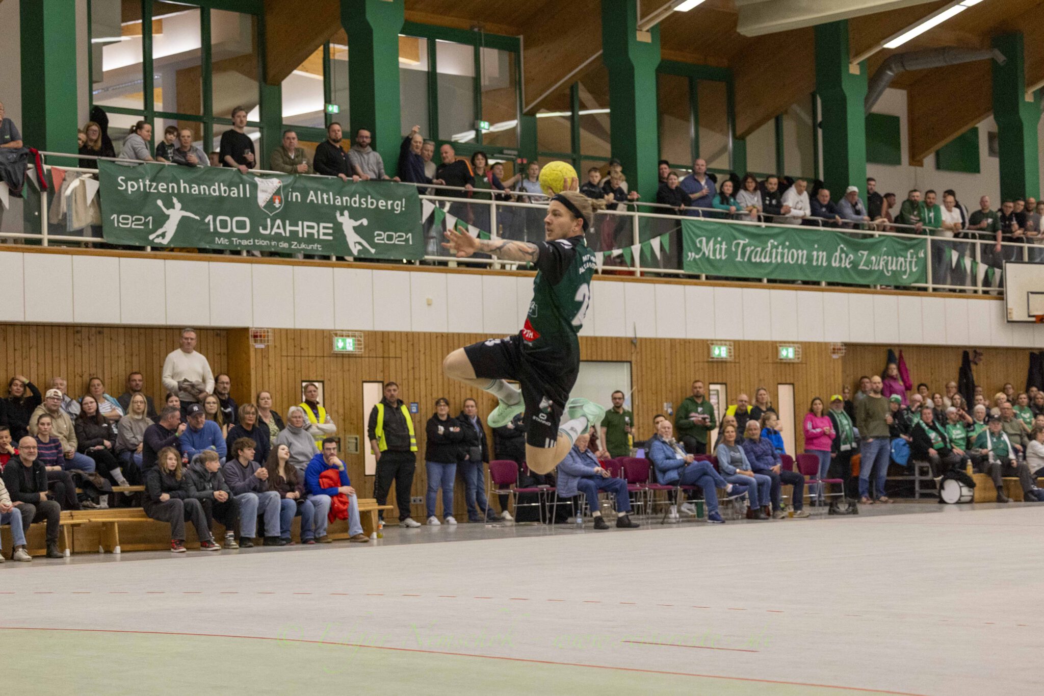 Die Partie war von viel Kampf und Einsatz geprägt und sehr zerfahren,. Richtig schöne Spielzüge gab es selten. Immer wieder bestimmten Einzelaktionen die Partie in der Altlandsberger Erlengrundhalle. Trotzdem war das Tempo hoch und vor allem: Es war sehr stimmungsvoll. Beide Fanlager sorgten für echte Derby-Stimmung, auch wenn es die Handballfreunde aus der Kurstadt teilweise etwas übertrieben. Mehrfach musste die Partie unterbrochen werden, weil aus dem „Kurstadt-Inferno“ – Fanblock Gegenstände auf das Spielfeld geworfen wurden.