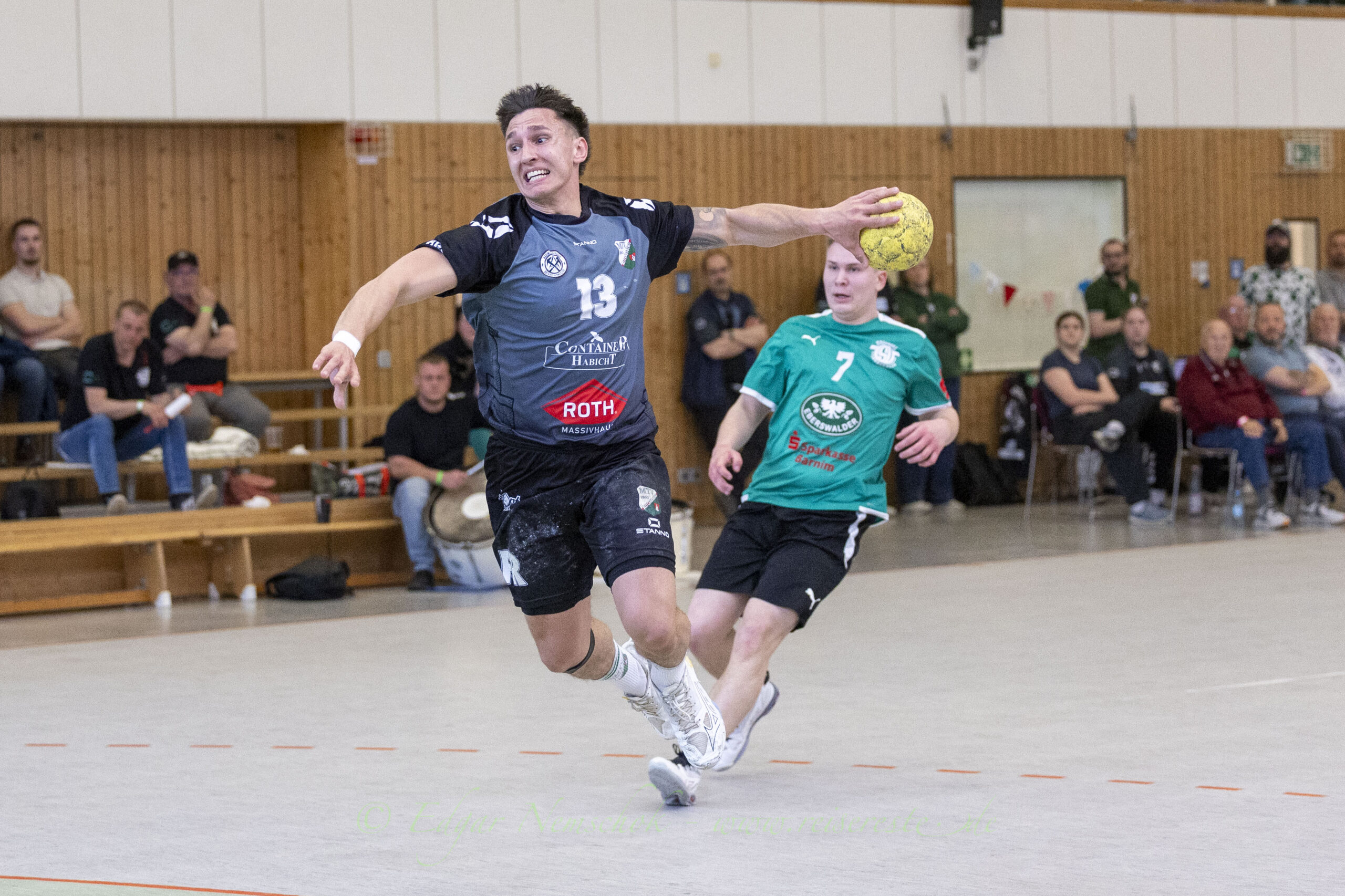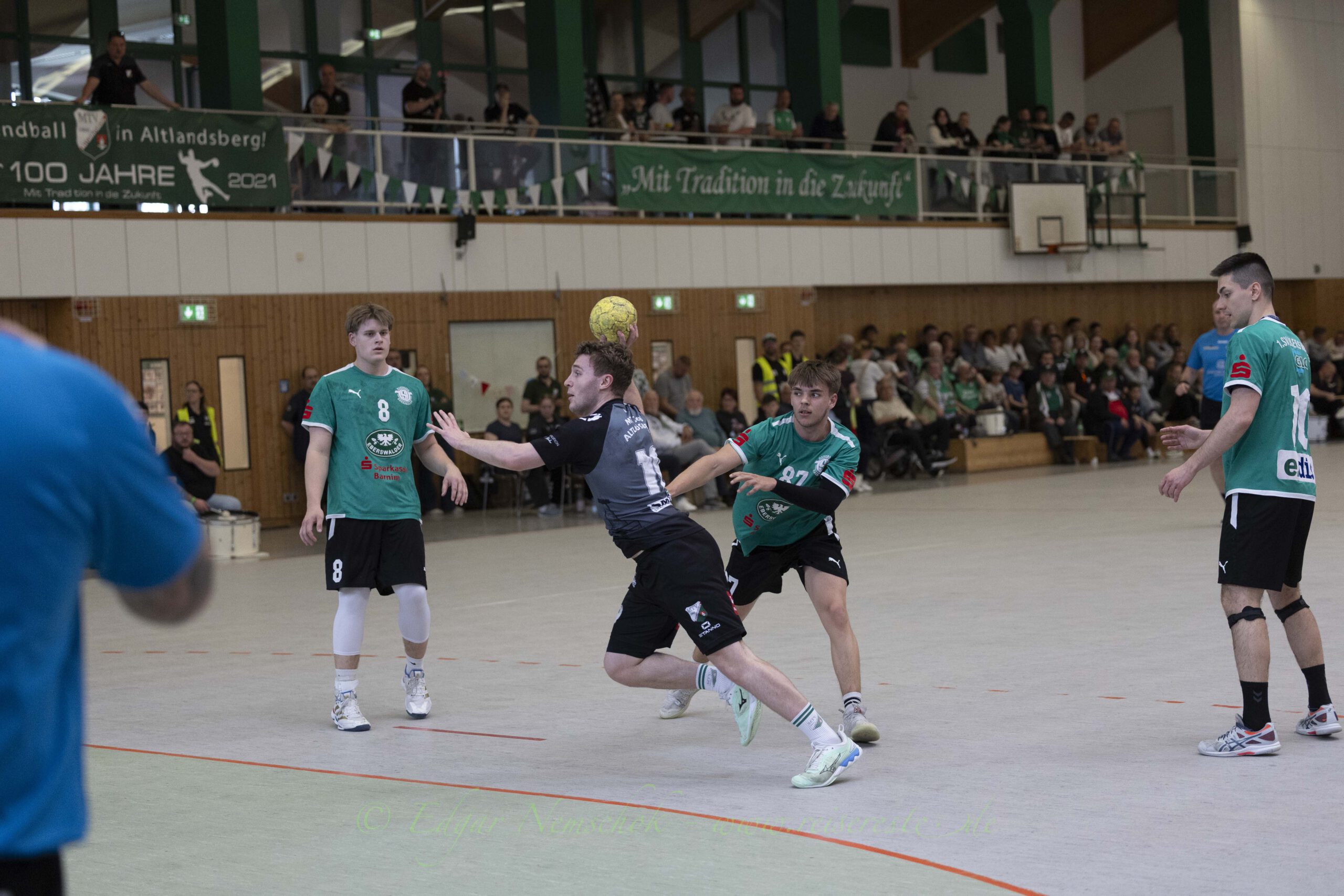 Dennoch war eben nicht alles perfekt an diesem Nachmittag. Nach derr ersten Halbzeit machte sich ein wenig Unmut im Betreuerteam des MTV breit. Der MTV führte nach 30 Minuten „nur“ mit 17:15. Nicht, weil die Eberswalder bärenstark waren, vielmehr weil der MTV Chancen – die für mehrere Spiele gereicht hätte n– teilweise fahrlässig ausgelassen hatte. Die Eberswalder ihrerseits versuchten mitzuhalten und waren mit ihrer Offensive (Leon Thomas (8), Rafal Lasko (6) und Moritz Assmann (6)) durchaus unbequem für den MTV.